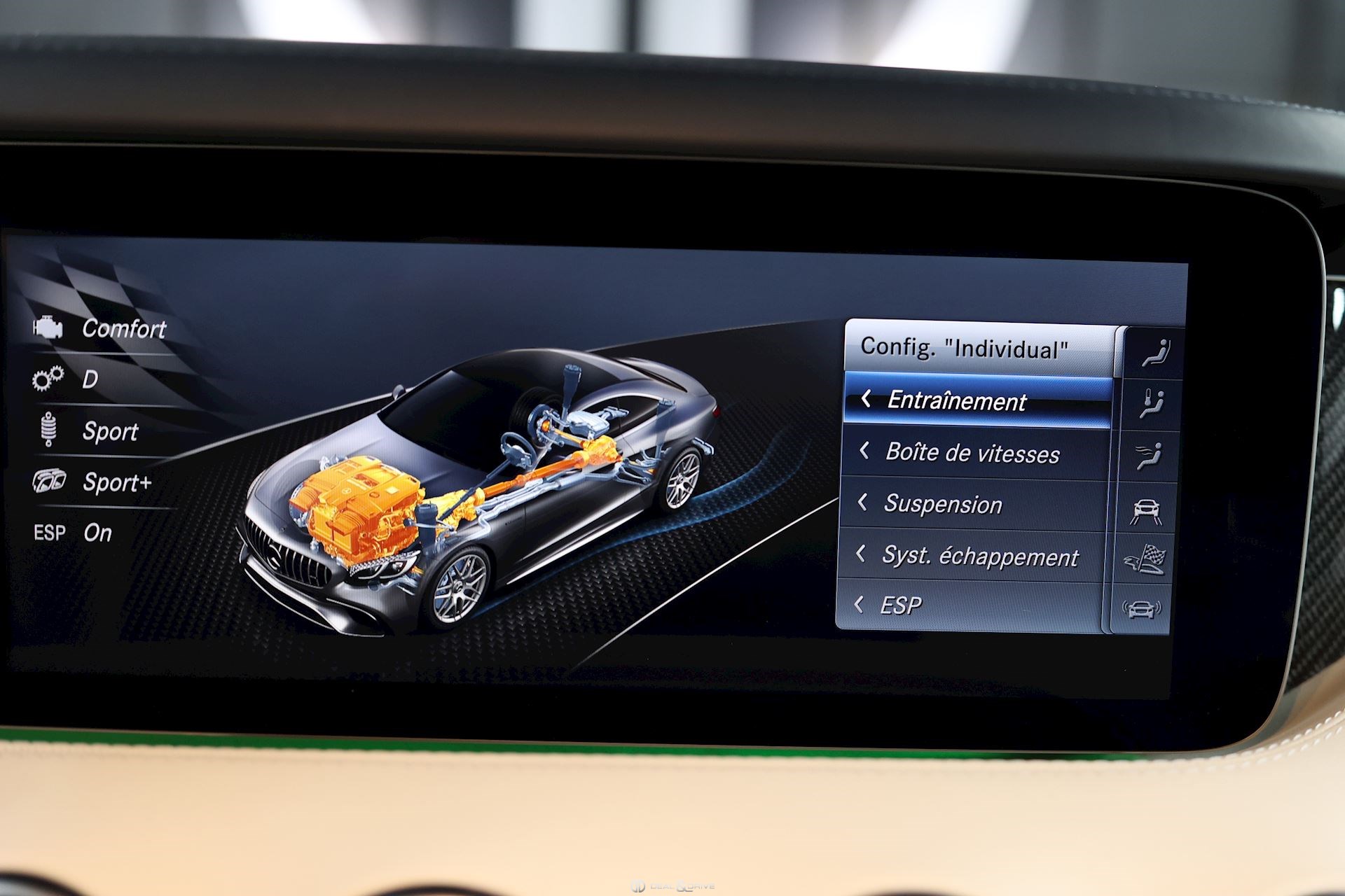 MOTEUR, TRANSMISSION ET CHÂSSIS Sélecteur des modes de conduite Freins céramiques AMG Direction paramétrique Suspension Sport Système d’échappement Sport Suspension pneumatique Airmatic DC / Air Body Control