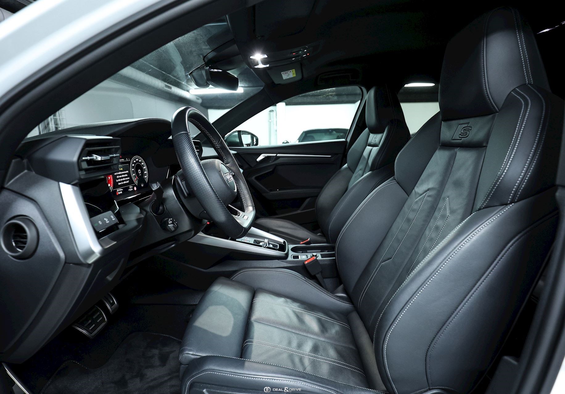 CONFORT, SYSTÈME D'ASSISTANCE Aides au stationnement avant et arrière Caméra de recul Rétroviseur intérieur avec fonction anti-éblouissement Aide au démarrage en côte Système de reconnaissance des panneaux de signalisation Régulateur de vitesse adaptatif ACC Système d’alarme antivol Système de contrôle de la pression des pneus Détecteurs de pluie et de luminosité Aide à l’évitement de collision Assistant de freinage d’urgence Avertissement de franchissement involontaire de ligne INTÉRIEUR Dossier arrière fractionné 40:20:40 Plafonnier en Noir Sièges avant Sport Sièges avant chauffants Volant Sport en cuir, multifonctions Accoudoir central avant avec rangement Climatisation automatique Confort 2 zones Inserts en finition Aluminium Spectre Seuils de porte en Aluminium avec monogramme, éclairé Tapis de sol MULTIMÉDIA Système audio BANG & OLUFSEN Audi Connect Plus Interface Bluetooth Multi-Media-Interface MMI basic Plus / MMI Radio Plus Radio numérique DAB Système de commande vocale Ports USB Sous réserve d’erreurs