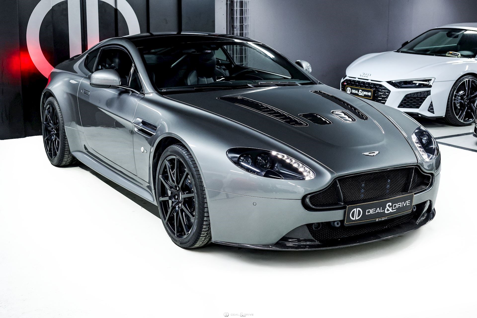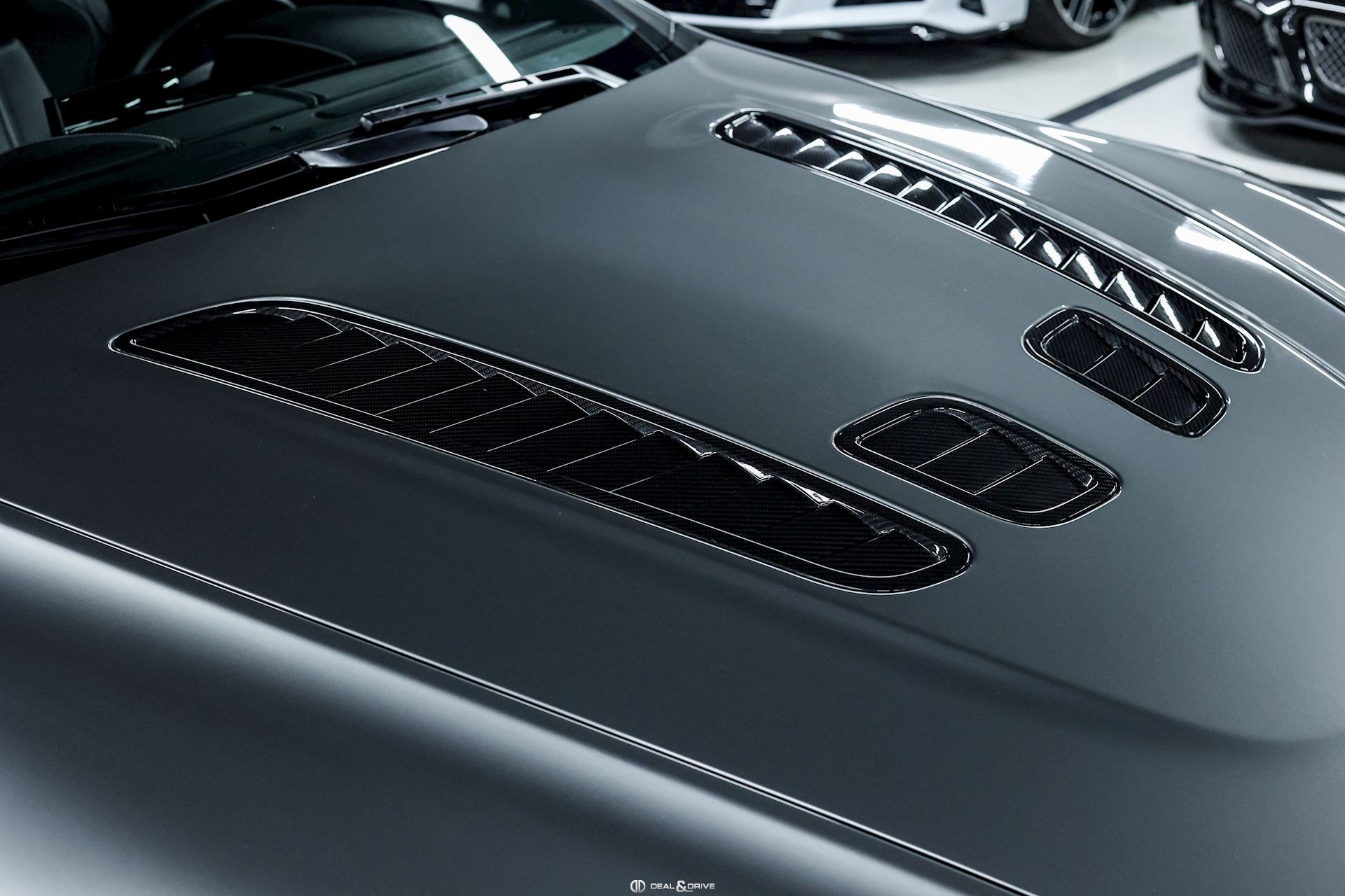 EXTÉRIEUR Contour de calandre en Carbone Diffuseur arrière en Carbone Prises d’air sur le capot en Carbone Lame avant en Carbone Sorties d’échappement en Noir texturé Inserts extérieurs en Jet Black Badge V12 sur les ailes avant Toit en Noir Jantes alliage léger 19’’ en Noir Satin Étriers de frein en Gris Encadrement des vitres latérales en Noir Rétroviseurs extérieurs électriques Rétroviseurs extérieurs rabattables électriquement Rétroviseurs avec indexage en marche arrière LUMIÈRE ET VISIBILITÉ Feux avant avec fonds en Noir