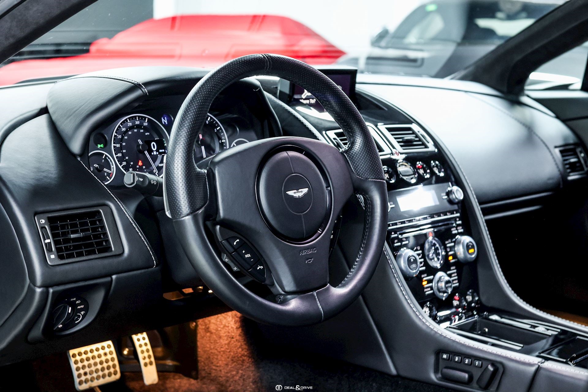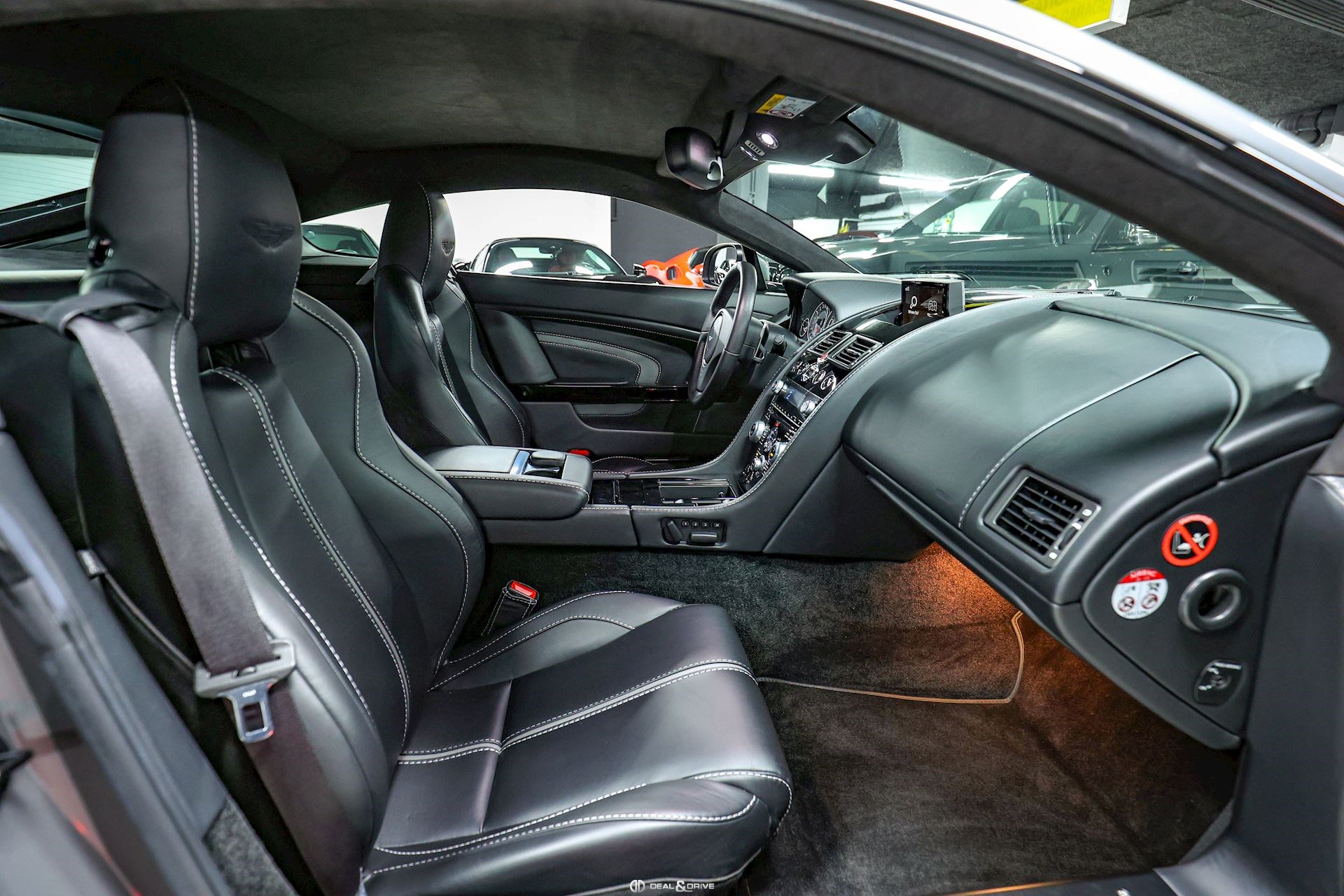 INTÉRIEUR Sièges Sport Sièges électriques Sièges avec fonction mémoire Sièges chauffants Appuie-lombaires électriques Bande centrale des sièges en cuir Chainmail Grey – Q Exclusive Surpiqûres en couleur Silver Plafonnier en Alcantara en couleur Obsidian Black Tapis de sol en couleur Obsidian Black avec surpiqûres en couleur Obsidian Black Emblème Aston Martin brodé sur les appuie-têtes en couleur Obsidian Black Volant en cuir, multifonctions en couleur Obsidian Black Inserts en Piano Black Ceintures de sécurité en Noir Climatisation automatique
