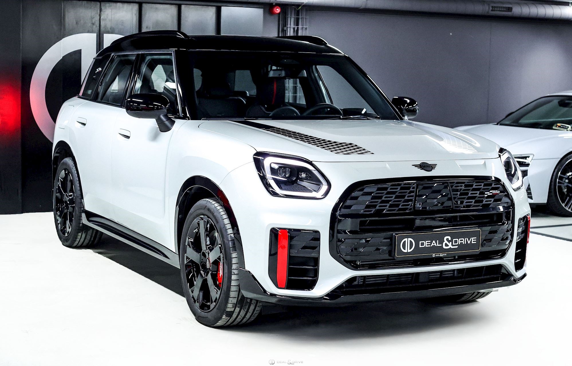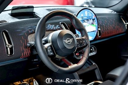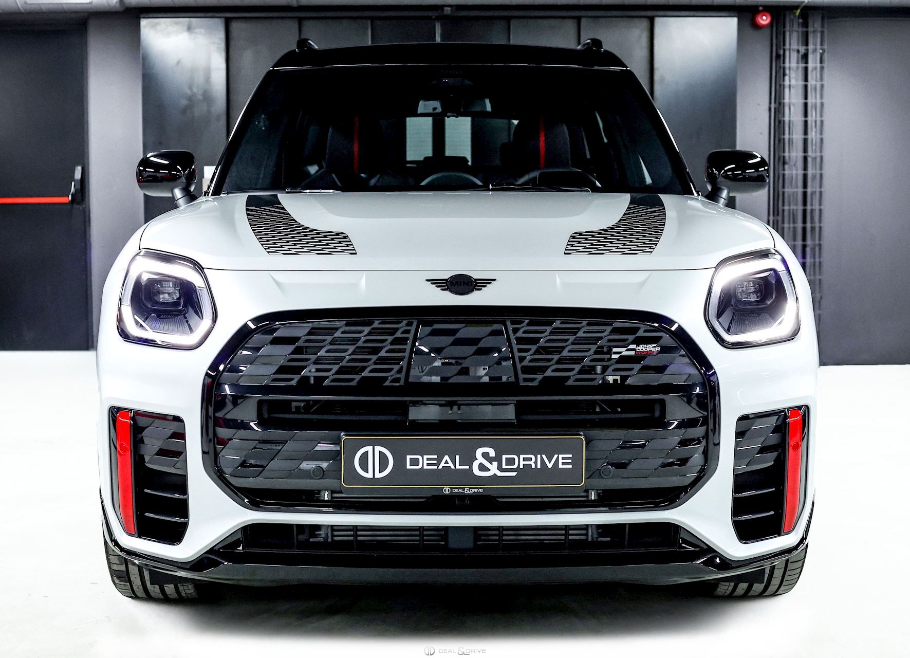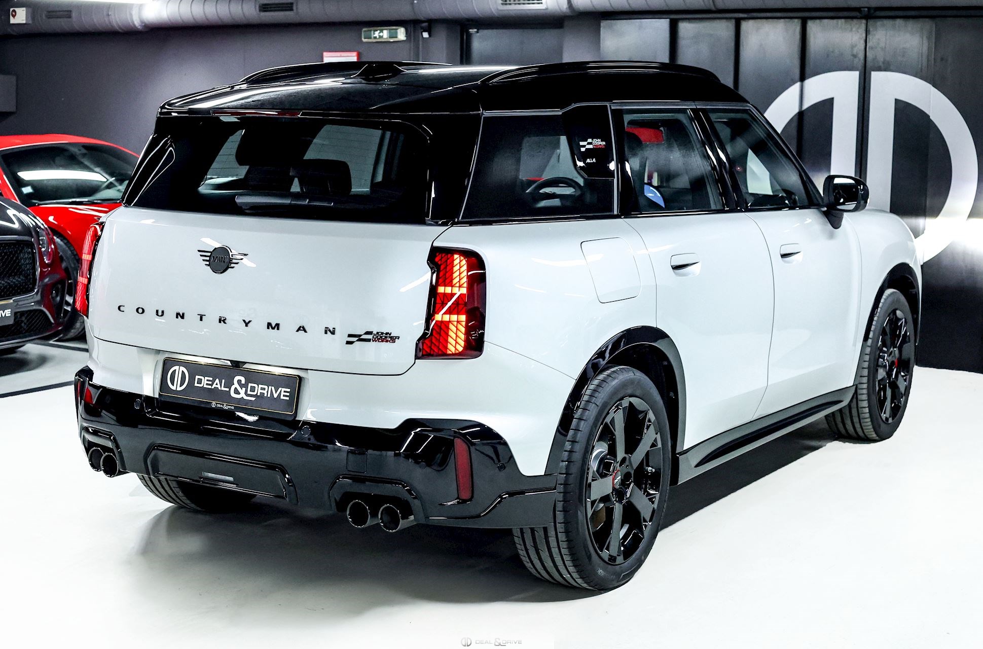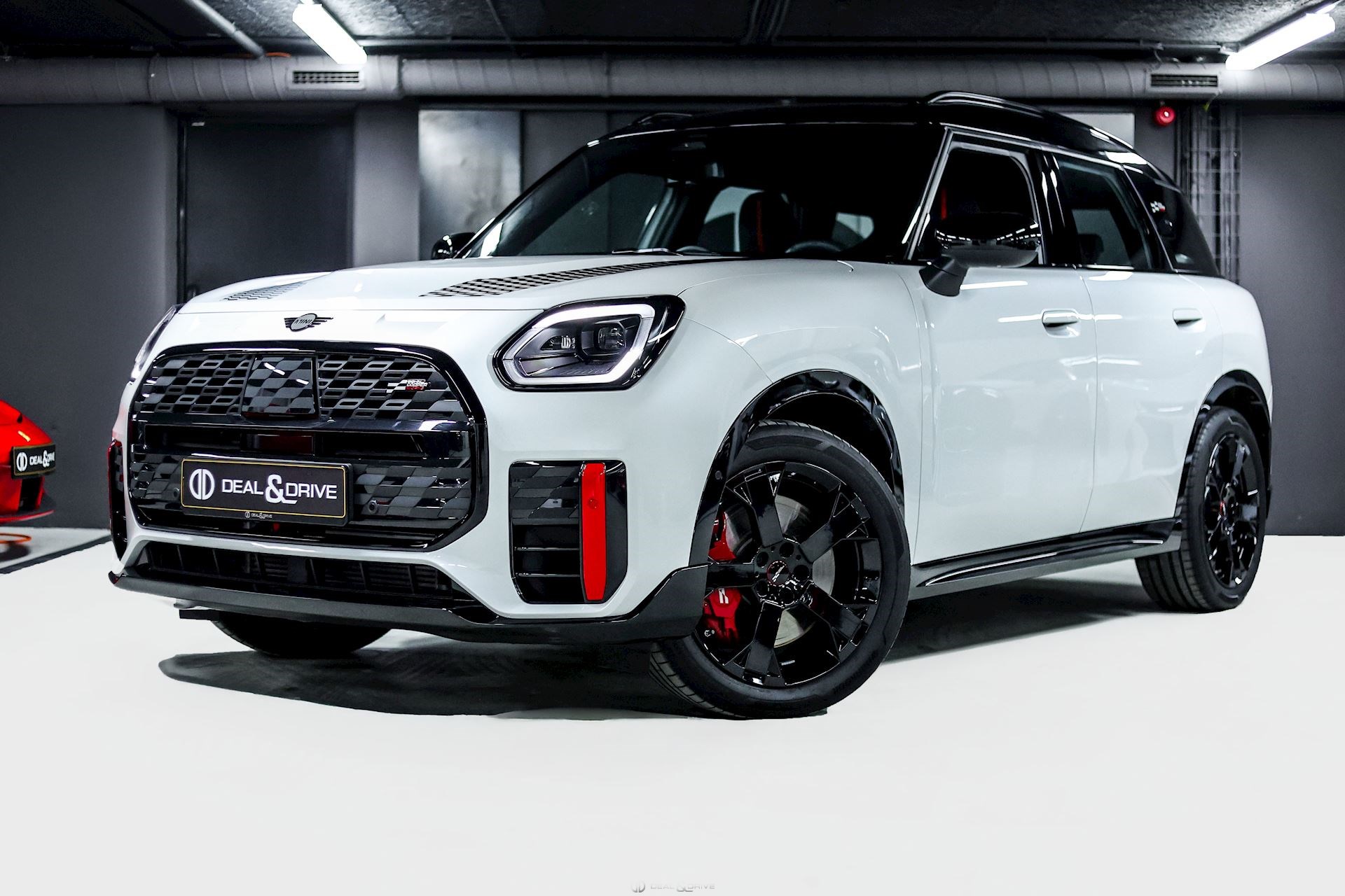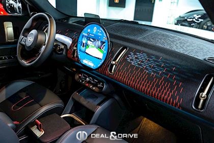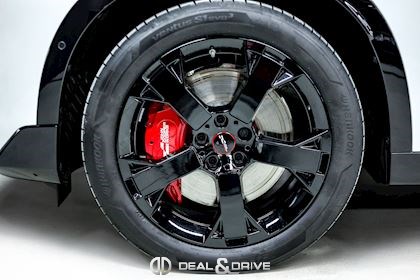 EXTÉRIEUR Jantes alliage léger 19’’ JCW Runway Spoke en Noir Freins sport avec étriers de frein en Rouge Système d'échappement JCW à 4 sorties en noir brillant Bandes décoratives sur le capot en Noir Barres de toit en Noir Hayon électrique Logo Mini en Noir Coques des rétroviseurs extérieurs en Noir Toit Noir Rétroviseurs extérieurs électriques Rétroviseurs extérieurs rabattables électriquement Rétroviseur extérieurs avec fonction anti-éblouissement