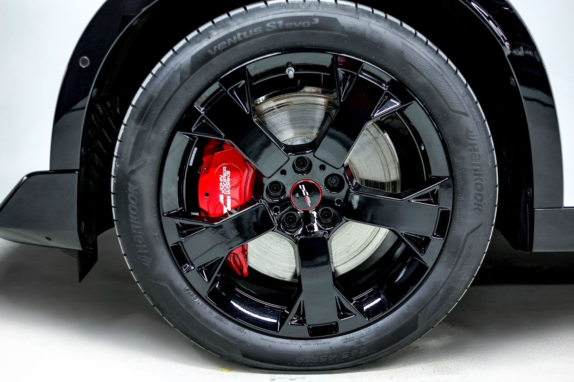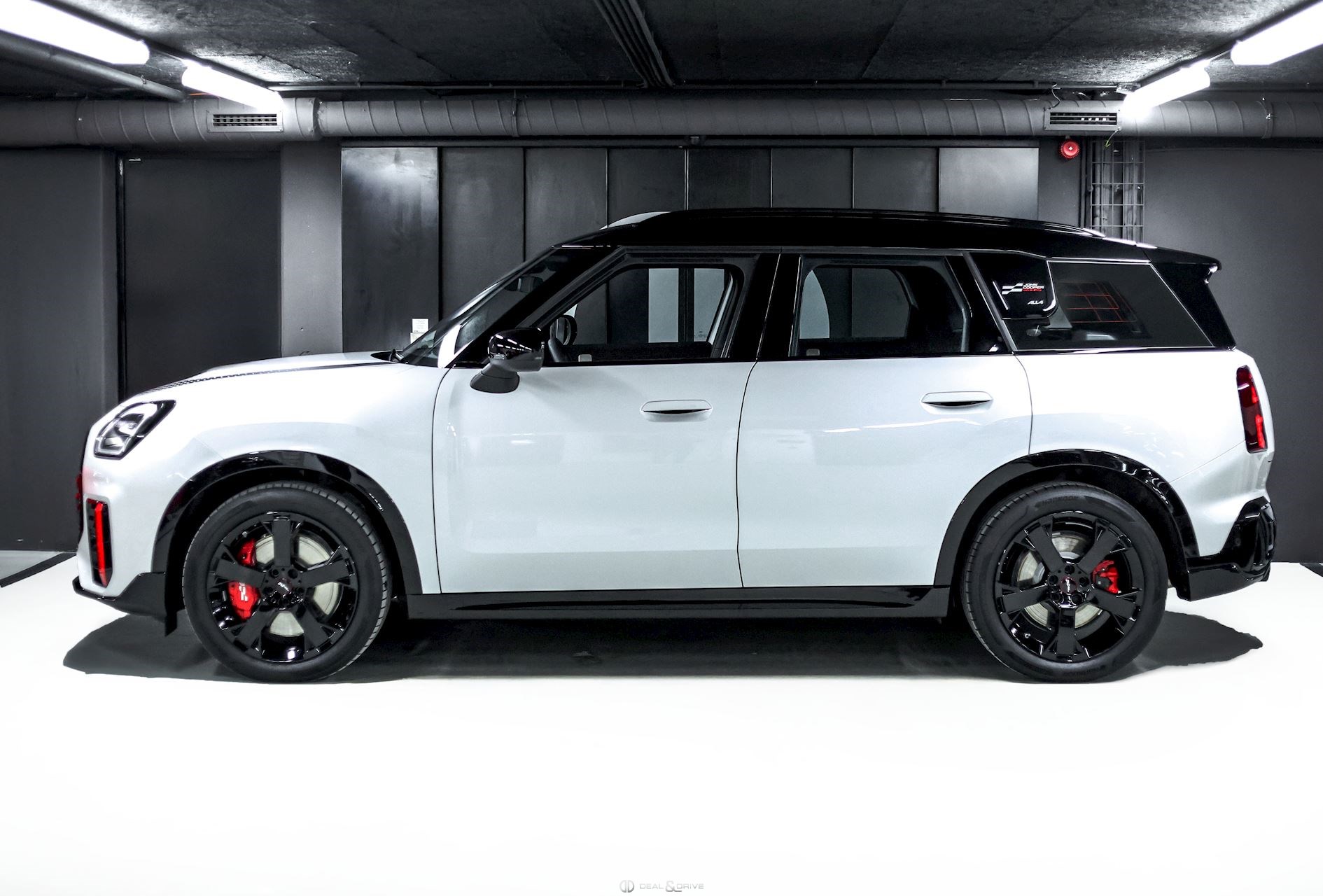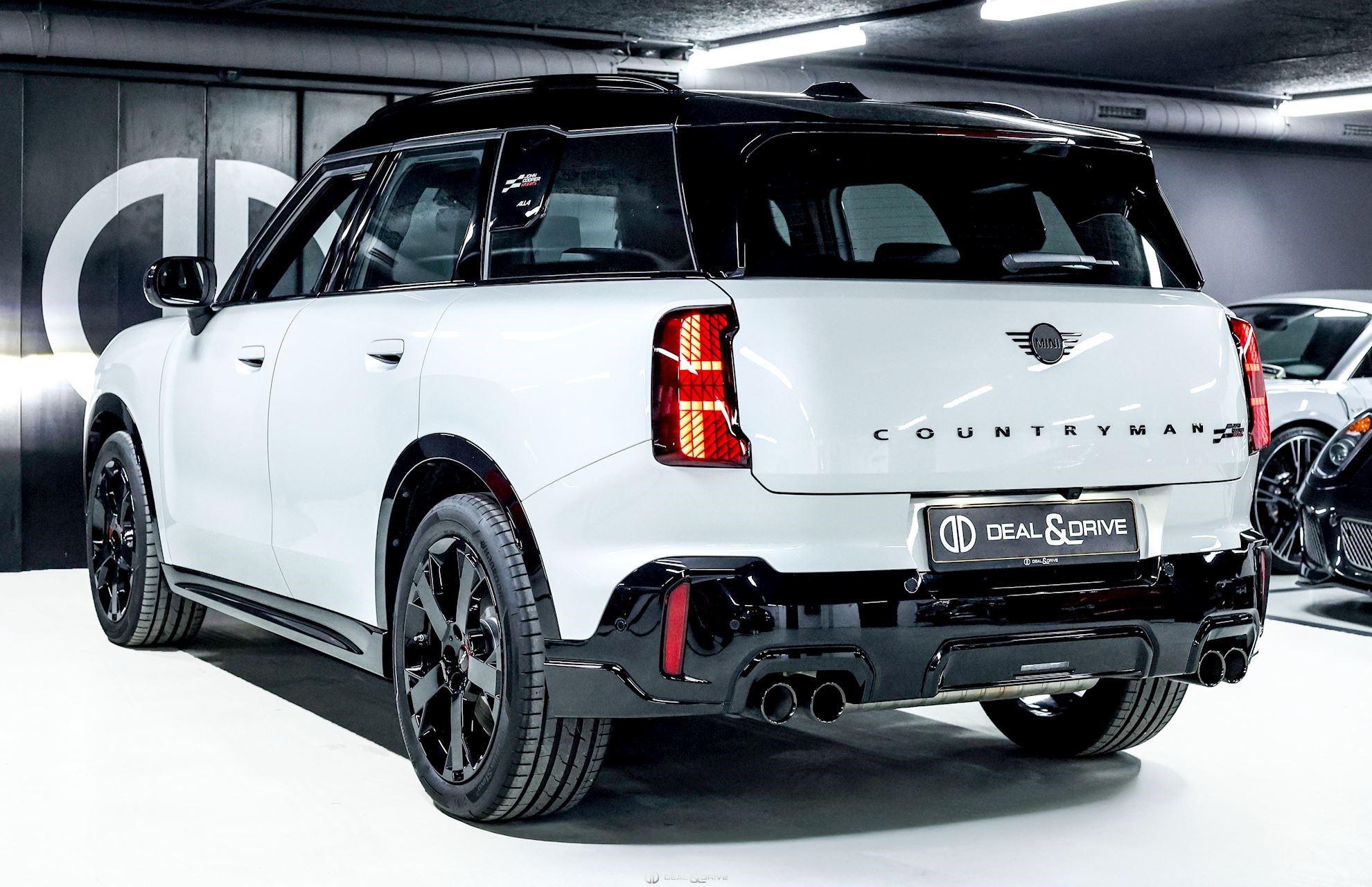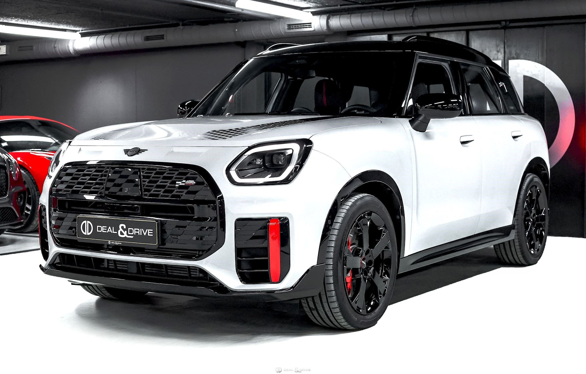 EXTÉRIEUR Jantes alliage léger 19’’ JCW Runway Spoke en Noir Freins sport avec étriers de frein en Rouge Système d'échappement JCW à 4 sorties en noir brillant Bandes décoratives sur le capot en Noir Barres de toit en Noir Hayon électrique Logo Mini en Noir Coques des rétroviseurs extérieurs en Noir Toit Noir Rétroviseurs extérieurs électriques Rétroviseurs extérieurs rabattables électriquement Rétroviseur extérieurs avec fonction anti-éblouissement