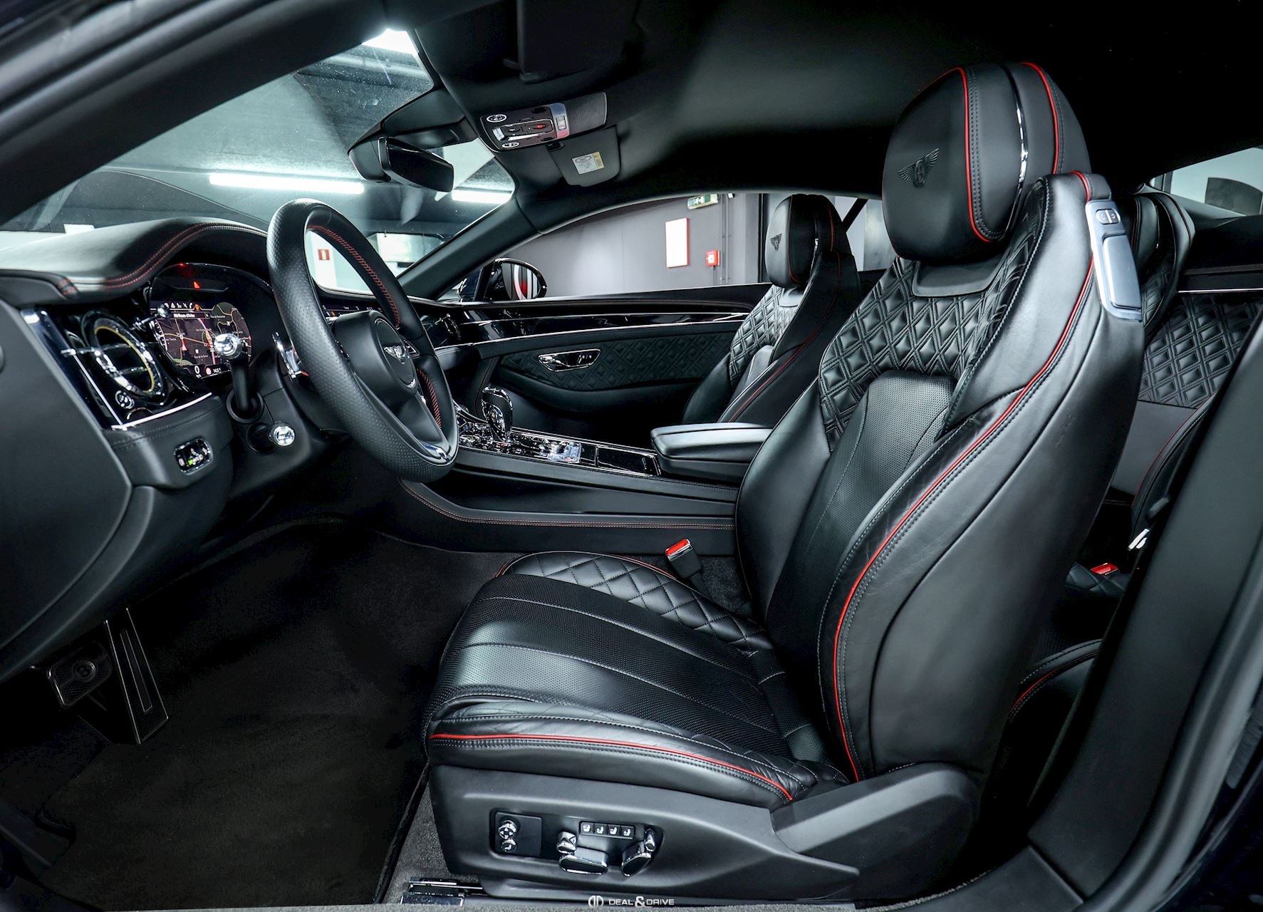 INTÉRIEUR Inserts en Piano Black Inserts Diamond Knurling Volant en cuir, 3 branches, multifonctions Volant chauffant Volant réglable électriquement Sièges en cuir Diamanté Sièges avant électriques Sièges avant avec fonction mémoire Sièges avant chauffants Sièges avant ventilés Sièges avant avec fonction massage Appuie-lombaires Ceintures de sécurité en couleur BELUGA Tapis de sol à poils longs en couleur BELUGA Emblème Bentley en couleur BELUGA Surpiqûres et joints en couleur Hotspur Pédalier Sport Inserts de porte et de custode en cuir matelassé Diamanté Boucles de ceintures de sécurité en cuir Levier de vitesse en cuir Ionisateur d’air intérieur Plafonnier Noir