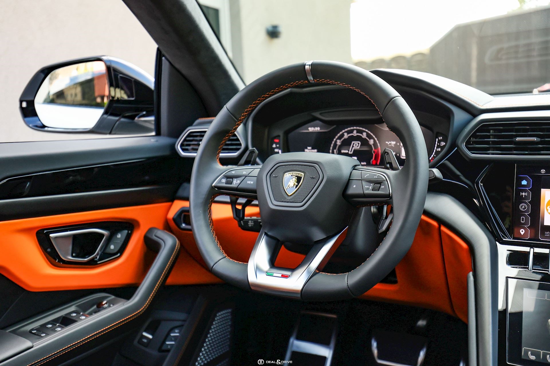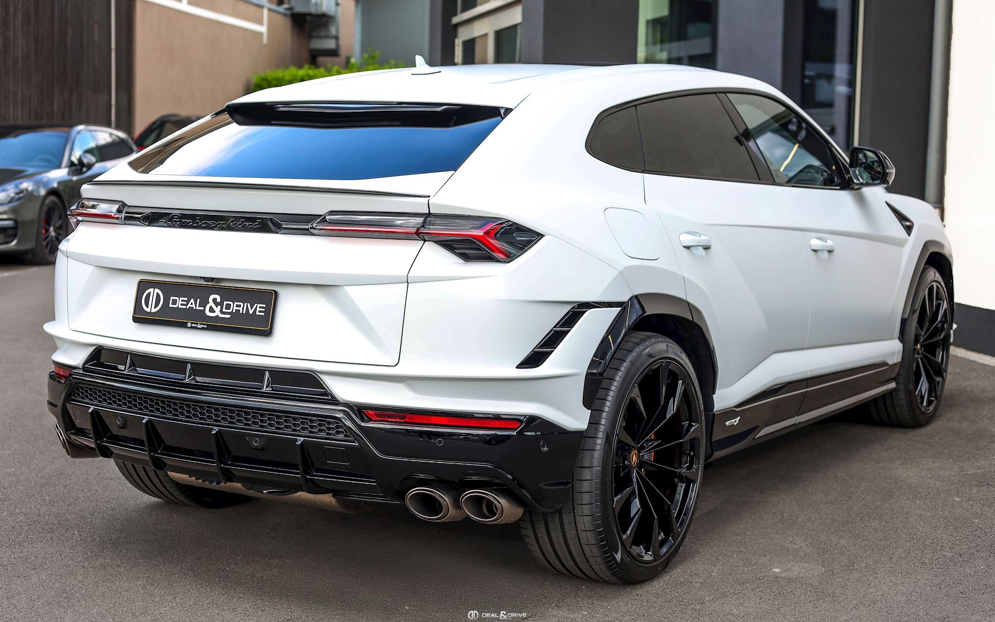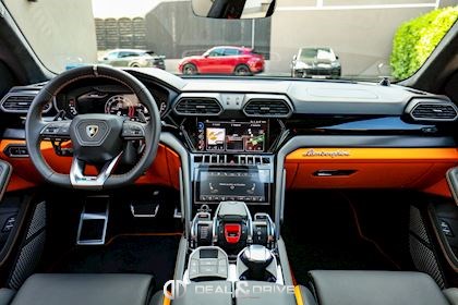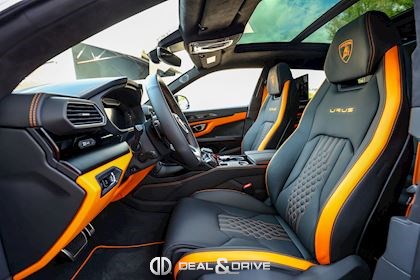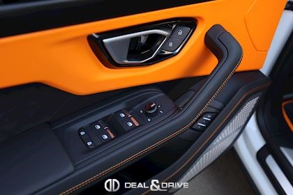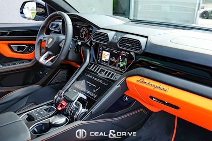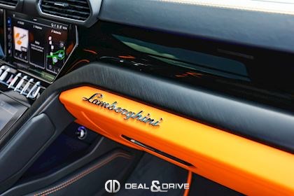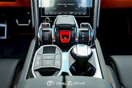EXTÉRIEUR FJ6 Ouïes d’aérations sur le capot en Noir brillant 1D3 Attelage rétractable électriquement PC2 Étriers de frein en Orange 3FU Toit ouvrant panoramique 4KF Vitrage arrière surteinté, acoustique, avec isolation thermique 0PI Logo arrière Lamborghini en Noir brillant 5J6 Spoiler arrière en Noir brillant P2J Jantes 23’’ Taigete en Noir brillant 9PF Balais d’essuie-glaces avec buses intégrées