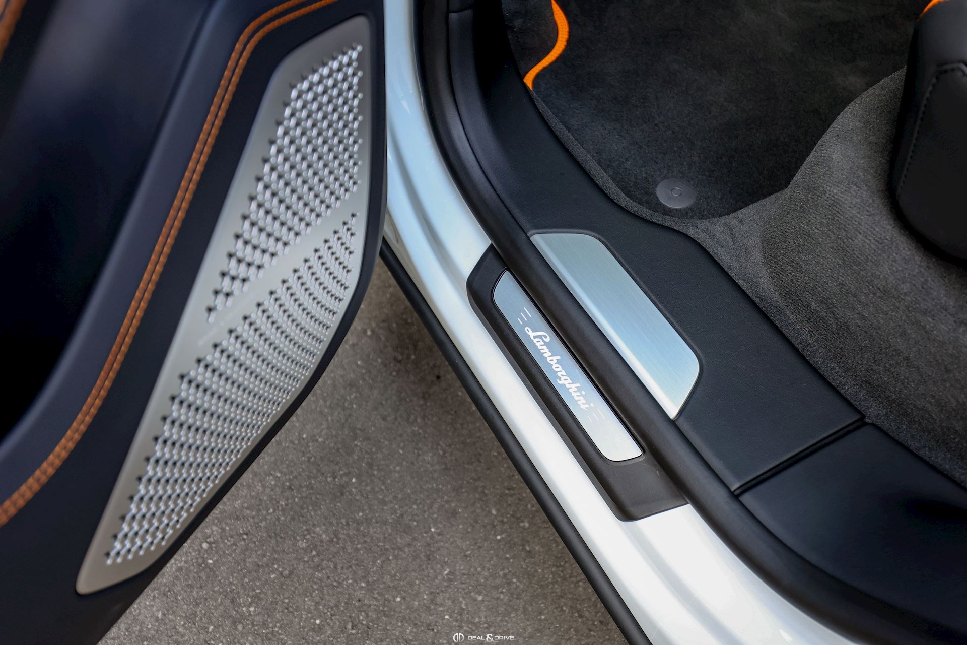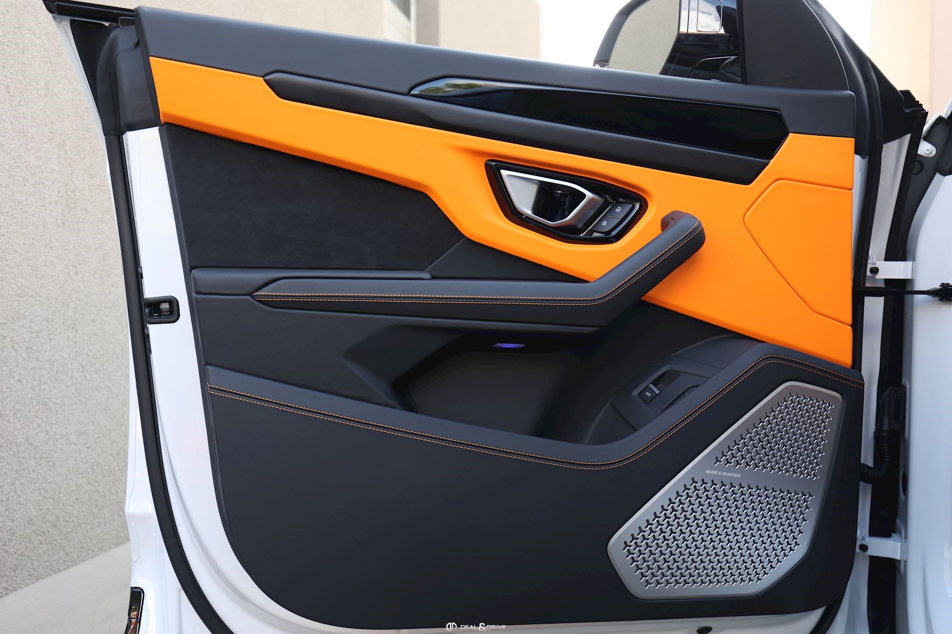 Couleur extérieure : Bianco Icarus avec film de protection intégral Satin Intérieur : Cuir Bi-color Sportivo avec intérieur Peformante en Noir et Arancio Leonis