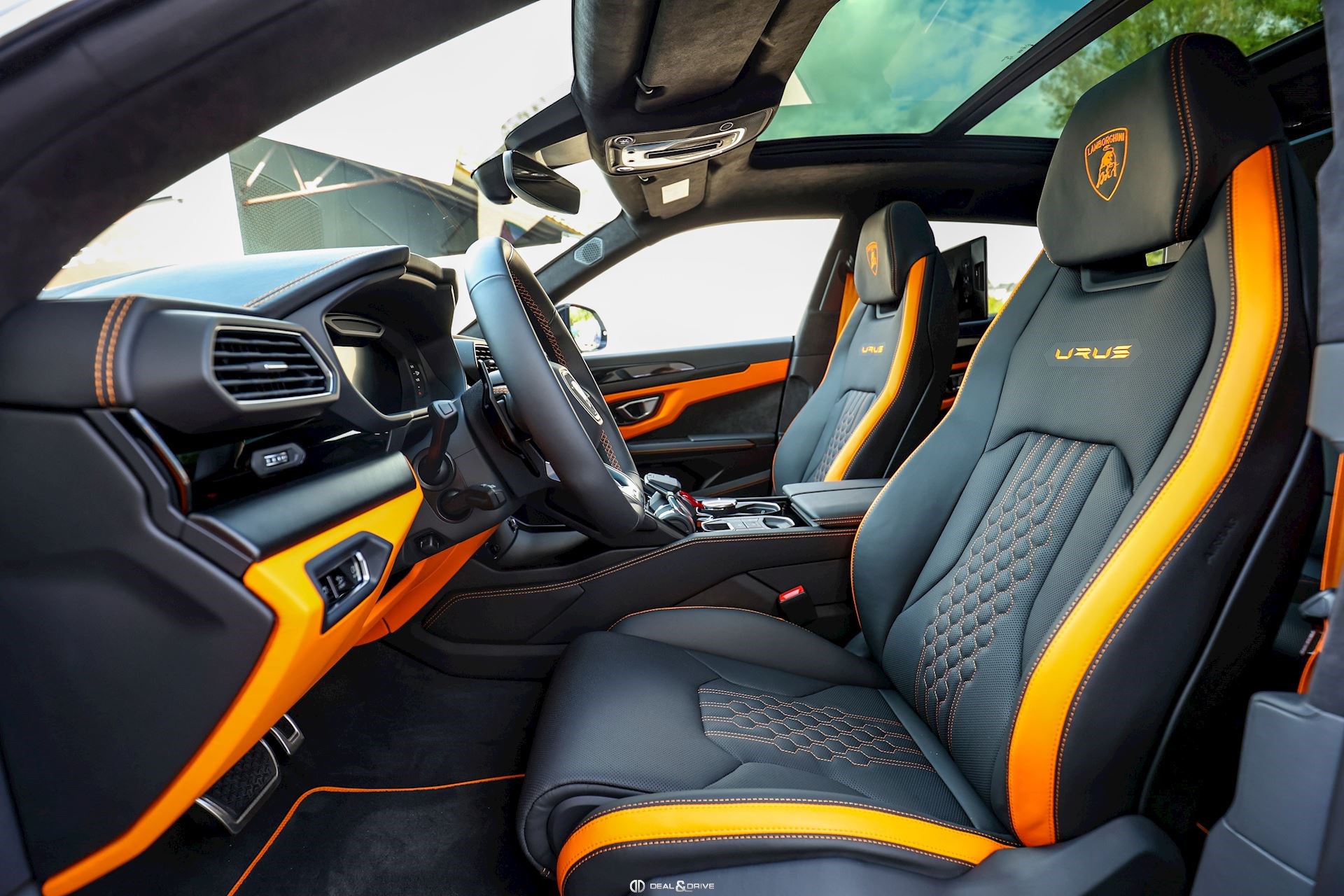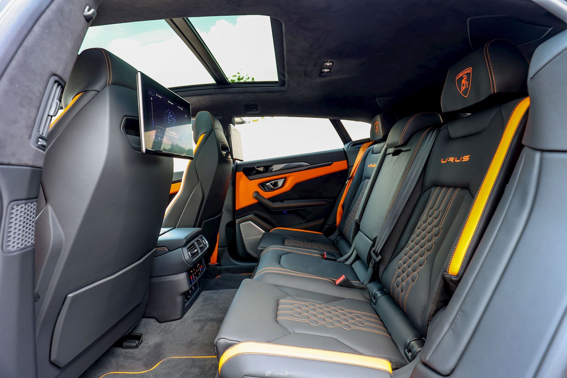 INTÉRIEUR GT4 Traitement anodisé Noir sur les inserts en Aluminium PGN Système de gestion de la cargaison NR7 Emblème brodé sur les appuie-têtes en Orange 0TE Tapis de sol avec joints en cuir et double-surpiqûres en Orange 4A4 Sièges avant et arrière chauffants WV1 Sièges avant électriques, ventilés avec fonction massage YS0 Surpiqûres optionnelles sur le volant en Orange 2V9 Premium Air Quality avec ionisateur d’intérieur YCS Surpiqûres optionnelles en Orange