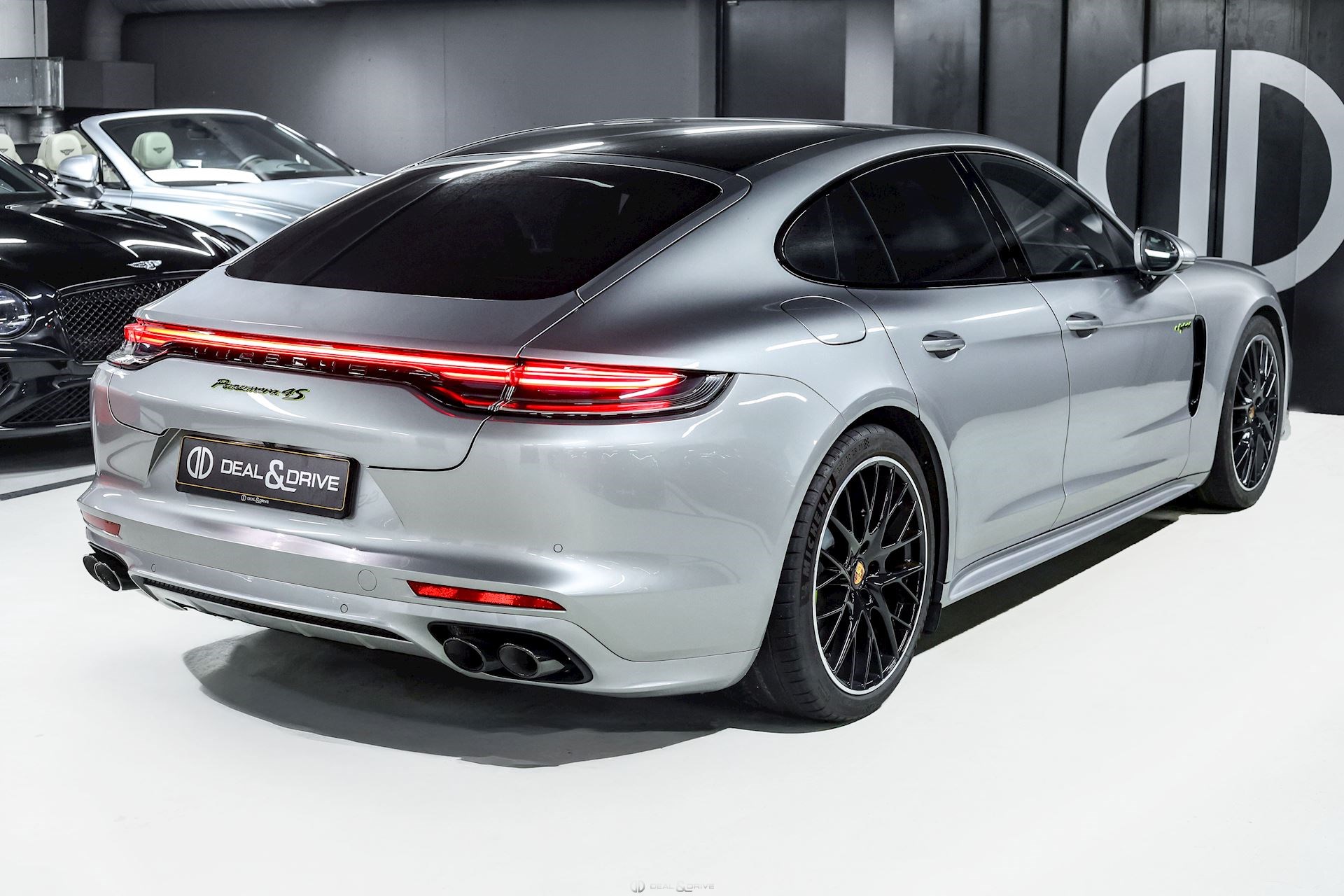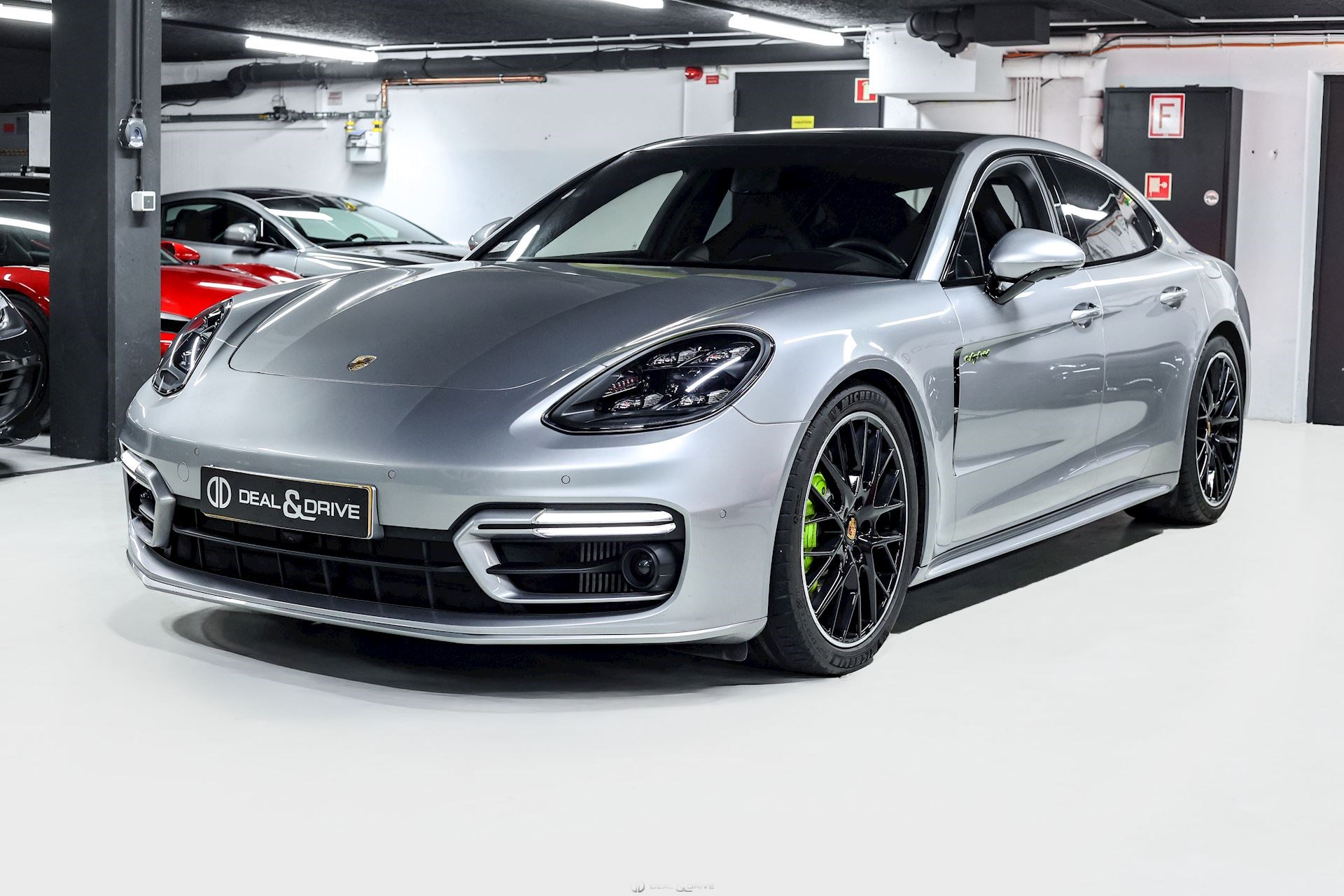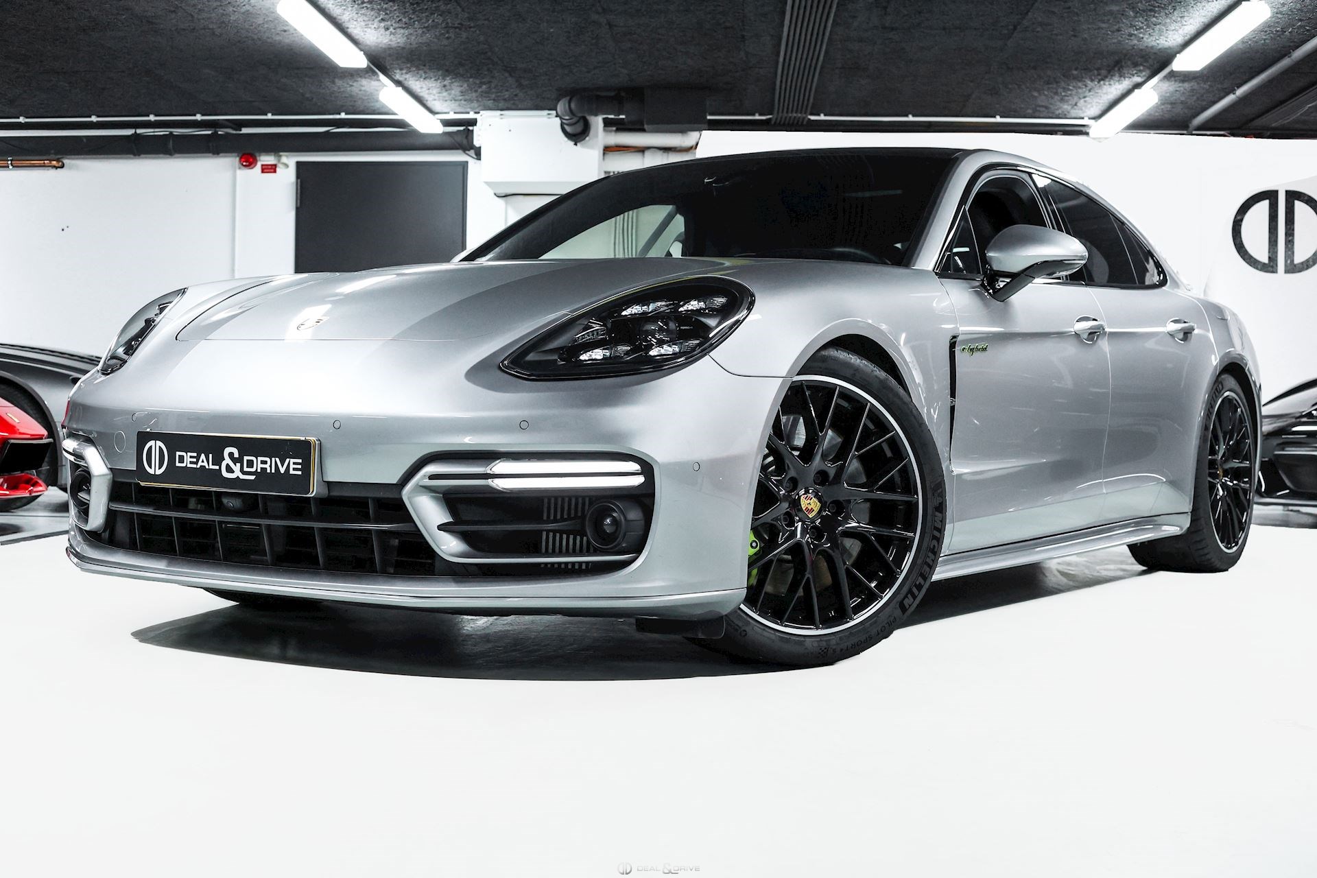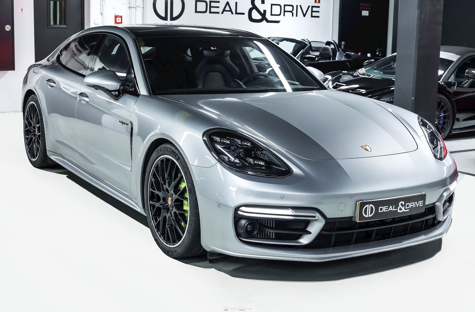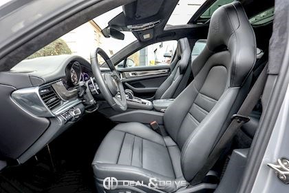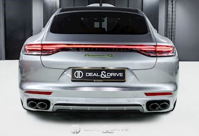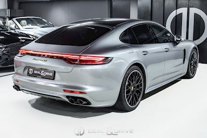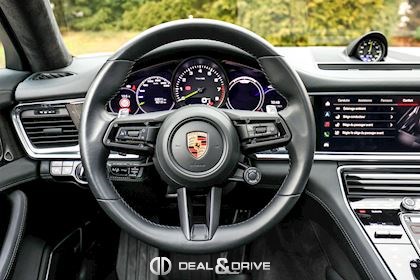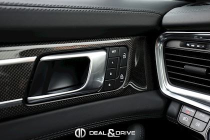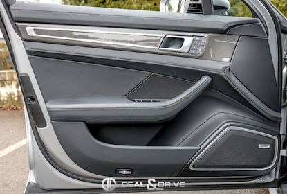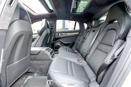 EXTÉRIEUR Toit ouvrant panoramique Vitrage arrière surteinté Encadrement des vitres latérales en Noir Inscription « PORSCHE » en Noir brillant Désignation du modèle peinte en Noir Jantes alliage léger 21’’ Panamera SportDesign en Noir brillant Étriers de frein peints en Vert Caches moyeux Porsche en couleur Hayon électrique Rétroviseurs extérieurs électriques Rétroviseurs extérieurs rabattables électriquement Rétroviseurs extérieurs et intérieur avec fonction anti-éblouissement Partie inférieure des rétroviseurs extérieurs en Noir Prises d’air latérales en Noir sur les ailes avant