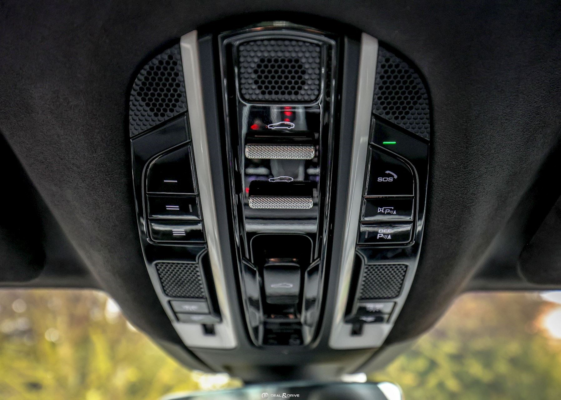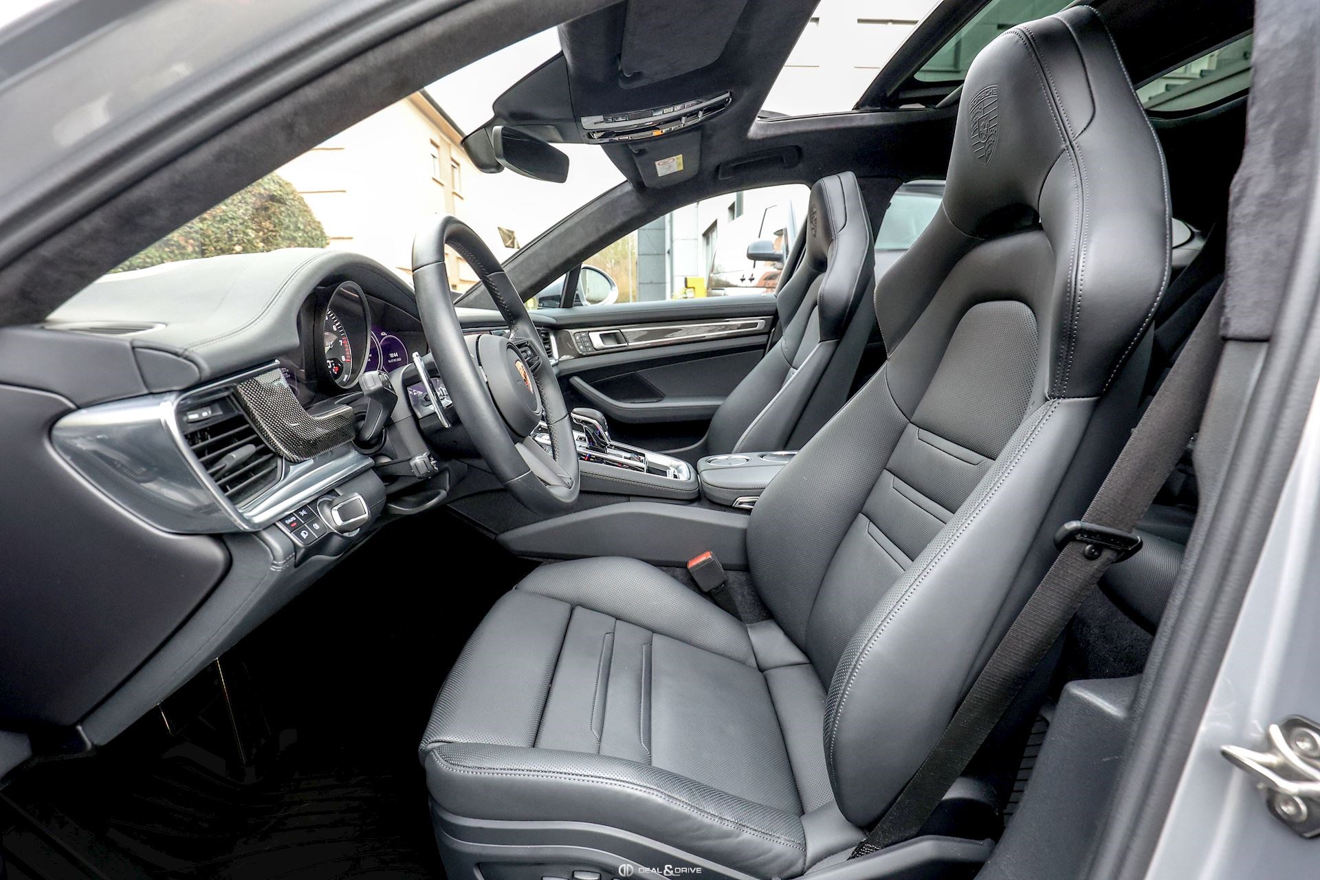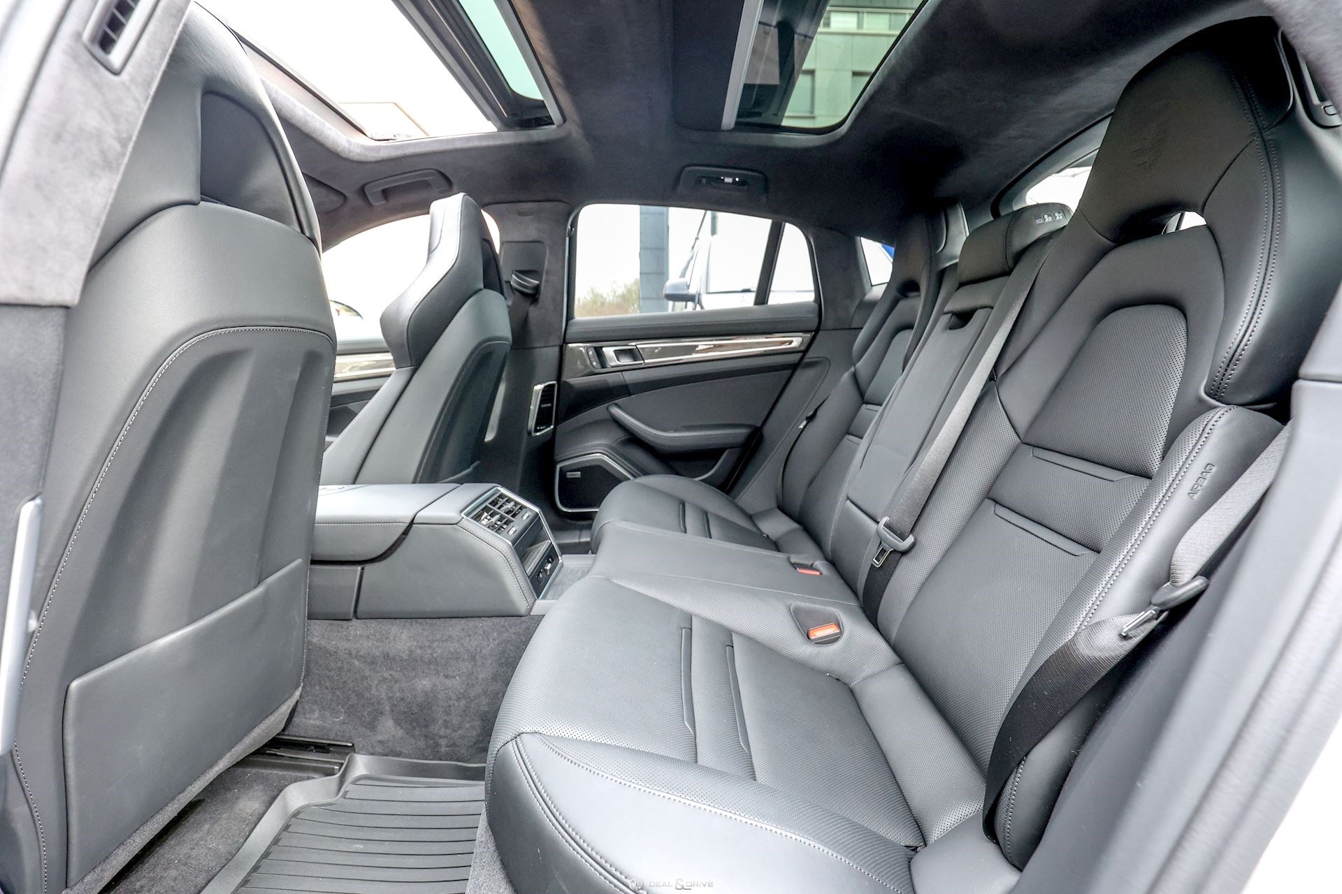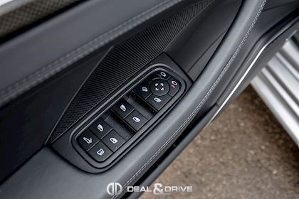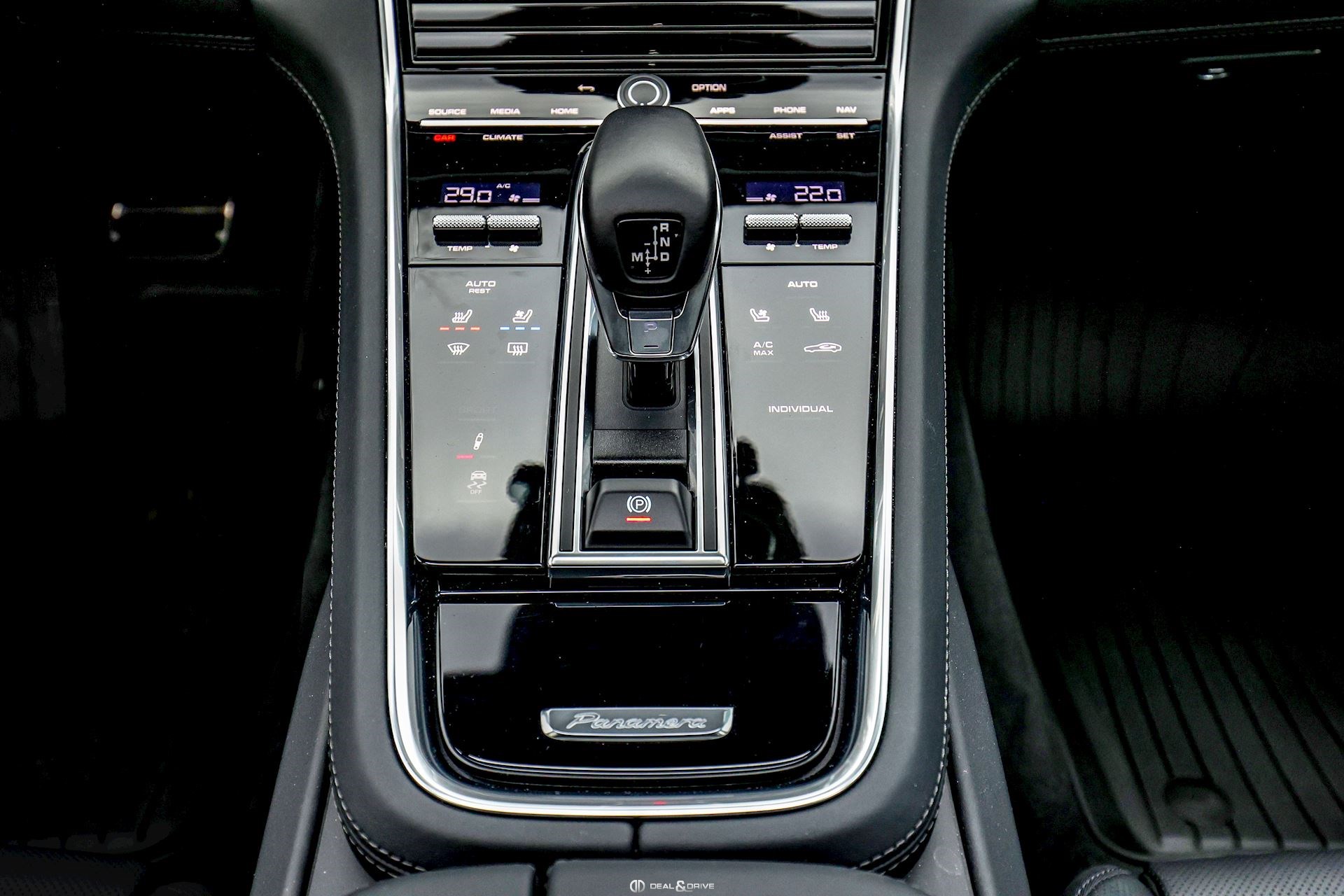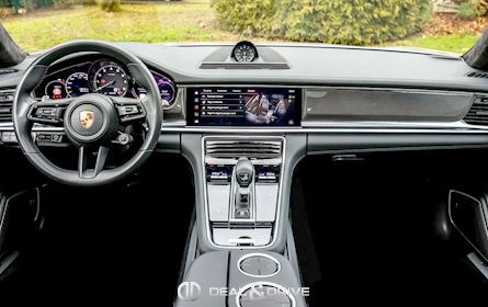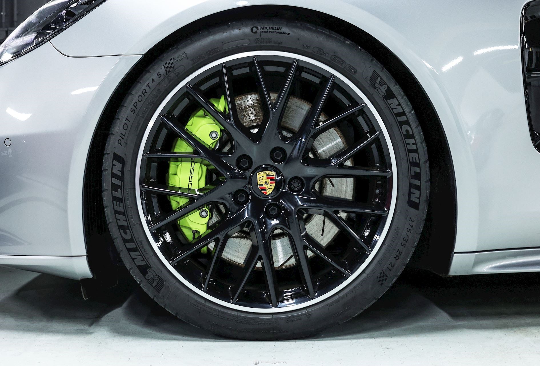 EXTÉRIEUR Toit ouvrant panoramique Vitrage arrière surteinté Encadrement des vitres latérales en Noir Inscription « PORSCHE » en Noir brillant Désignation du modèle peinte en Noir Jantes alliage léger 21’’ Panamera SportDesign en Noir brillant Étriers de frein peints en Vert Caches moyeux Porsche en couleur Hayon électrique Rétroviseurs extérieurs électriques Rétroviseurs extérieurs rabattables électriquement Rétroviseurs extérieurs et intérieur avec fonction anti-éblouissement Partie inférieure des rétroviseurs extérieurs en Noir Prises d’air latérales en Noir sur les ailes avant