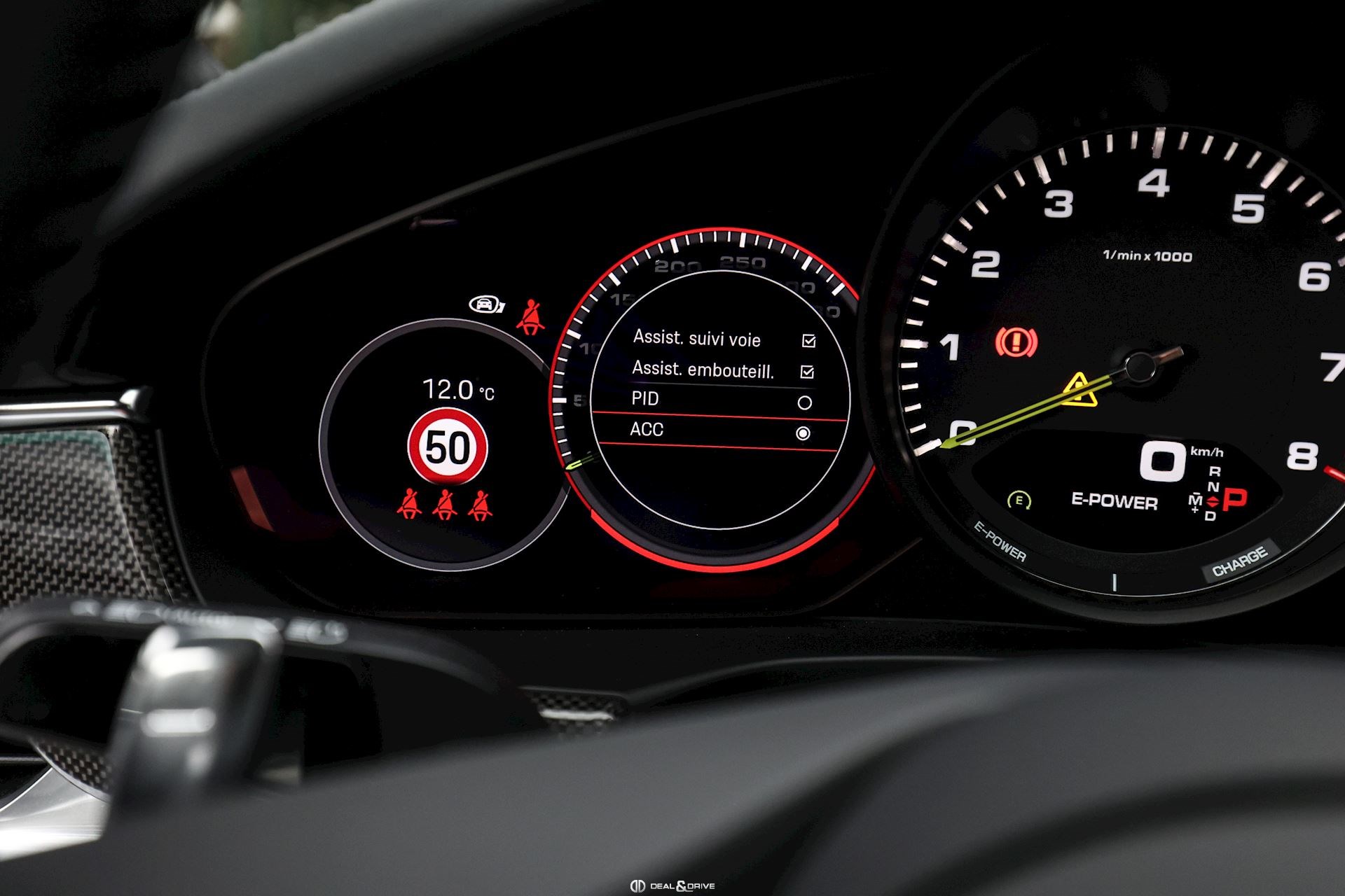 CONFORT, SYSTÈME D'ASSISTANCE Affichage tête haute Aides au stationnement avant et arrière Caméra 360° Surround View Porsche InnoDrive incluant le régulateur de vitesse adaptatif ACC Assistant d’ouverture des portes de garage à distance Home-Link Accès Confort : accès et démarrage sans clef Assistant de fermeture des portes Soft Close Système de contrôle de la pression des pneus Assistant de maintien dans la trajectoire Assistant de suivi de voie Système de reconnaissance des panneaux de signalisation Détecteurs d’angles morts dans les rétroviseurs extérieurs Assistant d’embouteillage Système d’alarme antivol Avertisseur de collision Avertisseur de distance Airbag latéraux à l’arrière