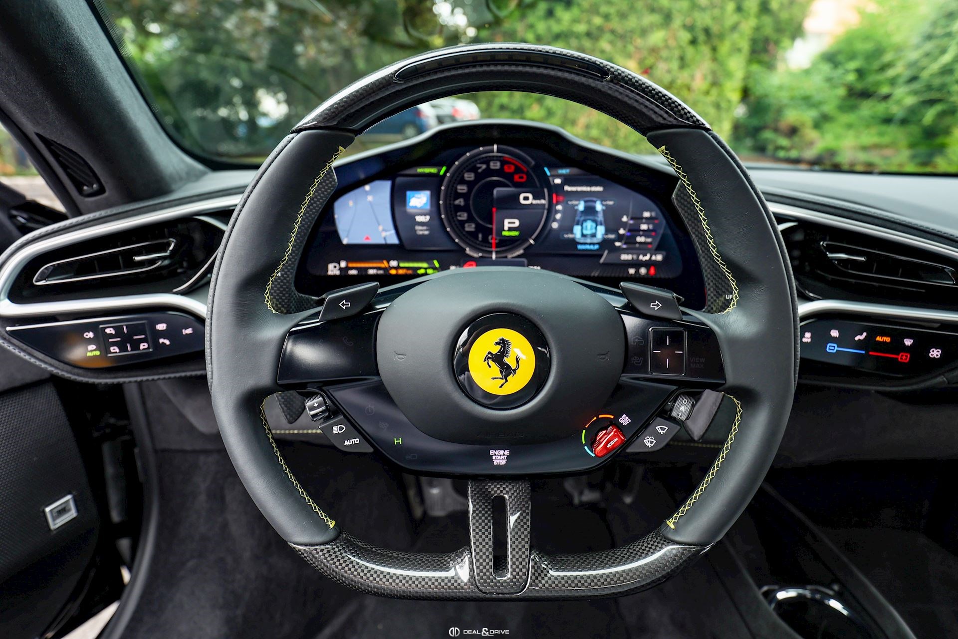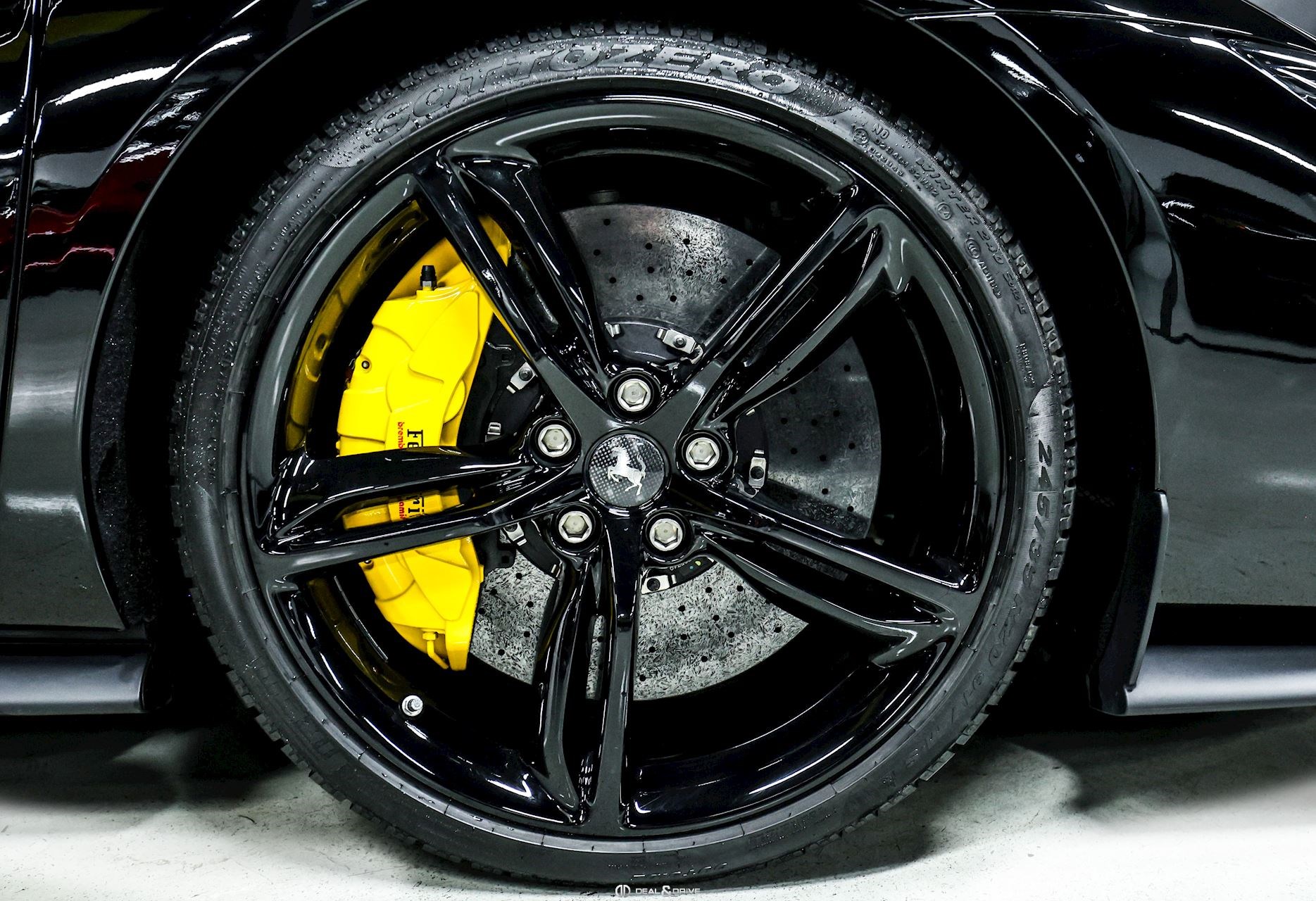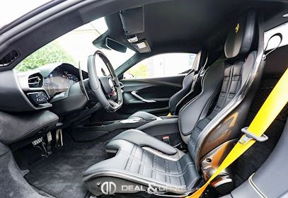 Équipements optionnels :ACPL Apple CarPlayAFS1 Feux avant adaptatifsCALY Etriers de frein en JauneCFWC Caches moyeux en CarboneCSB1 Ceintures de sécurité en JauneDATR Inserts de tableau de bord en CarboneELEV Système de levage de l’essieu avant Lift SystemEMPH CAVALLINO brodé sur les appuie-têtes en Giallo 0113 EXAB Sorties d’échappement en NoirHWC0 Préparation MYFERRARI ConnectLEDS Volant en Carbone + LEDSLOGO Emblème SCUDERIA FERRARI sur les ailes avantMIR3 Rétroviseur intérieur avec fonction anti-éblouissementPAR2 Aides au stationnement avant et arrièreRSCD Sièges Racing Daytona en taille LRSES Sièges réglables en hauteur électriquement SNDH Système audio JBLSTC1 Surpiqûres Standard en Giallo 0113SURR Caméra 360° Surround ViewTIWN Boulons de roue en titaneWIRE Chargeur à induction pour SmartphoneÉquipements de série :Freins céramiques