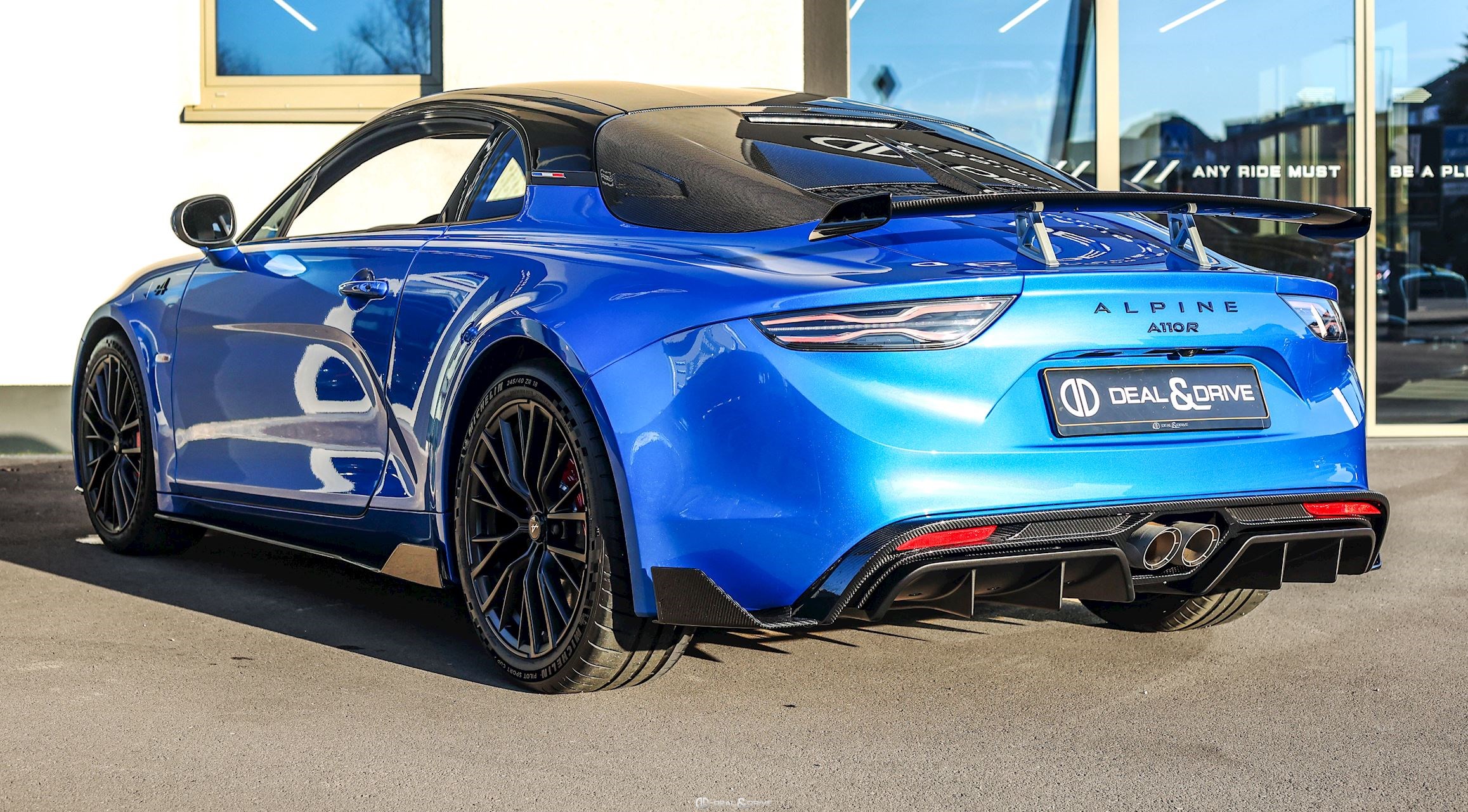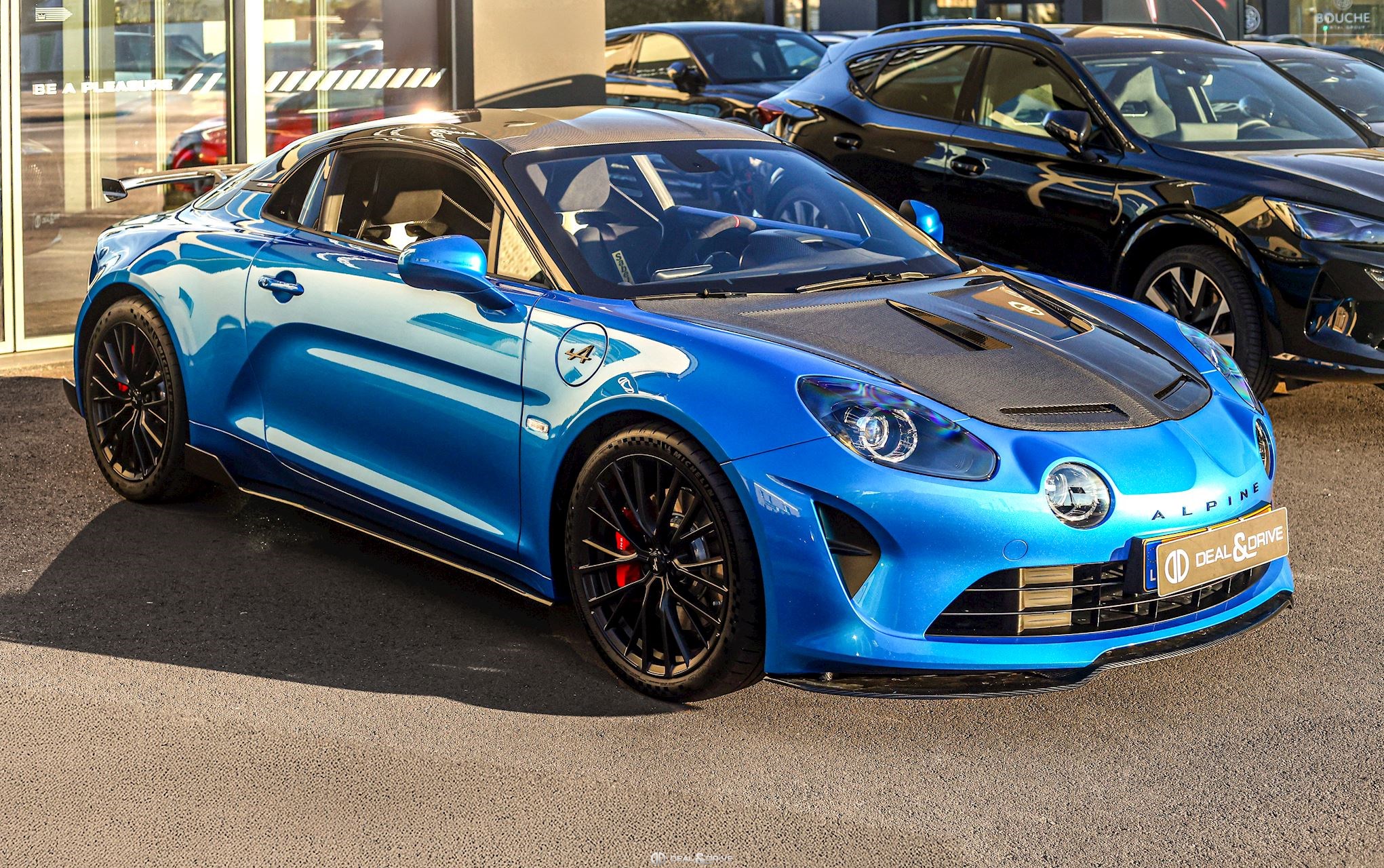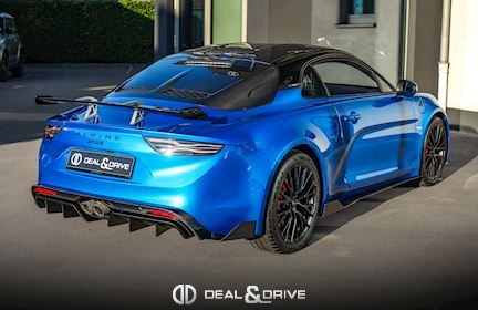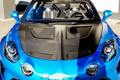 EXTÉRIEUR Capot en Carbone Toit en Carbone Bas de caisse en Carbone Carénage moteur en Carbone Diffuseur arrière en Carbone Rétroviseurs extérieurs électriques Rétroviseurs extérieurs rabattables électriquement Emblème Alpine sur les ailes avant en Noir Jantes alliage léger 18’’ GT Race en Noir Satin Système de freinage surpuissant BREMBO Étriers de frein en Rouge