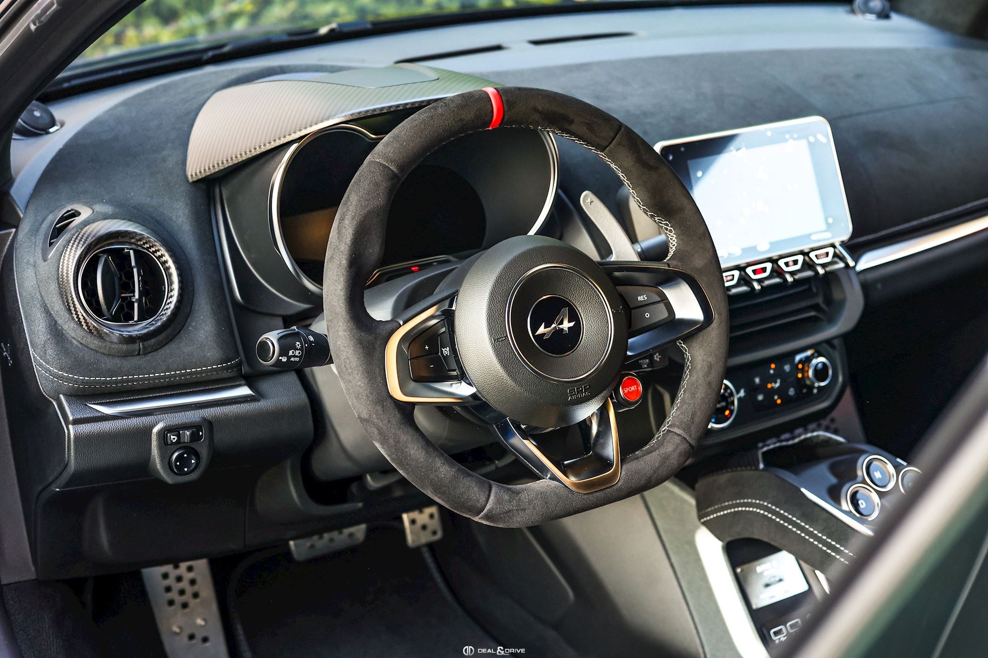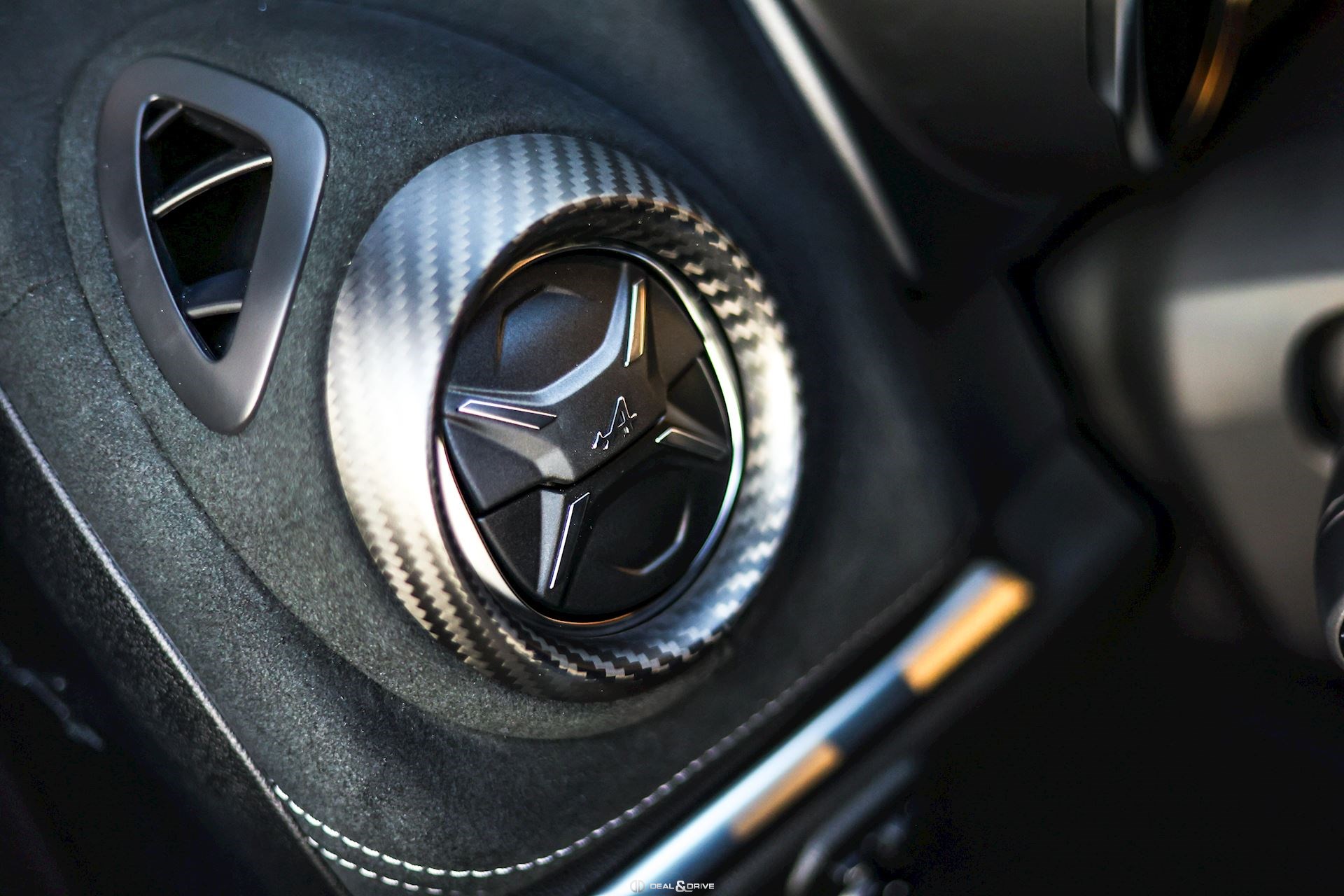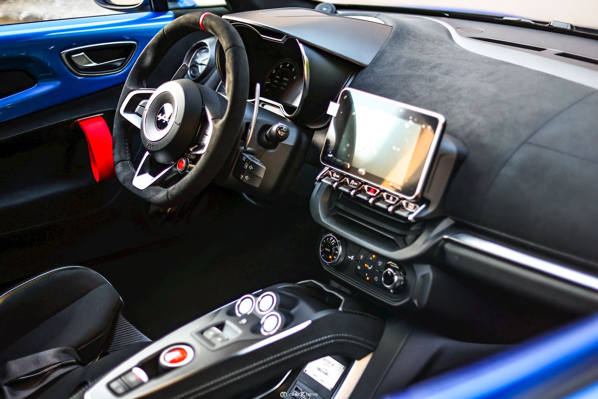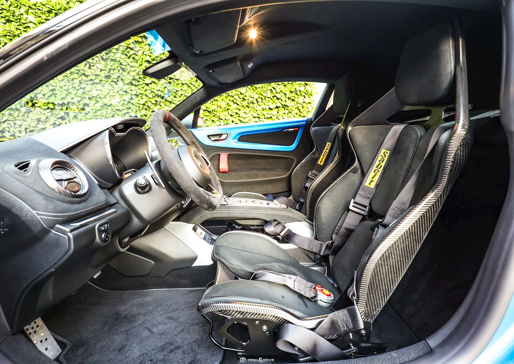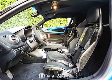 INTÉRIEUR Inserts en Carbone Mat Sièges baquets SABELT avec coques en Carbone Ceinture de sécurité à 6 points Sabelt Seuils de porte en Aluminium avec dénomination « A110 R » Ceintures de sécurité en Noir Tapis de sol Climatisation automatique Pédalier et repose-pied passager en Aluminium Inserts de porte en Dinamica Inserts de porte en couleur carrosserie