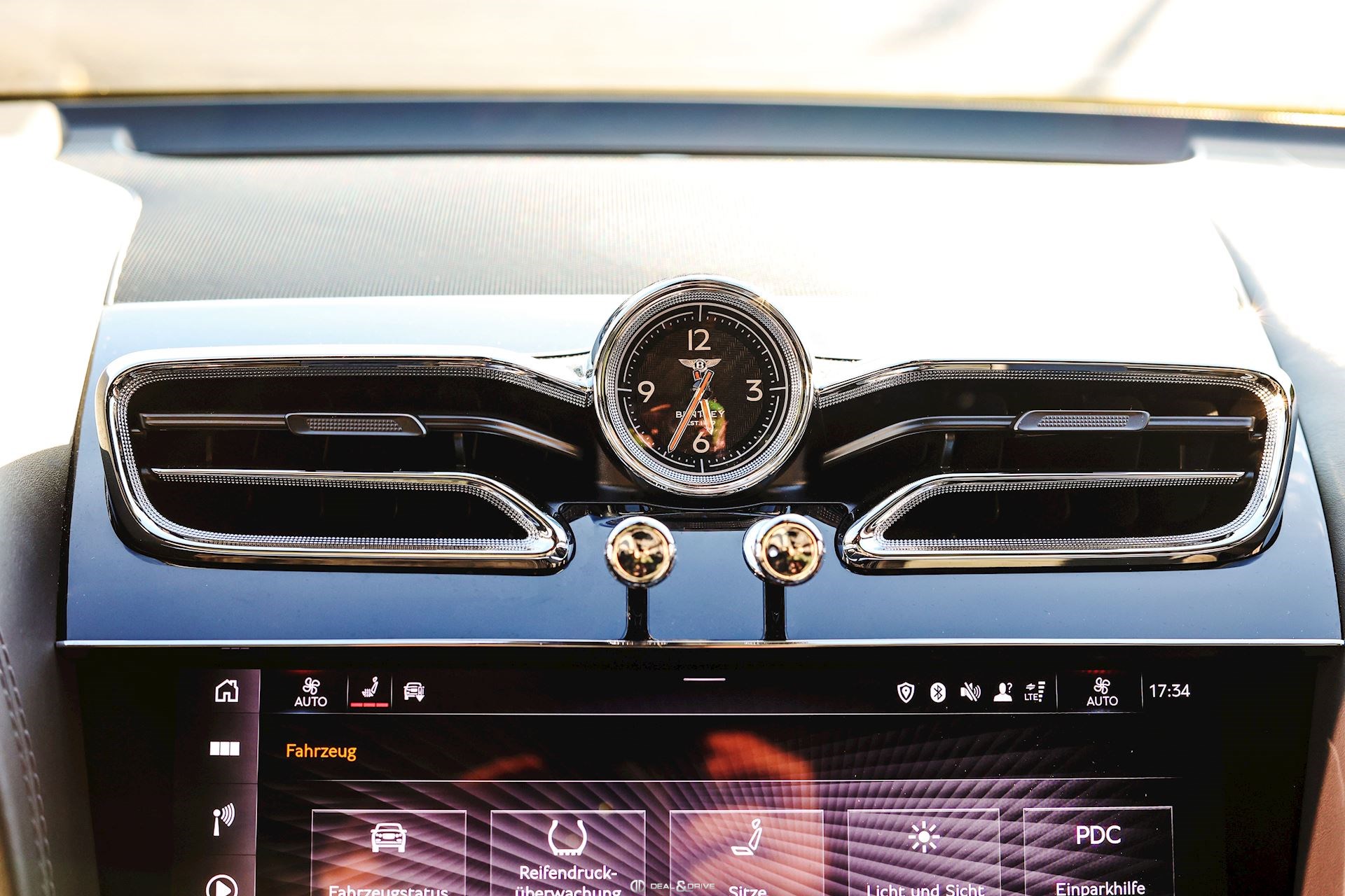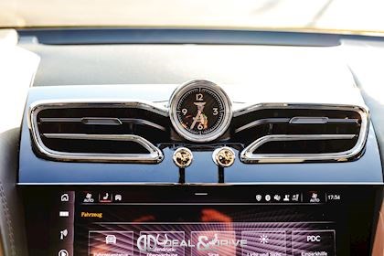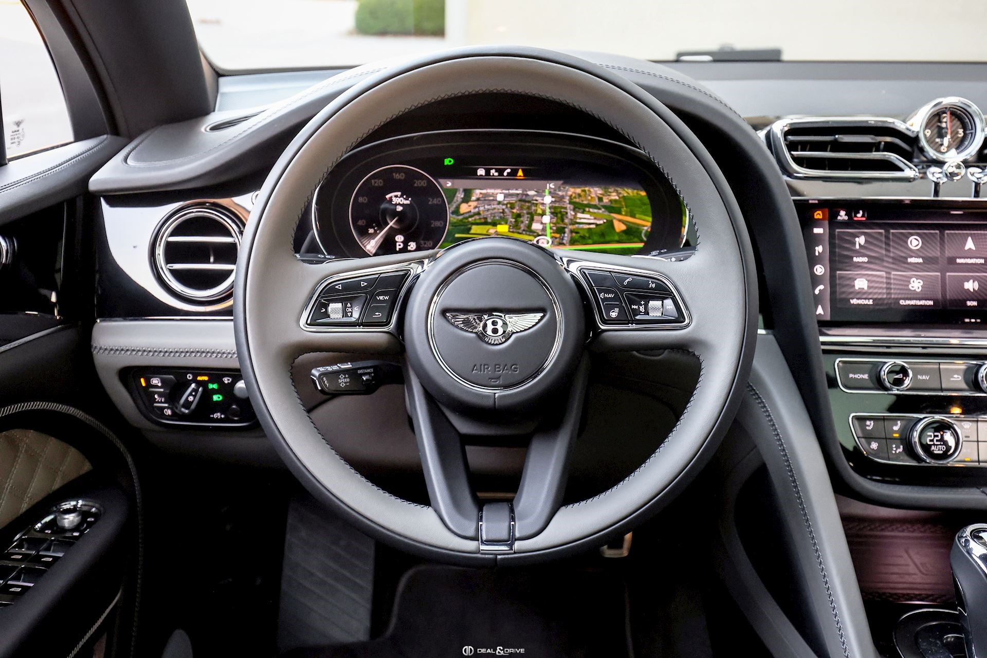 INTÉRIEUR Volant en cuir, 3 branches, Bi-ton, multifonctions Volant chauffant Volant réglable électriquement Horloge BENTAYGA Appuie-têtes Confort Inserts de portes en cuir matelassé Diamant Partie supérieure des sièges en cuir matelassé Diamant Sièges avant électriques, réglables en 22 voies Sièges avant avec fonction mémoire Sièges avant chauffants Sièges avant ventilés Sièges avant avec fonction massage Appuie-lombaires électriques Levier de vitesse garni de cuir Tapis de sol en couleur BELUGA Bordure des tapis en cuir Rideau du toit panoramique en Noir