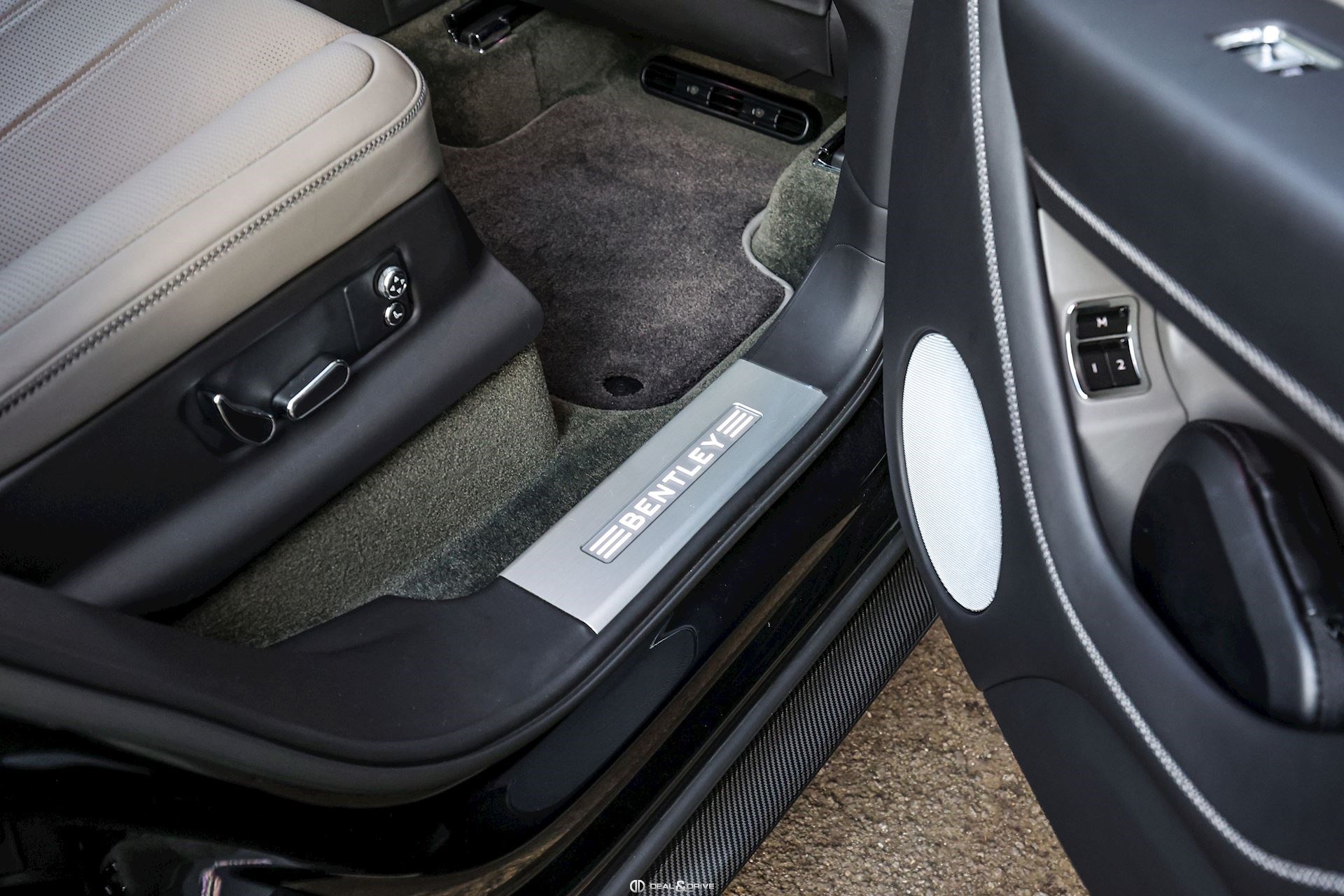 Emblème BENTLEY brodé sur les sièges en couleur contrastante Lampes de bienvenue à LED avec emblème BENTLEY Ceintures de sécurité en couleur contrastante PORPOISE by Mulliner Surpiqûres croisées by Mulliner