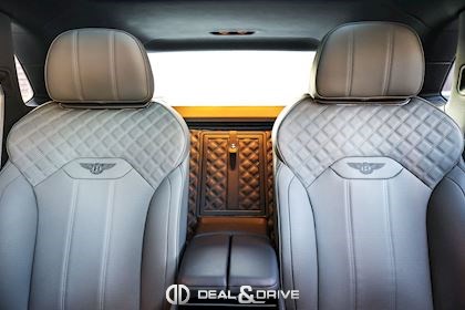 BENTLEY MULLINER Mulliner Driving Specification pour Blackline Specification Jantes 22’’directionnelles à cinq branches en Noir Sièges en losanges surpiqués Pédalier Sport Plaques de marchepied illuminées BENTLEY