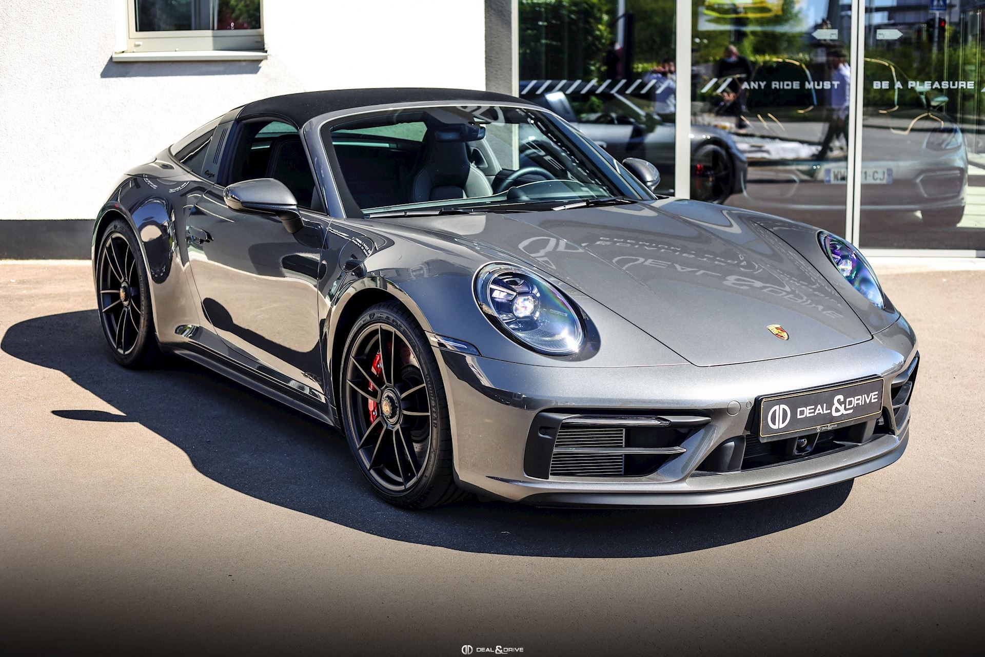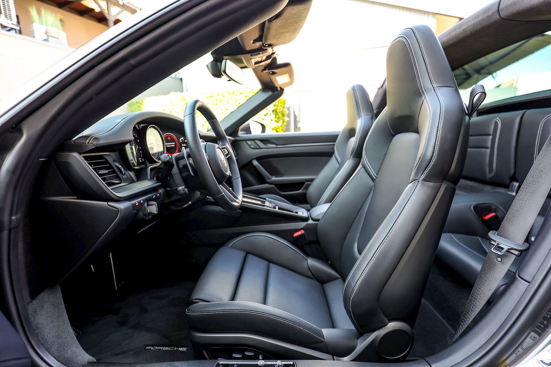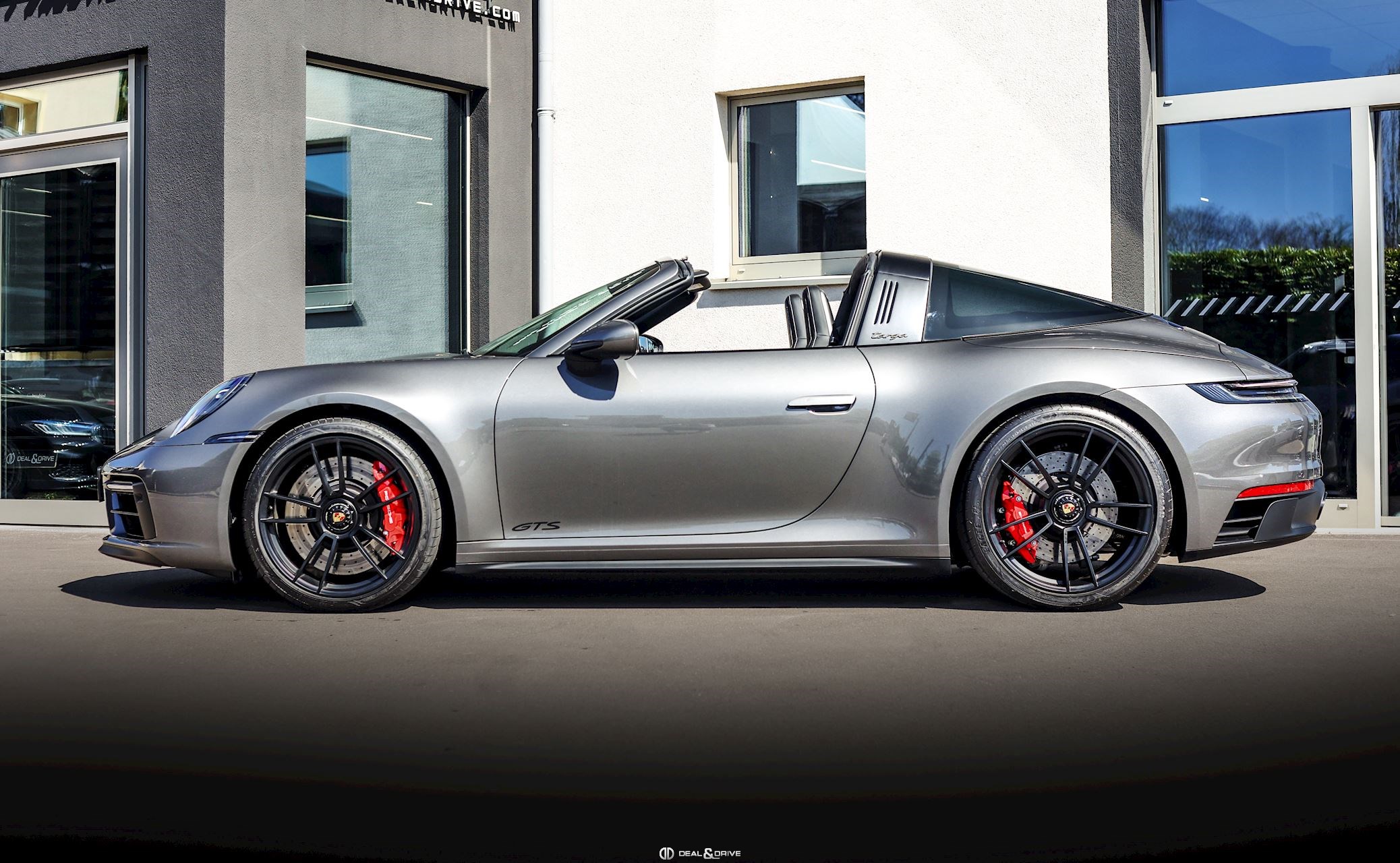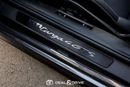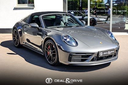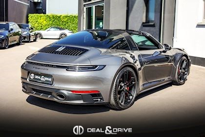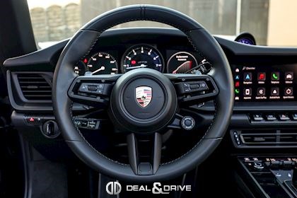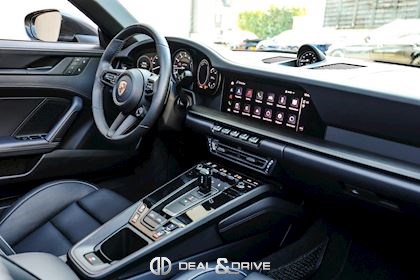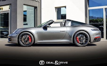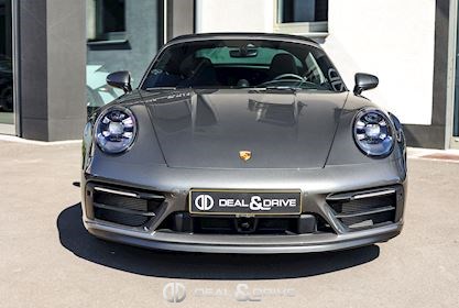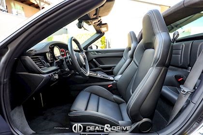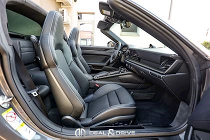 EXTÉRIEUR Capote en Noir Vitrage arrière surteinté - Porsche Exclusive Manufaktur Habillages des bas de caisse en Noir Satiné brillant – Design Sport Pare-brise avec bandeau pare-soleil supérieur teinté-dégradé Arceau Targa Noir Jantes alliage léger 20’’ / 21’’ Turbo S en Noir Étriers de frein en Rouge Caches moyeux Porsche en couleur Rétroviseurs extérieurs électriques Désignation du modèle peinte en Noir Mat PORSCHE en Noir Mat