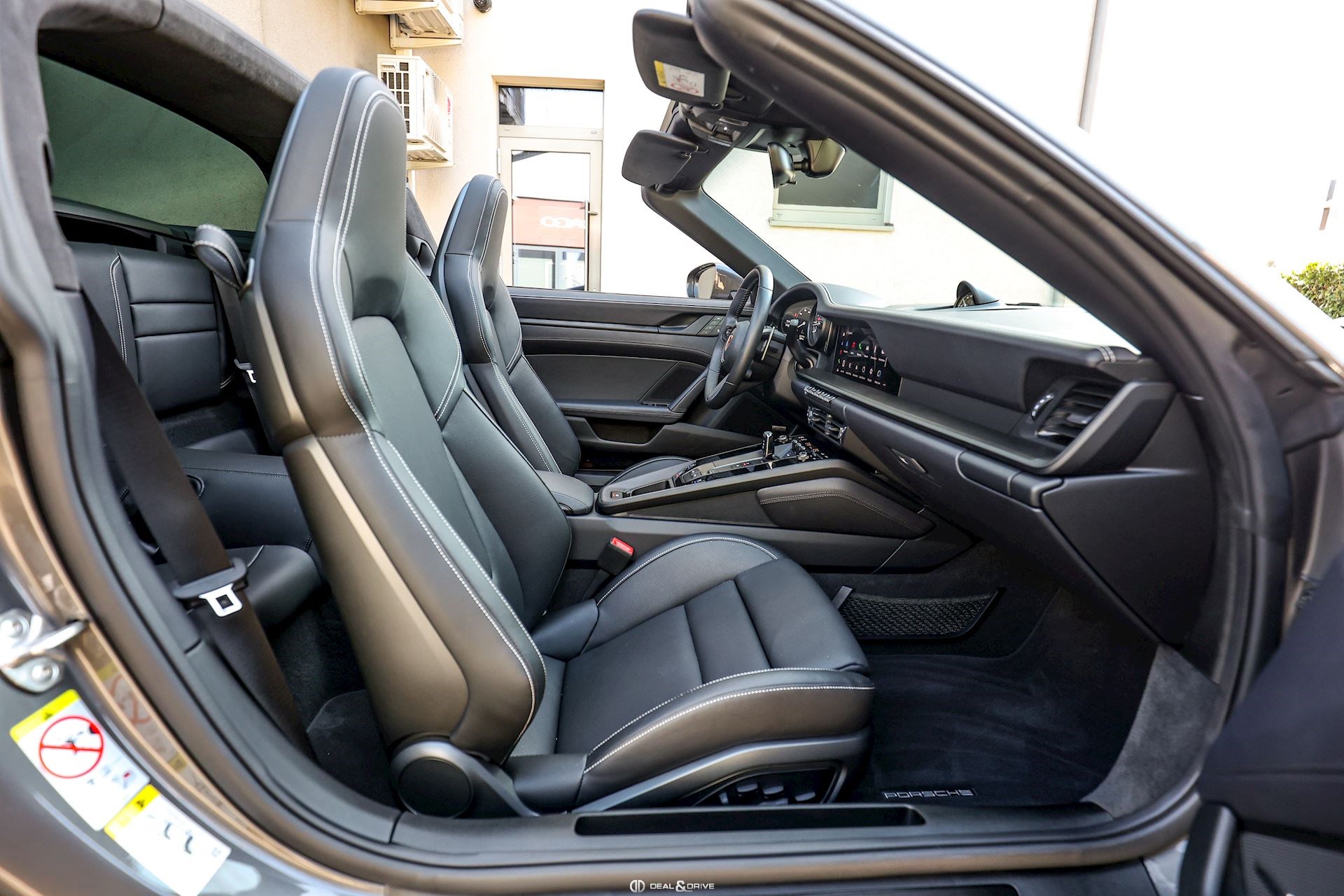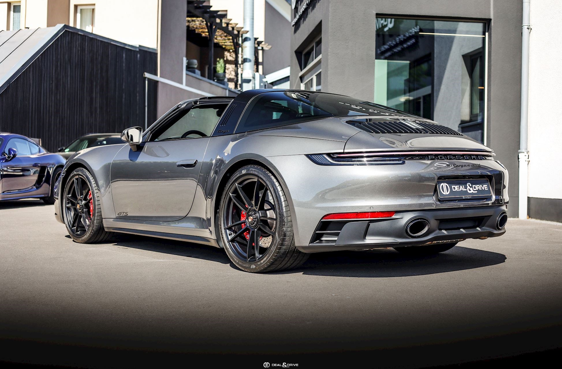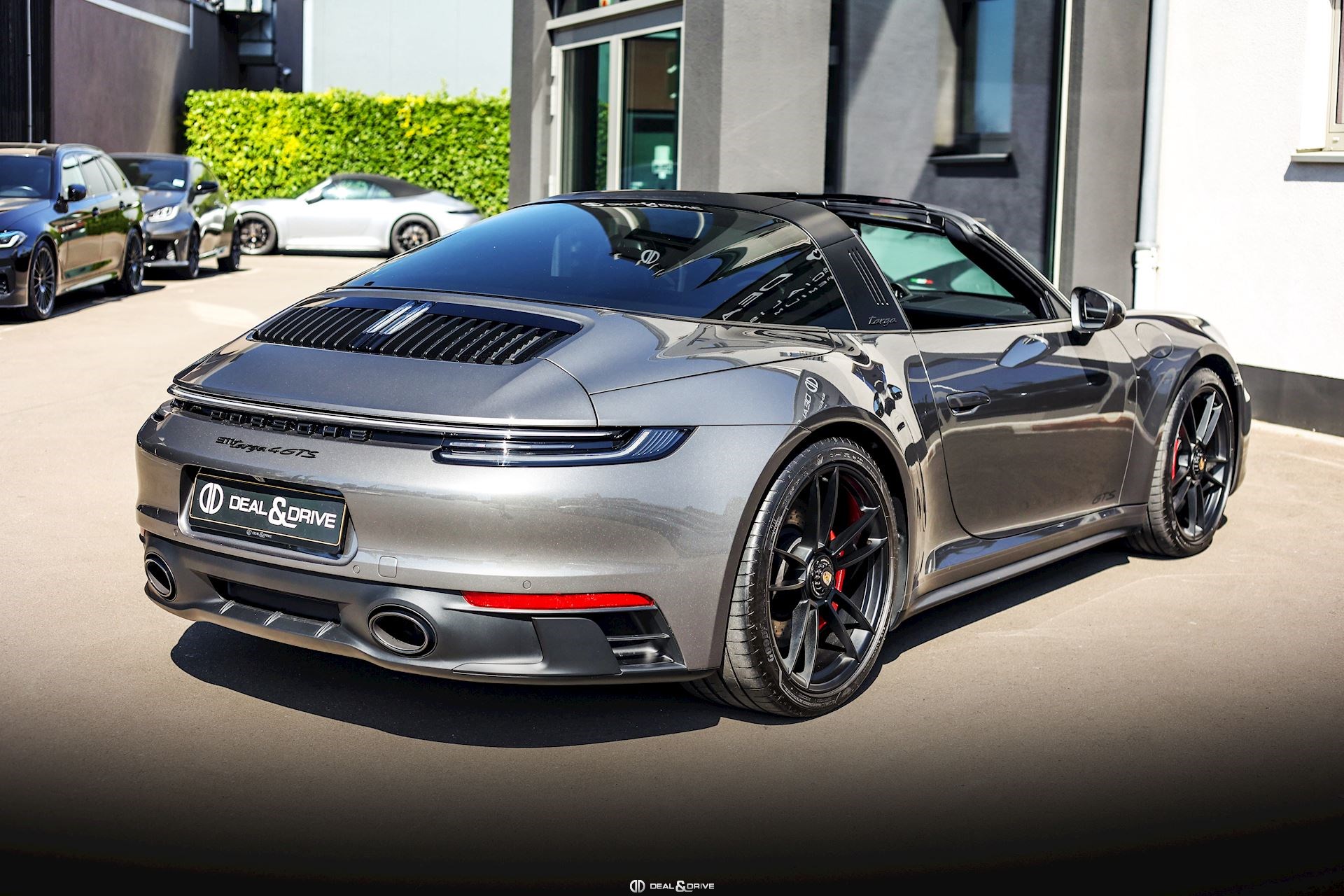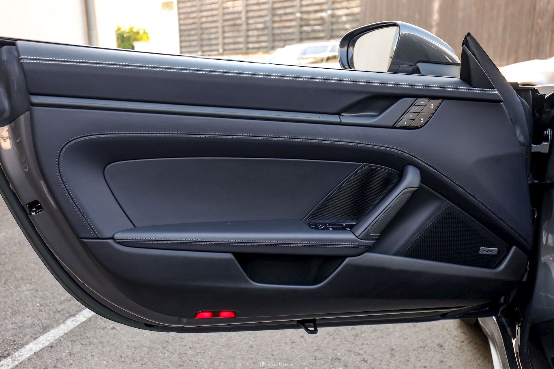 EXTÉRIEUR Capote en Noir Vitrage arrière surteinté - Porsche Exclusive Manufaktur Habillages des bas de caisse en Noir Satiné brillant – Design Sport Pare-brise avec bandeau pare-soleil supérieur teinté-dégradé Arceau Targa Noir Jantes alliage léger 20’’ / 21’’ Turbo S en Noir Étriers de frein en Rouge Caches moyeux Porsche en couleur Rétroviseurs extérieurs électriques Désignation du modèle peinte en Noir Mat PORSCHE en Noir Mat