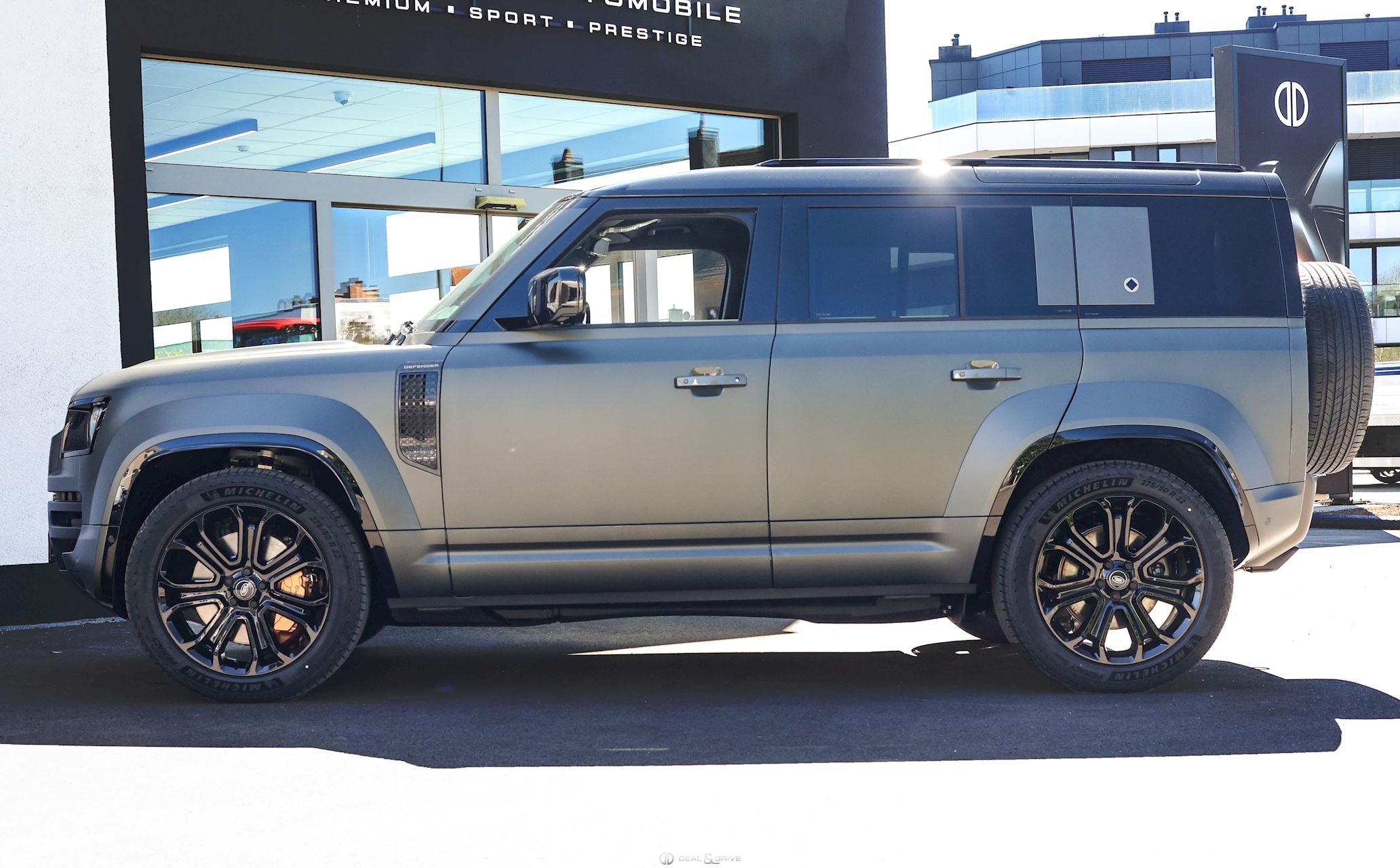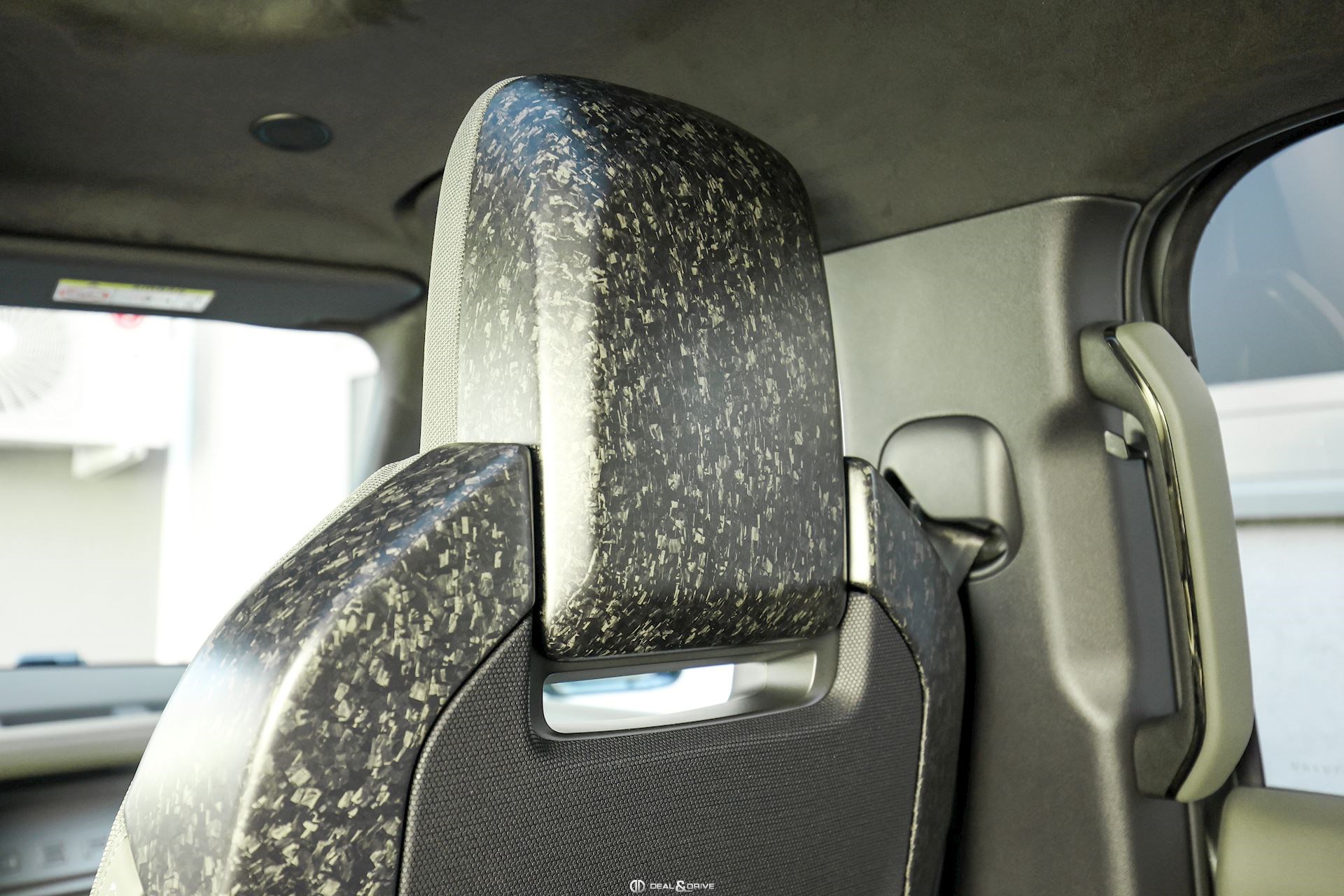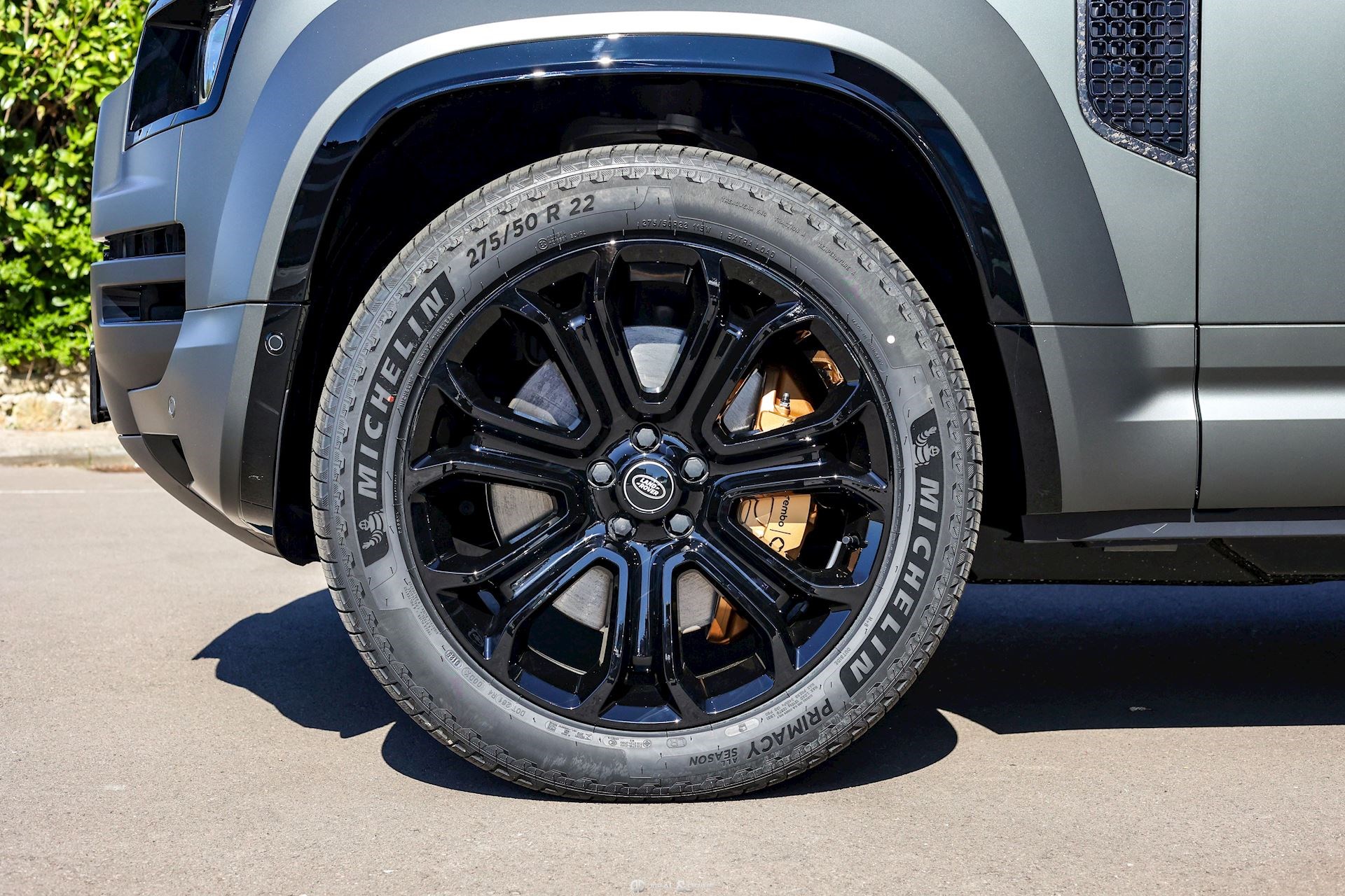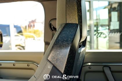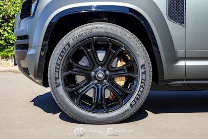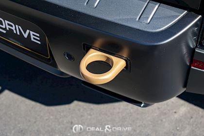 EXTÉRIEUR Attelage rétractable électriquement Jantes alliage léger 22’’ Style 7026 en Noir brillant Étriers de frein avant Phosphor Bronze Toit ouvrant panoramique Toit en couleur contrastée Noir Hayon en couleur contrastée en Noir Rails de toit en Noir Coques des rétroviseurs extérieurs en Noir Vitrage arrière surteinté Capot en couleur carrosserie Pare-chocs inférieurs avant et arrière Satin Moonlight Calandre supérieure et inférieure Gloss Black Badges Defender en fibre de Carbone fragmentée sur le capot Pare-brise dégivrant Sorties d’échappement Satin Black Protection inférieure avant Zirconium Graphite Protection renforcée: protection intégrée dans le pare-chocs avant et soubassement consolidé Rétroviseurs extérieurs électriques Rétroviseurs extérieurs rabattables électriquement Rétroviseurs extérieurs chauffants