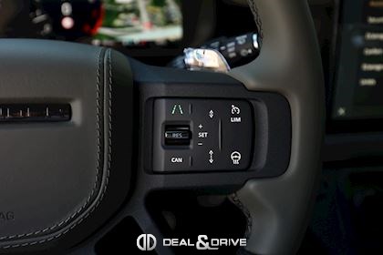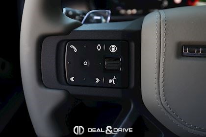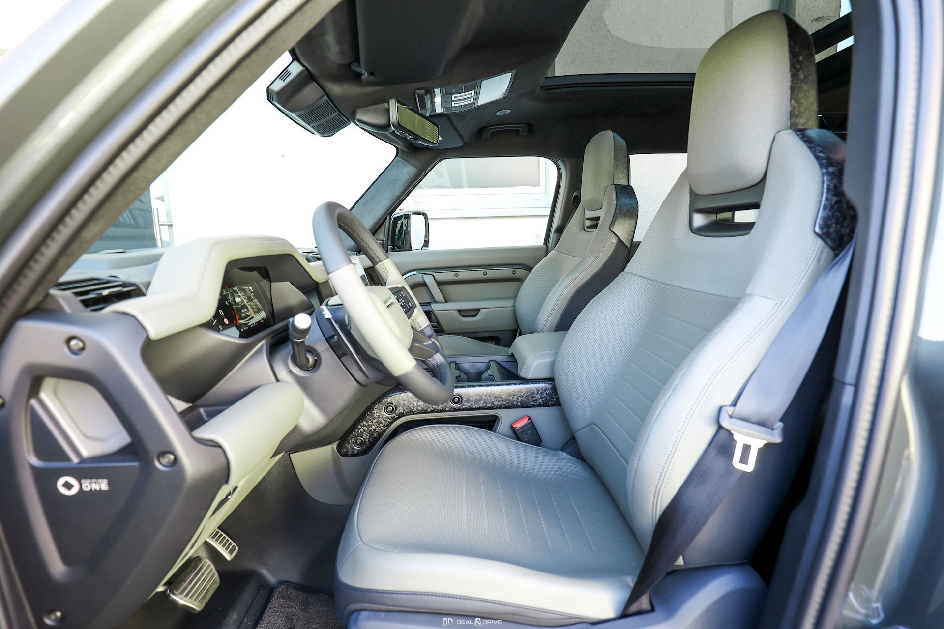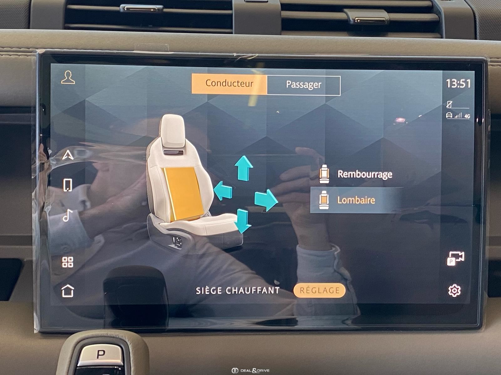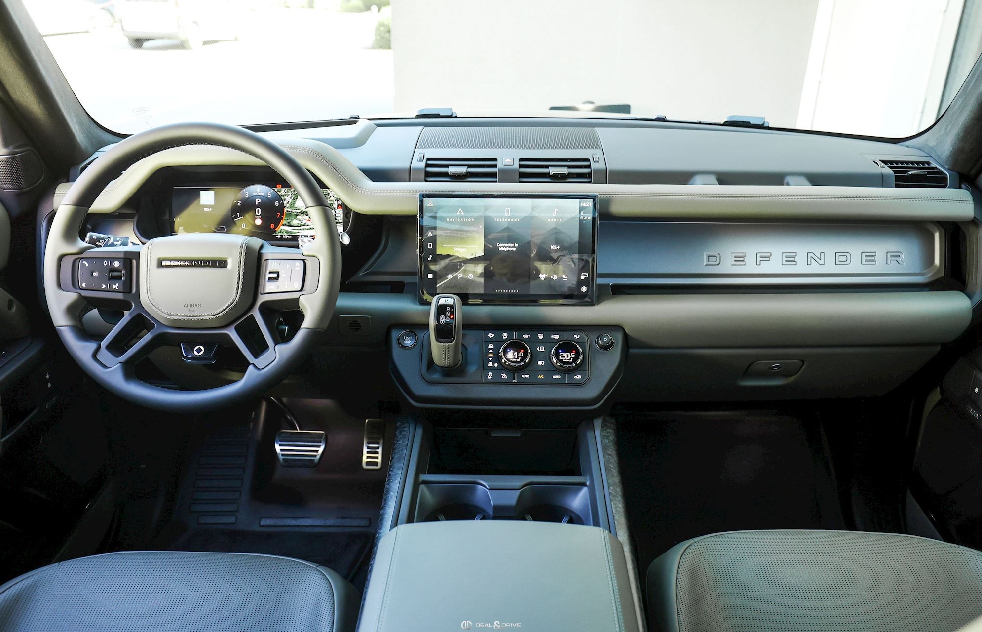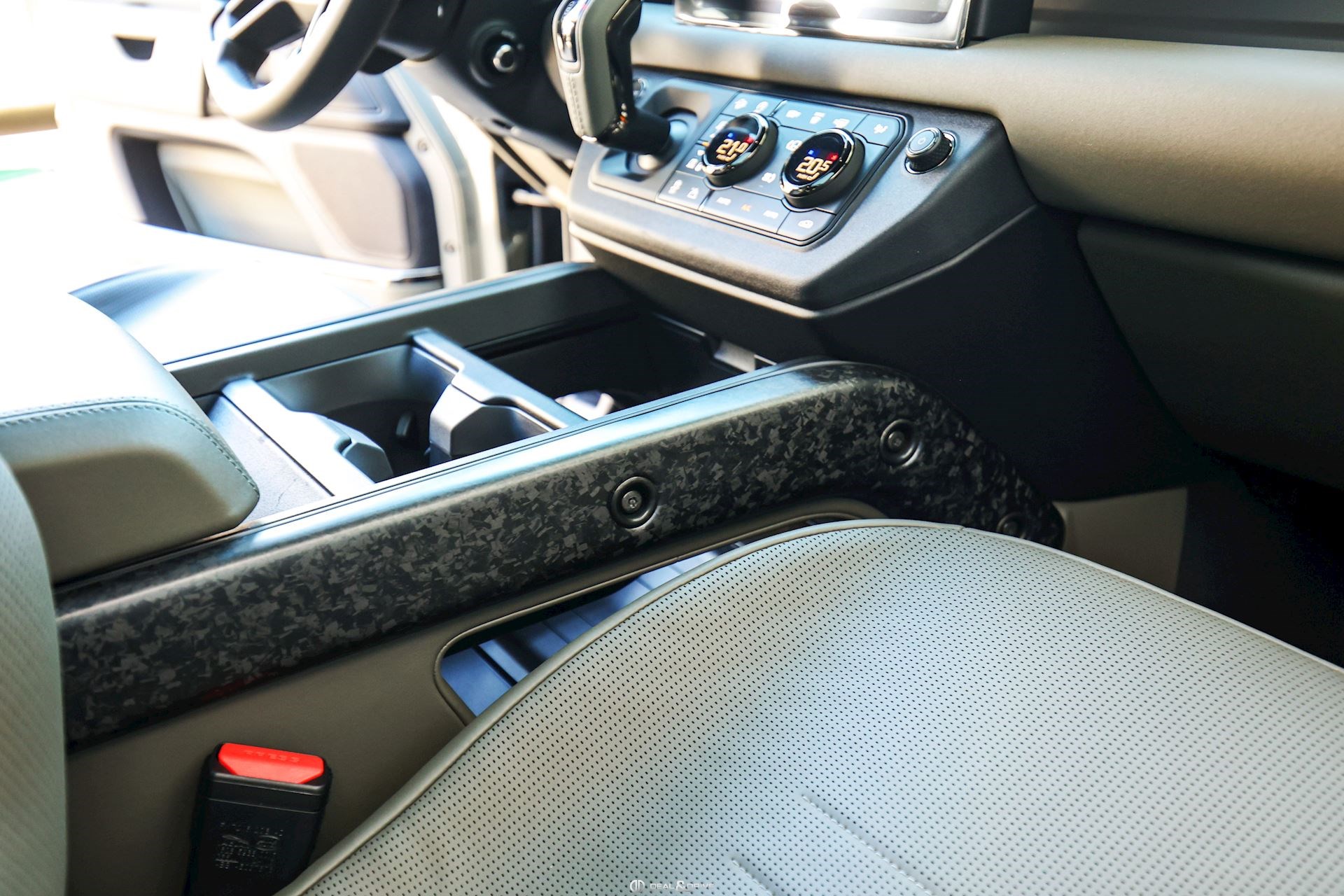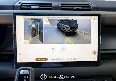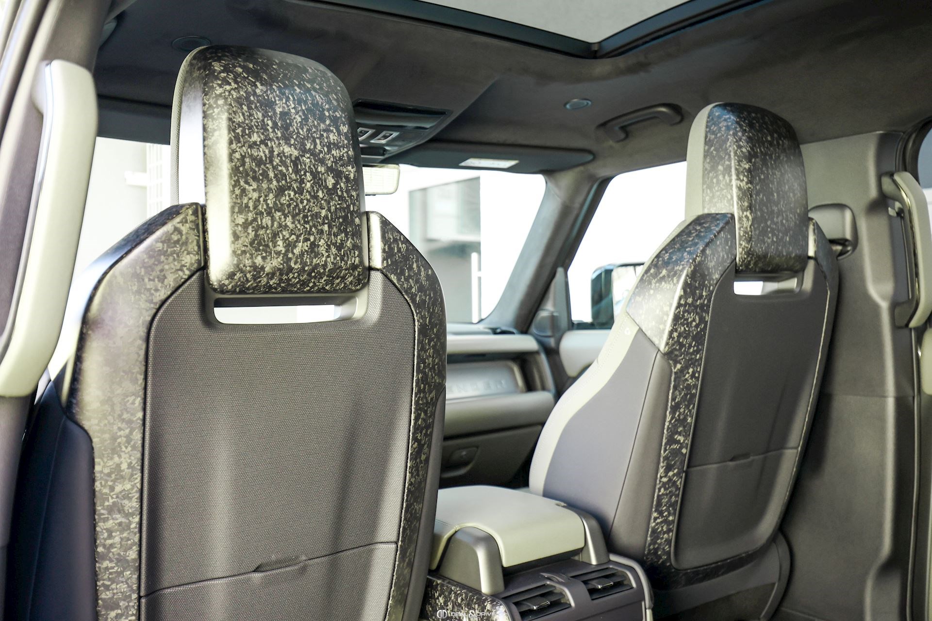 INTÉRIEUR Inserts en Fibre de Carbone fragmentée Dossier de siège en fibre de Carbone fragmentée Finition de console centrale en fibre de carbone fragmentée Traverse en finition metallisée Grey Powder Habitacle finition signature Plafonnier en Suédine en couleur Ebony Console centrale réfrigérée Sièges incluant le système audio Body and Soul Sièges avant électriques réglables en 14 voies Sièges avant avec fonction mémoire Sièges avant chauffants Sièges avant ventilés Appuie-lombaires électriques Sièges arrière chauffants rabattables en configuration 40/20/40 avec accoudoir central Volant Performance Volant chauffant Volant réglable électriquement Sélecteur de vitesse en tissu Resist Signature graphique avec rangement intérieur Pédalier en métal brillant Plaques de seuils avant illuminées en métal avec inscription 'DEFENDER' Palettes de changement de rapports au volant, éclairées Tapis de sol signature Climatisation automatique 3 zones Capteur de qualité de l’air Système de purification de l’air de l’habitacle avec filtre PM2.5 - Niveau 2 Isofix sur siège passager Couvre bagage