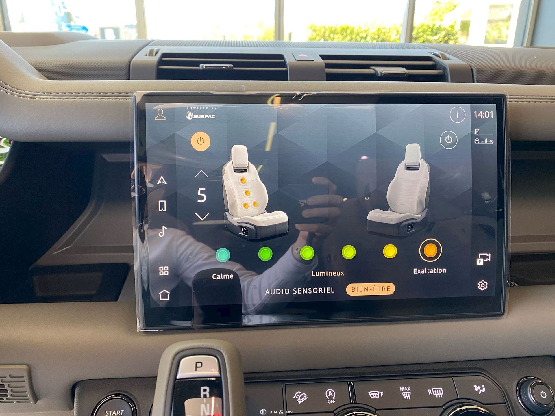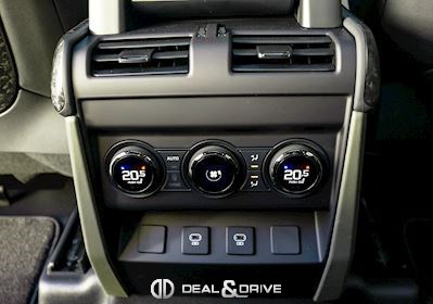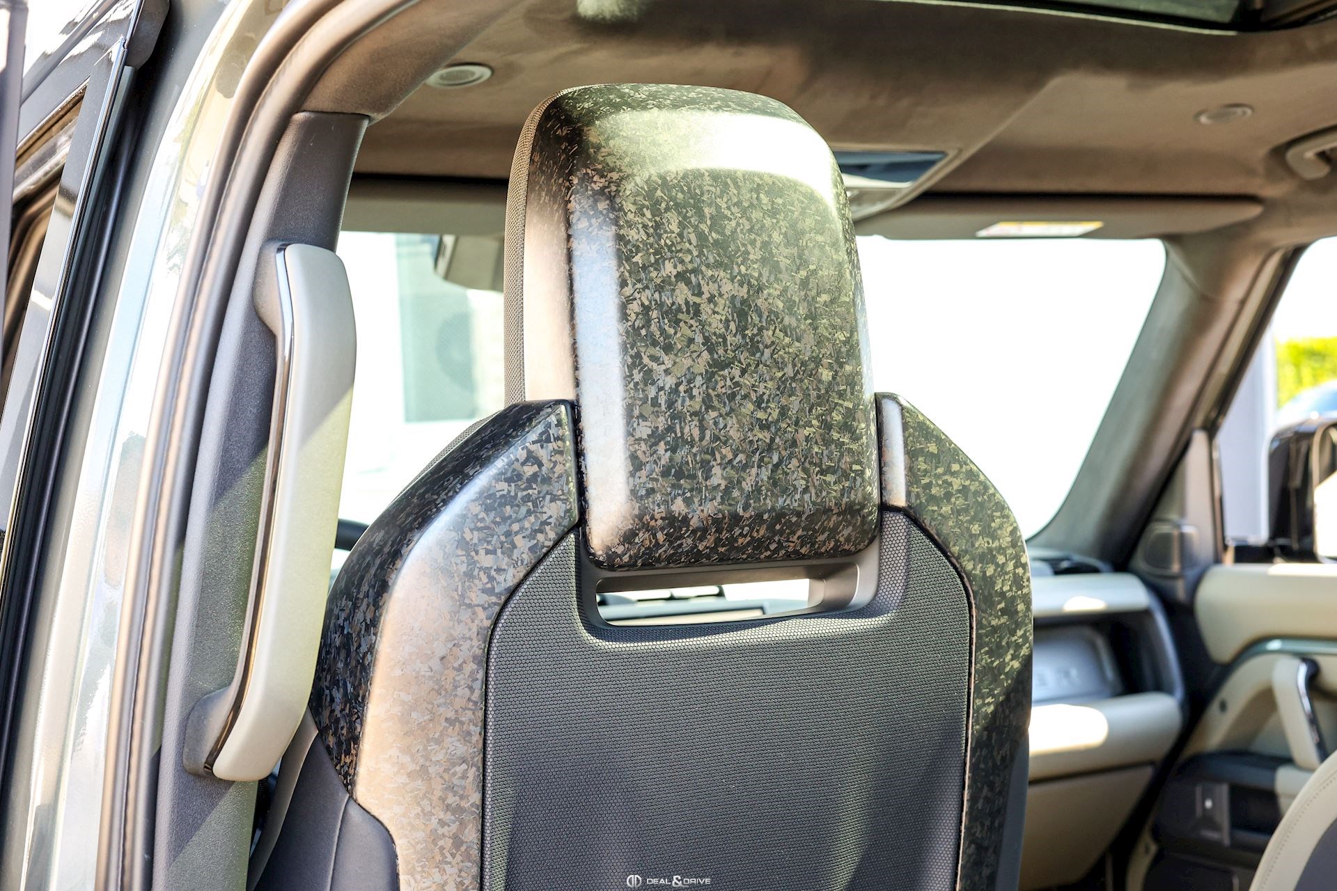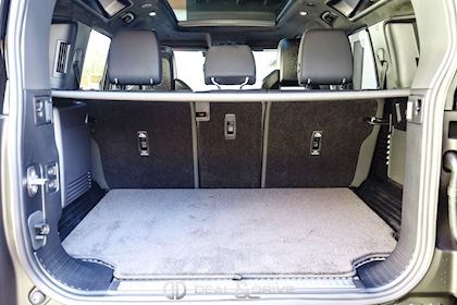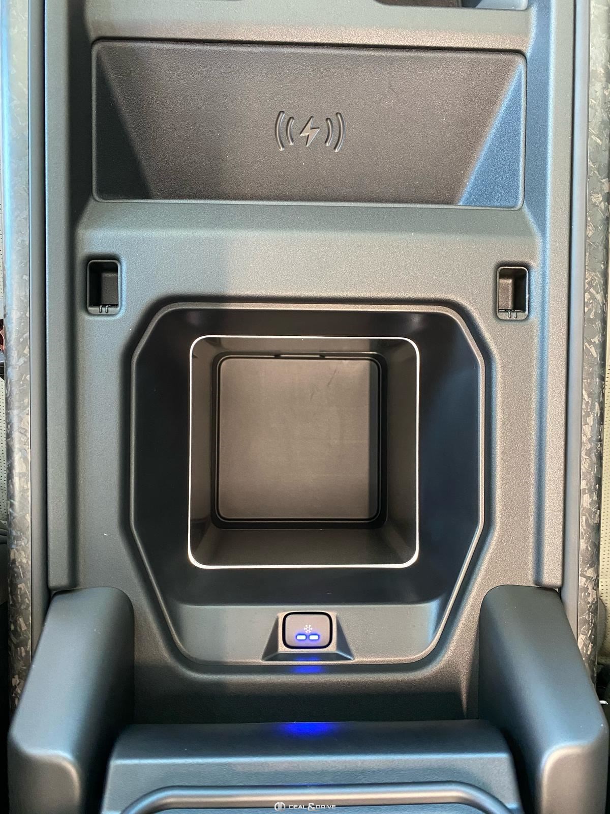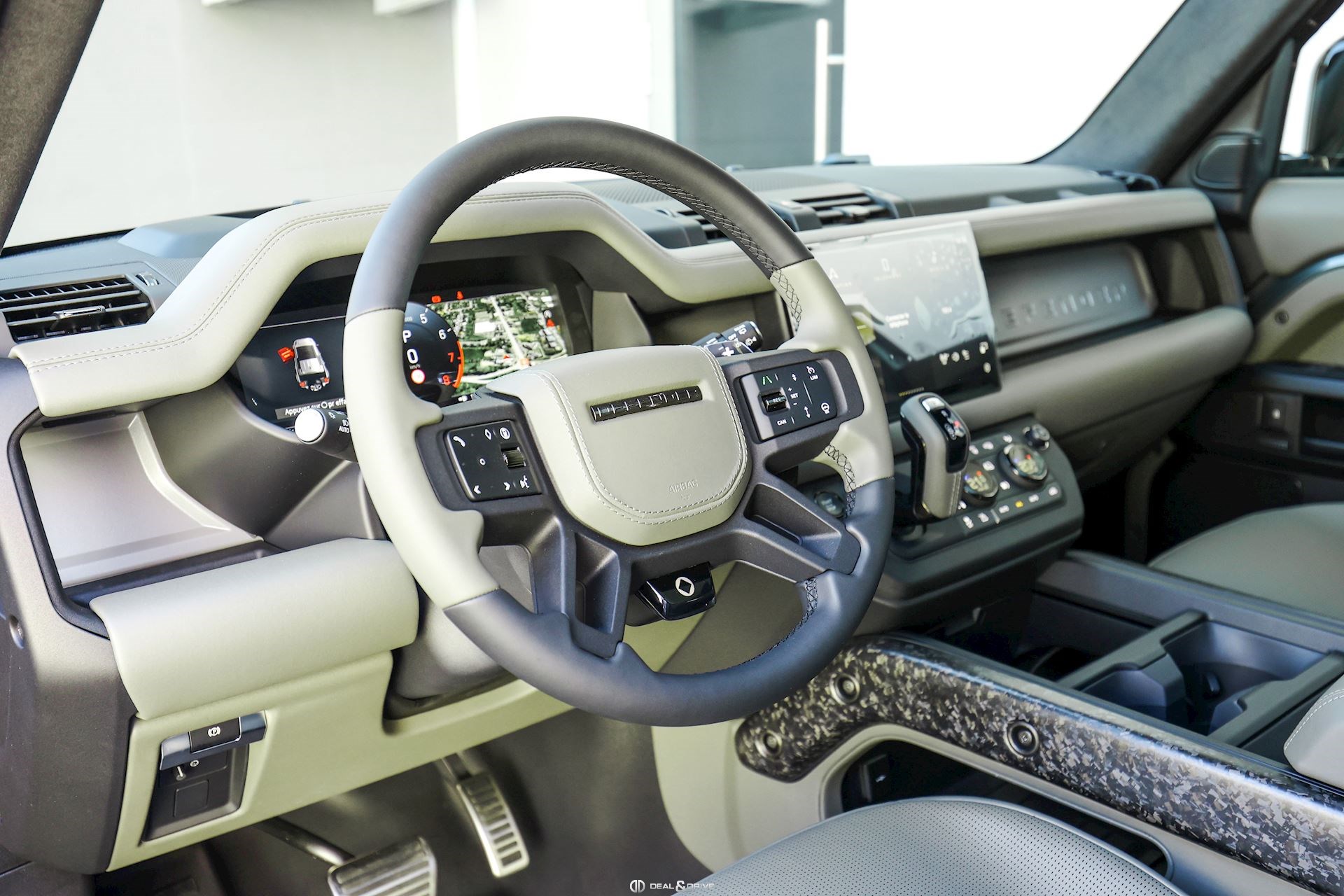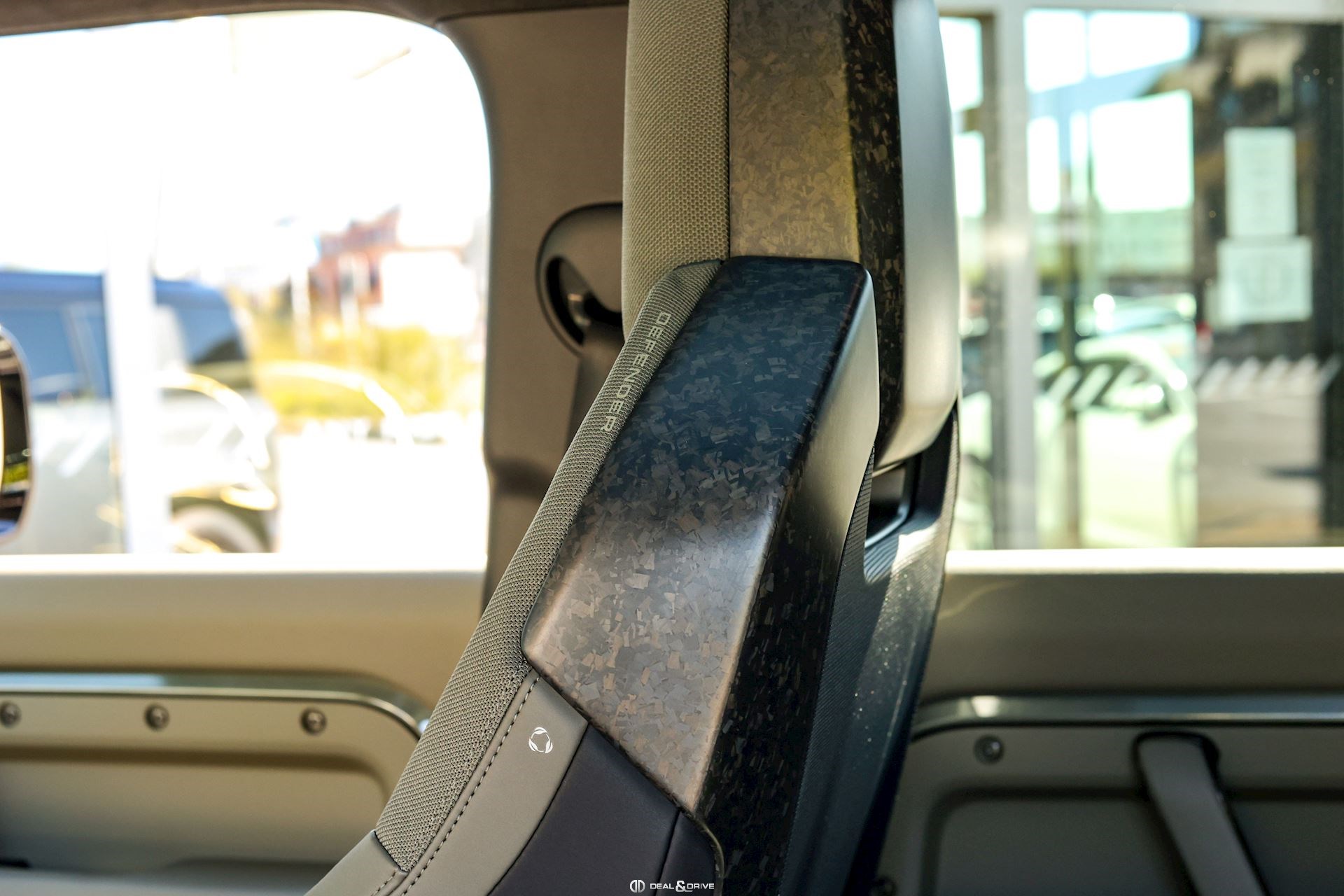 INTÉRIEUR Inserts en Fibre de Carbone fragmentée Dossier de siège en fibre de Carbone fragmentée Finition de console centrale en fibre de carbone fragmentée Traverse en finition metallisée Grey Powder Habitacle finition signature Plafonnier en Suédine en couleur Ebony Console centrale réfrigérée Sièges incluant le système audio Body and Soul Sièges avant électriques réglables en 14 voies Sièges avant avec fonction mémoire Sièges avant chauffants Sièges avant ventilés Appuie-lombaires électriques Sièges arrière chauffants rabattables en configuration 40/20/40 avec accoudoir central Volant Performance Volant chauffant Volant réglable électriquement Sélecteur de vitesse en tissu Resist Signature graphique avec rangement intérieur Pédalier en métal brillant Plaques de seuils avant illuminées en métal avec inscription 'DEFENDER' Palettes de changement de rapports au volant, éclairées Tapis de sol signature Climatisation automatique 3 zones Capteur de qualité de l’air Système de purification de l’air de l’habitacle avec filtre PM2.5 - Niveau 2 Isofix sur siège passager Couvre bagage