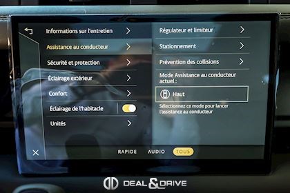 CONFORT, SYSTÈME D'ASSISTANCE Accès et démarrage sans clef Aide au freinage d'urgence Hayon de coffre avec fermeture soft-close Affichage tête haute Aides au stationnement avant et arrière Caméra 360° 3D Rétroviseur intérieur avec fonction ClearSight Alerte de collision Système d’ouverture des portes de garage à distance Home-Link Régulateur de vitesse adaptatif ACC Limiteur de vitesse Régulateur de vitesse intelligent avec lecture des panneaux de signalisation Système d’alarme antivol Système de contrôle de la pression des pneus TPMS Aide au démarrage en côte Détecteurs d’angles morts dans les rétroviseurs extérieurs Assistant de maintien dans la file Surveillance du trafic en marche arrière Contrôle de la vigilance du conducteur Système d’appel d’urgence SOS