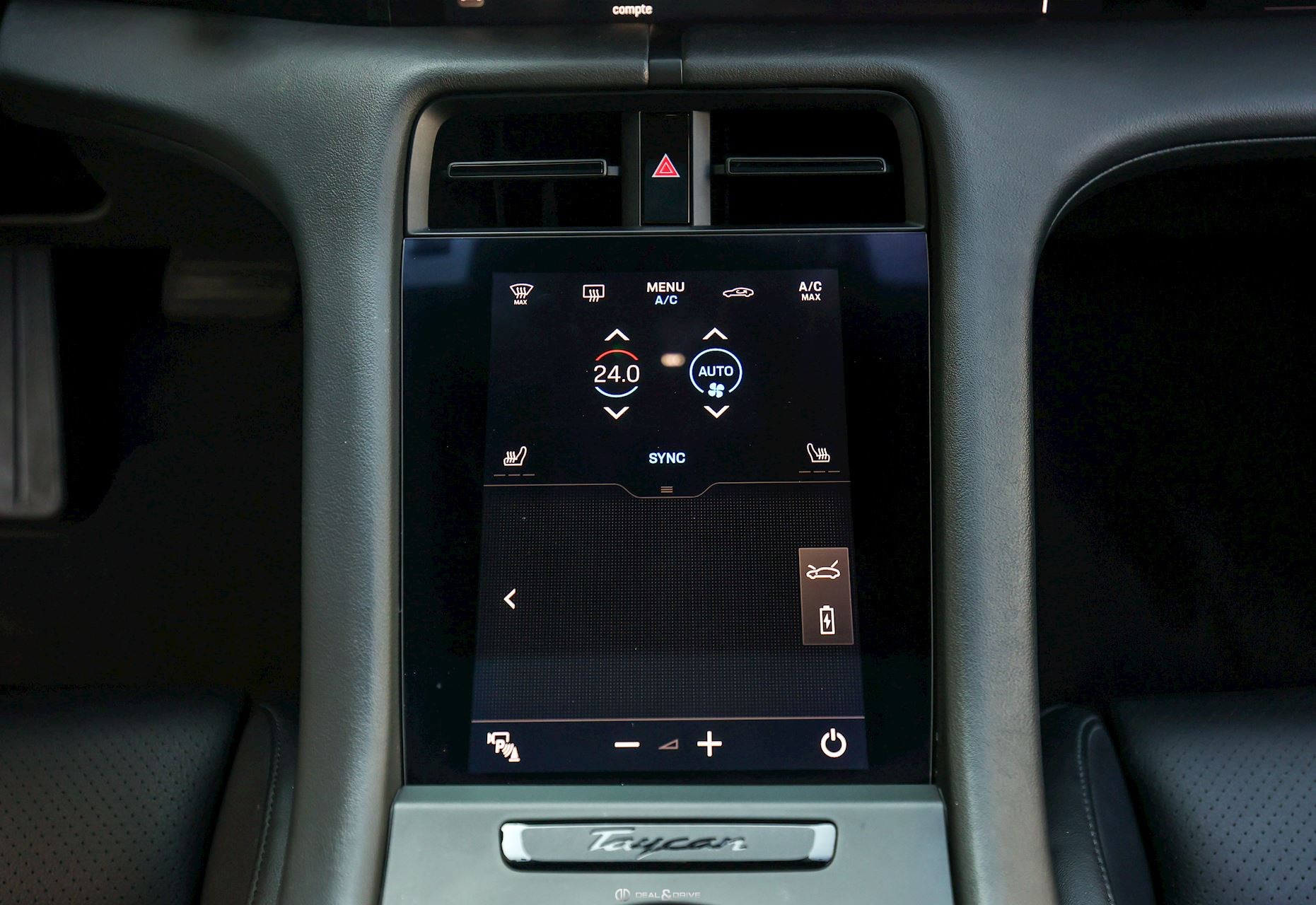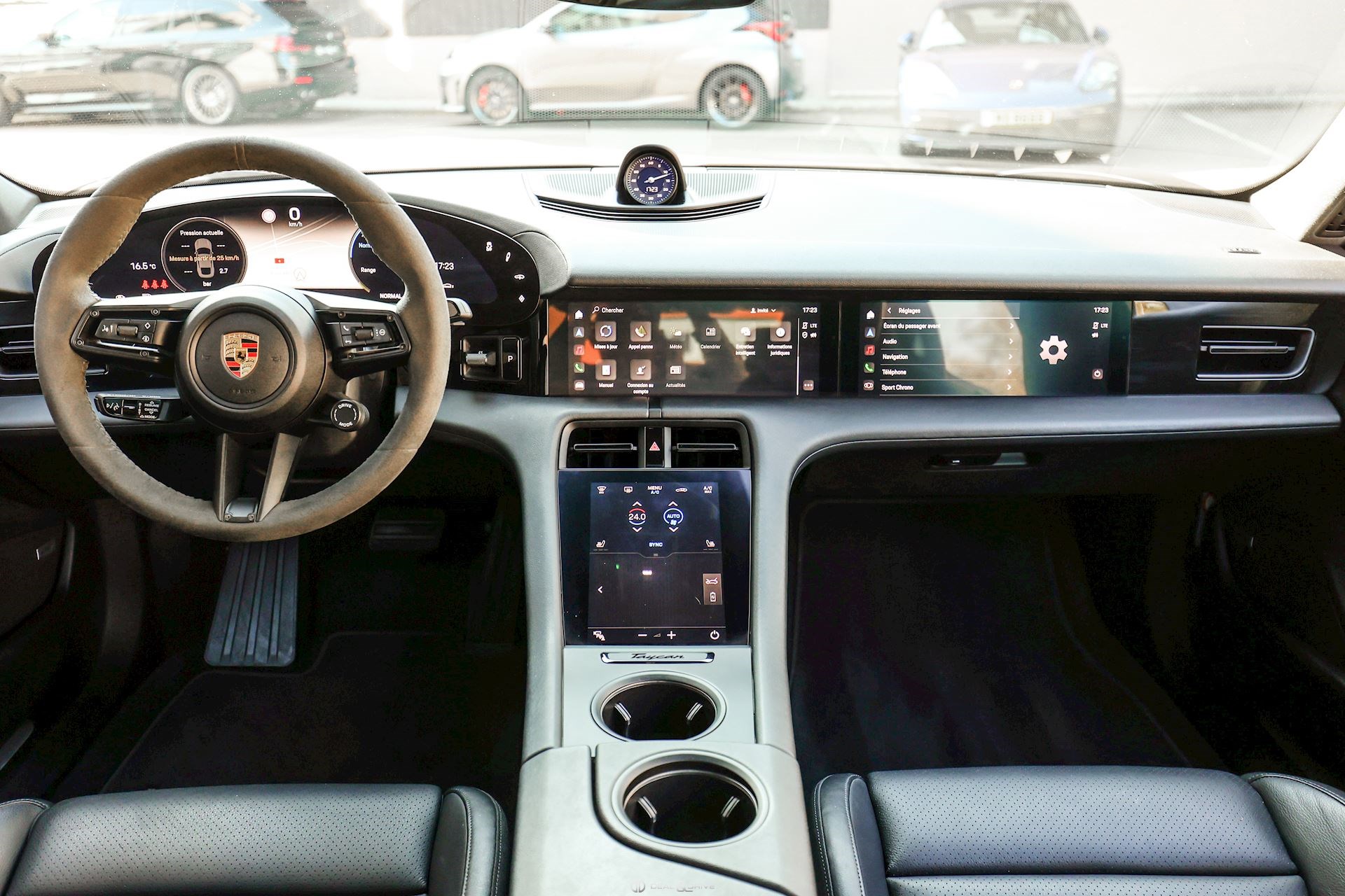 INTÉRIEUR Sièges avant Confort réglables en 14 voies Sièges avant à mémoire Sièges avant chauffants Appuie-lombaires électriques Sièges 4 + 1 Volant en Race-Tex, multifonctions Volant chauffant Volant réglable électriquement Emblème Porsche embossé sur les appuie-têtes Climatisation automatique 4 zones climatisation auxiliaire Plafonnier Noir Seuils de porte en Aluminium avec inscription « TAYCAN 4S » Tapis de sol