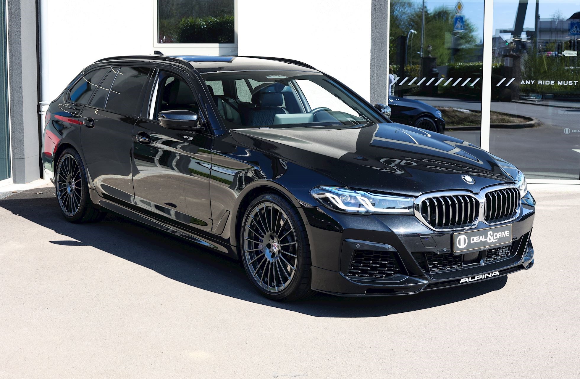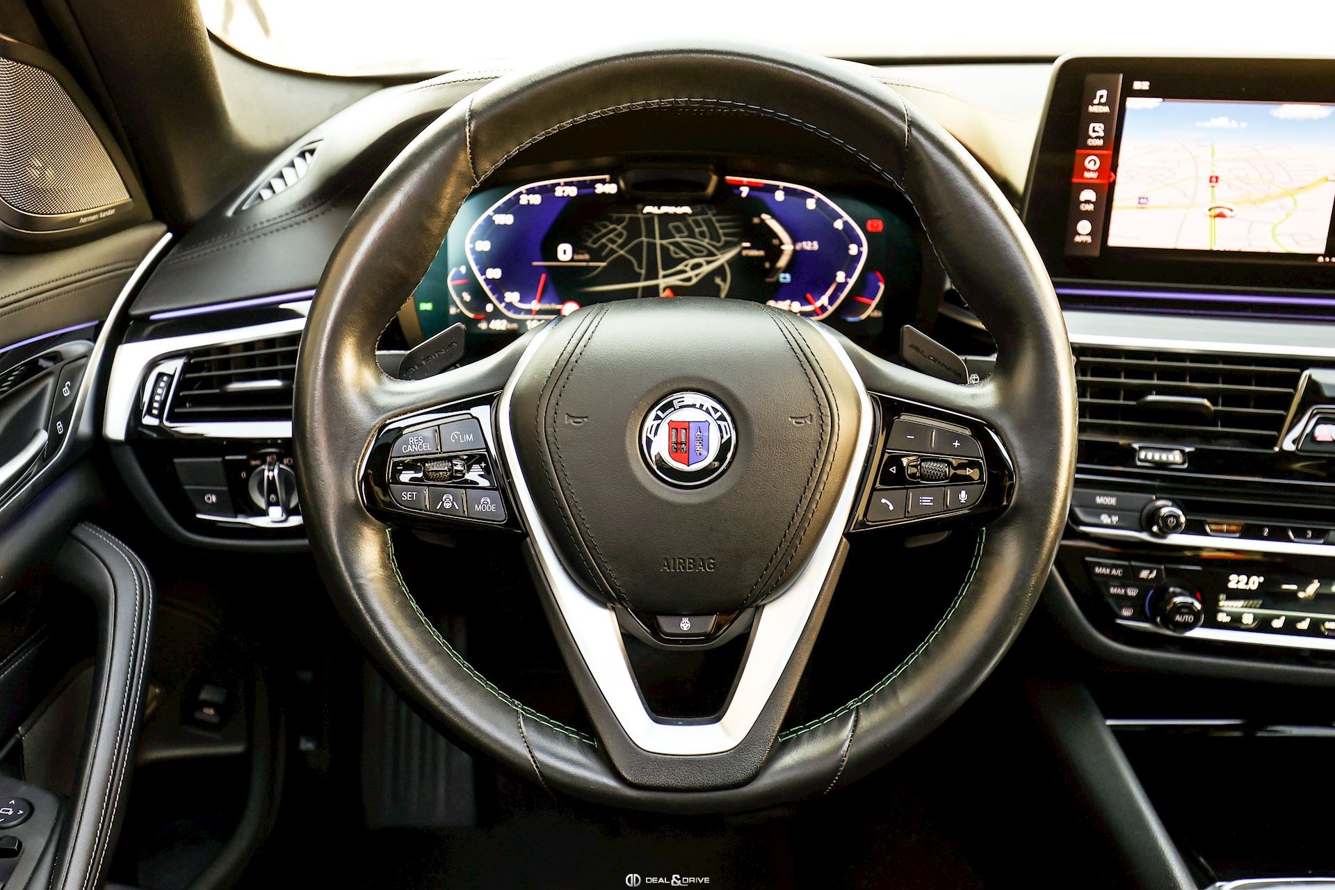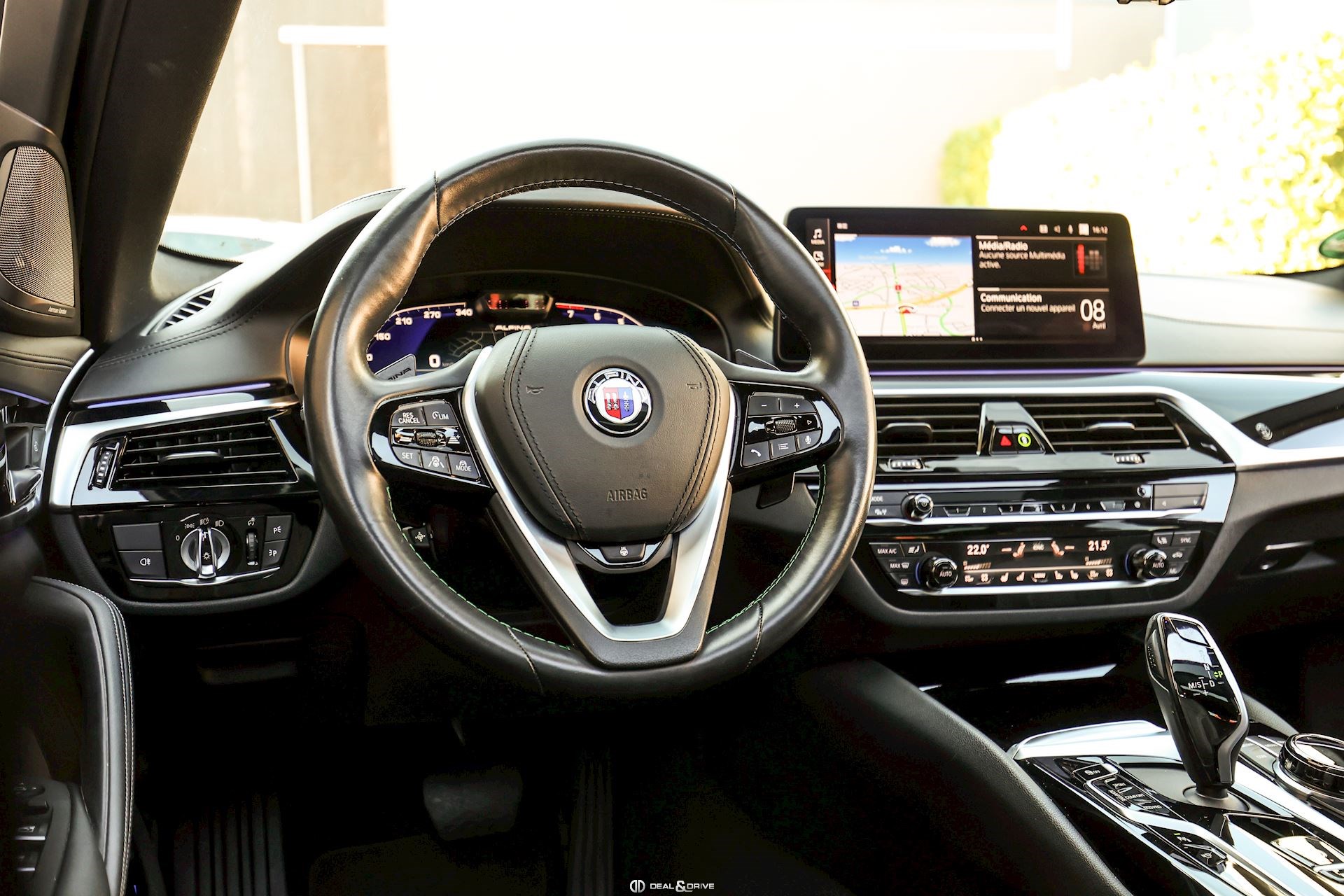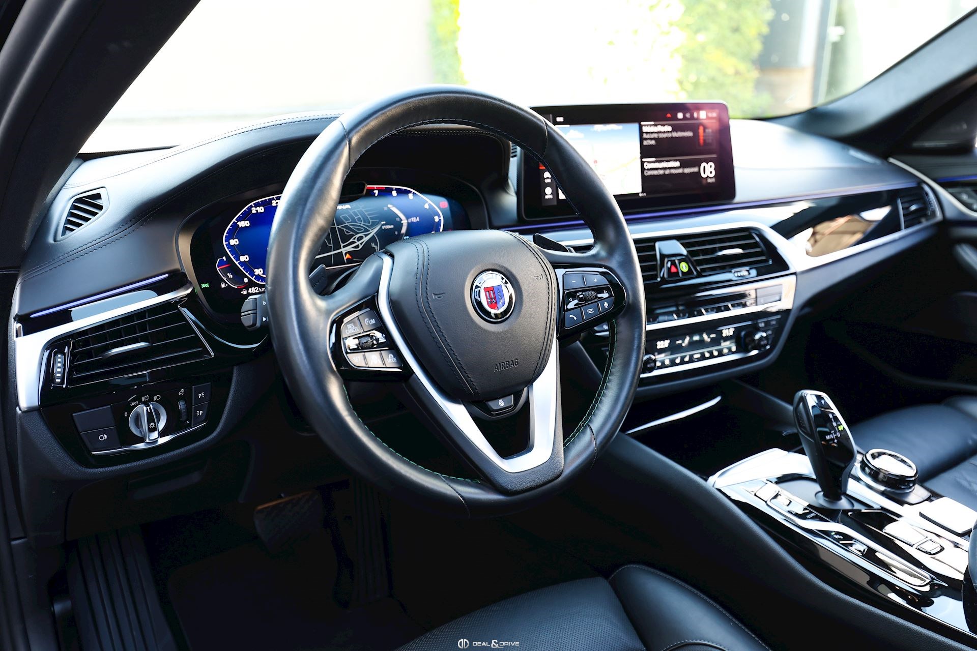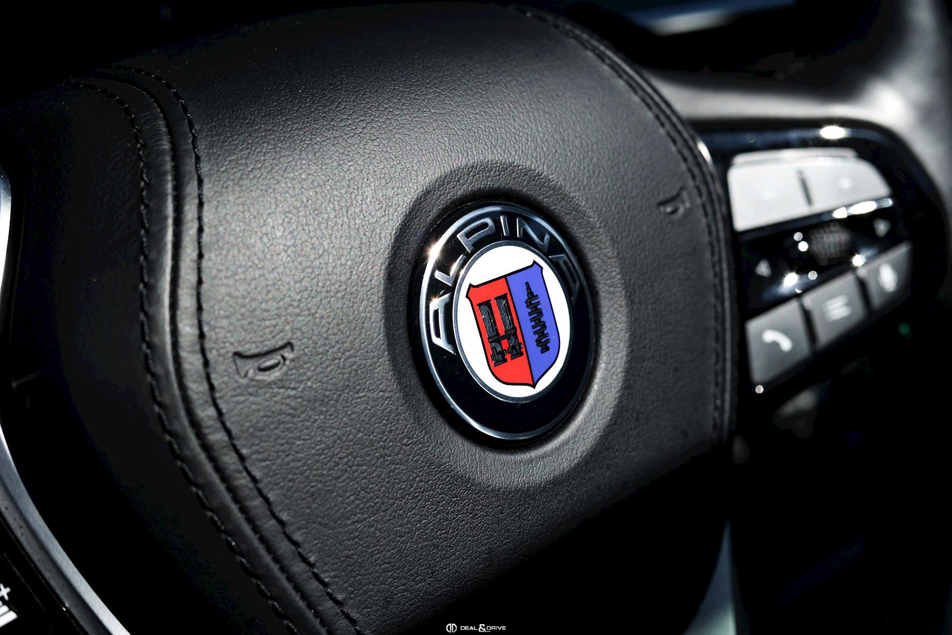 Préparation ALPINA Cache moteur ALPINA Jantes alliage léger 20’’ 618 RS peintes en Gris Manhattan Étriers de frein en Bleu ALPINA Caches moyeux ALPINA Tapis de sol ALPINA Sellerie avec logo ALPINA Volant Sport, ALPINA, en cuir, multifonctions avec surpiqûres en Vert et en Bleu Palette de changement de vitesse Plaquette personnalisée sur la console centrale Seuils de porte en Aluminium ALPINA, éclairés Sorties d’échappement doubles ALPINA Emblème embossé sur les appuie-têtes