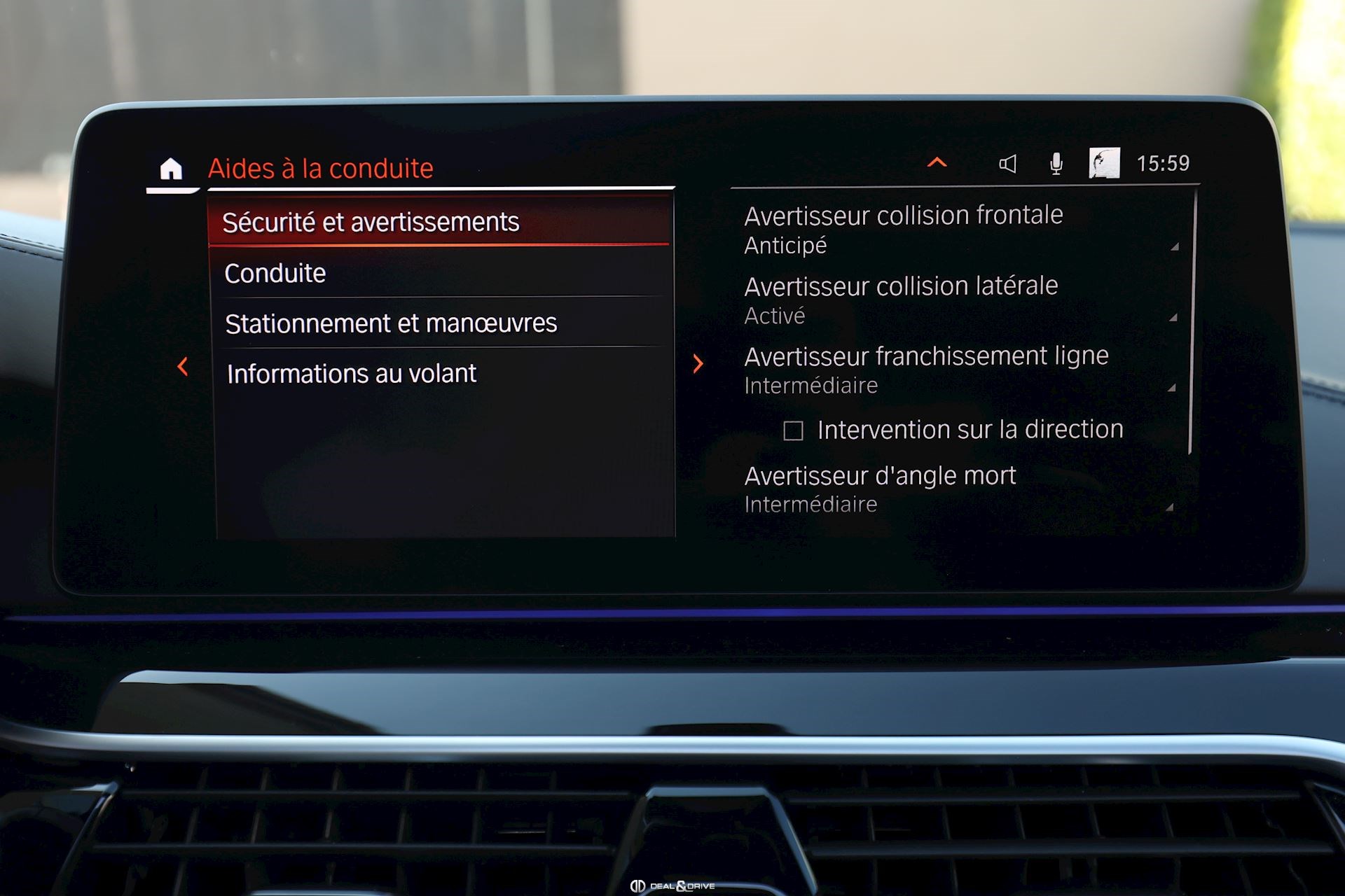 Pack innovations Feux BMW LED Laser Feux de croisement automatiques Feux de route automatiques Affichage tête haute Accès Confort : accès et démarrage sans clef Driving Assistant Système de reconnaissance des panneaux de signalisation Alerte de collision avant Alerte de franchissement de ligne
