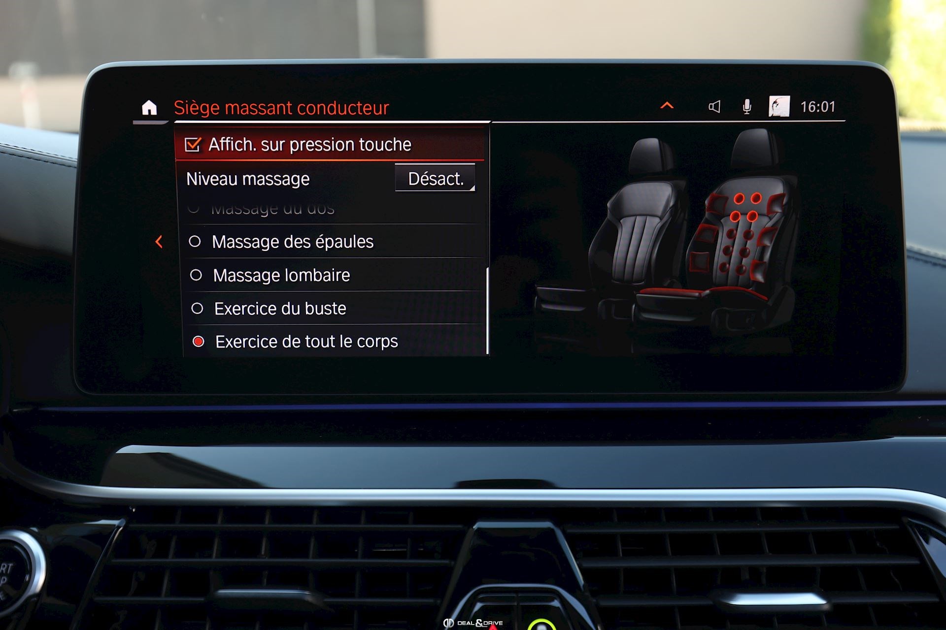 INTÉRIEUR Sièges avant électriques Sièges avant à mémoire Sièges avant chauffants Sièges avant ventilés Sièges avant avec fonction massage Appuie-lombaires électriques Sièges arrière chauffants Climatisation automatique 4 zones Inserts céramique pour éléments de commandes Plafonnier Noir BMW Individual Planche de bord avec revêtement en cuir Volant réglable électriquement