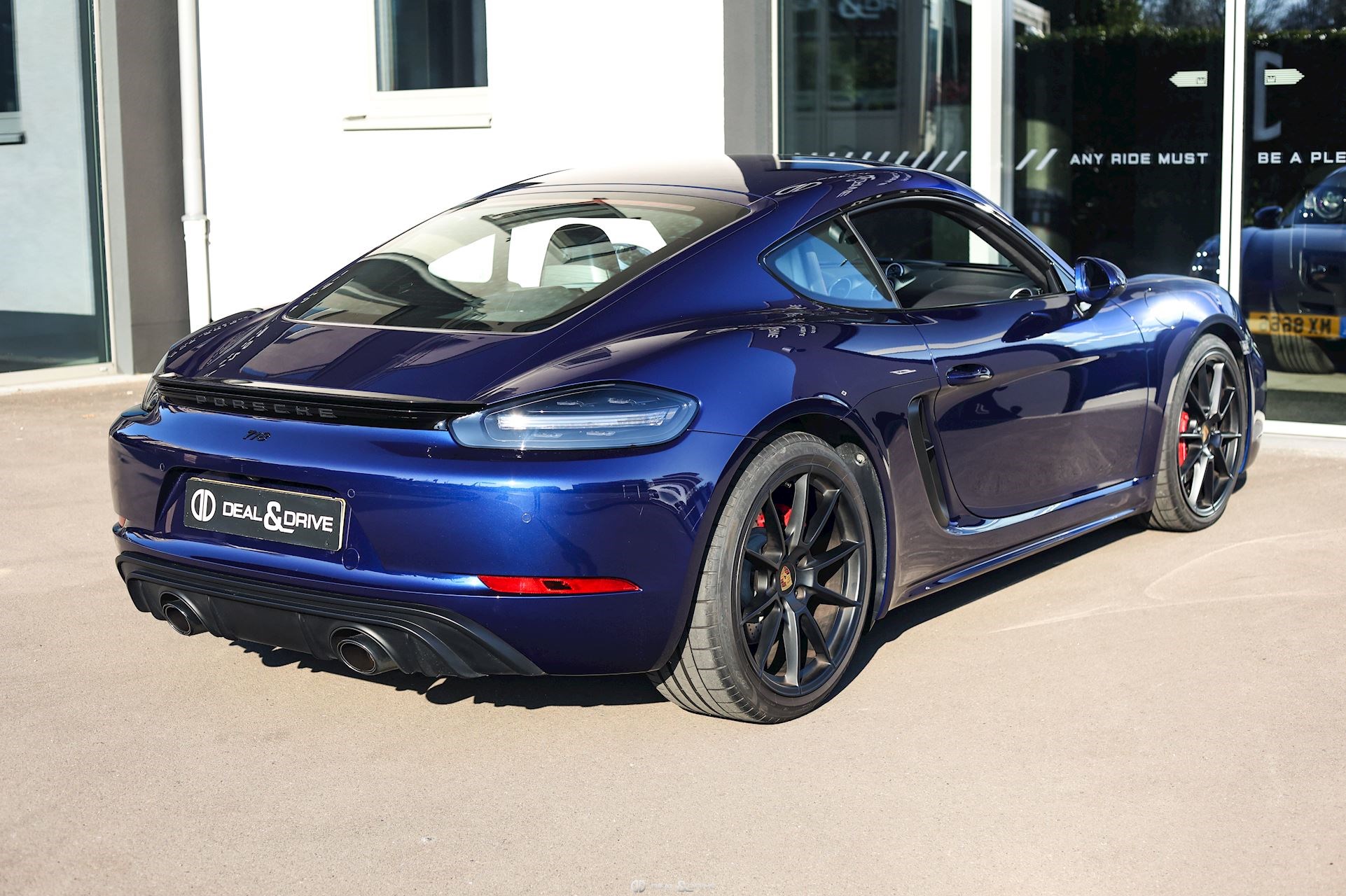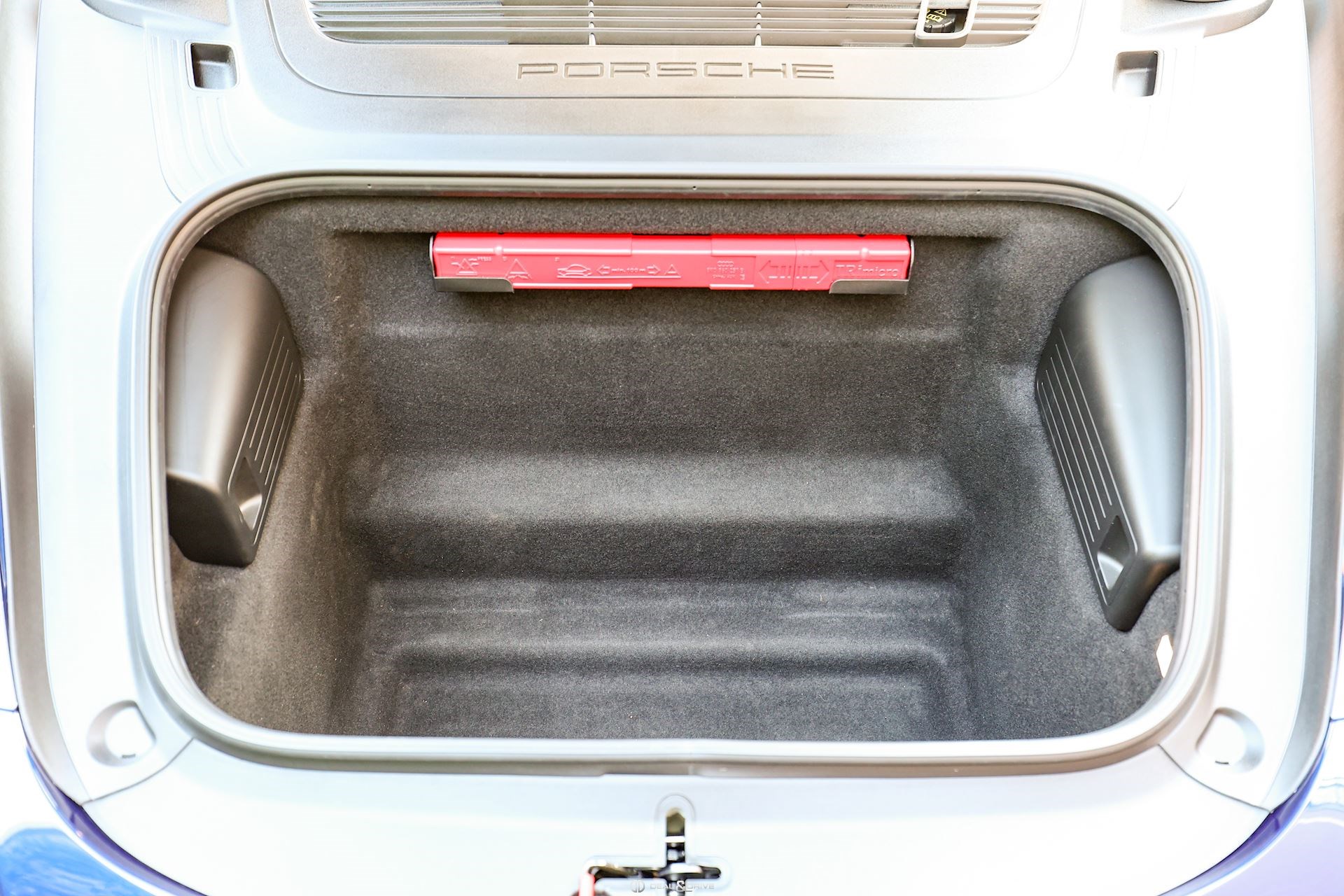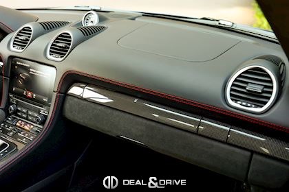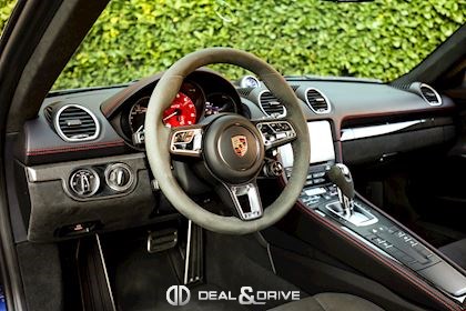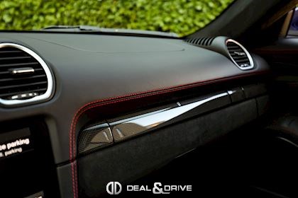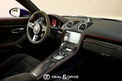 EXTÉRIEUR Becquet arrière en Noir Encadrement des vitres latérales en Noir Cache des lave-phares en Noir Jantes alliage léger 20’’ 718 Sport en Noir Satin Étriers de frein en Rouge Bouchons de valve avec logo Porsche Caches moyeux Porsche en couleur Inscription Porsche à l’arrière en Noir Inscription « 718 » en Noir brillant Rétroviseurs extérieurs électriques Rétroviseurs extérieurs rabattables électriquement Pare-brise avec bandeau supérieur teinté-dégradé Désignation du modèle sur les portes en Noir