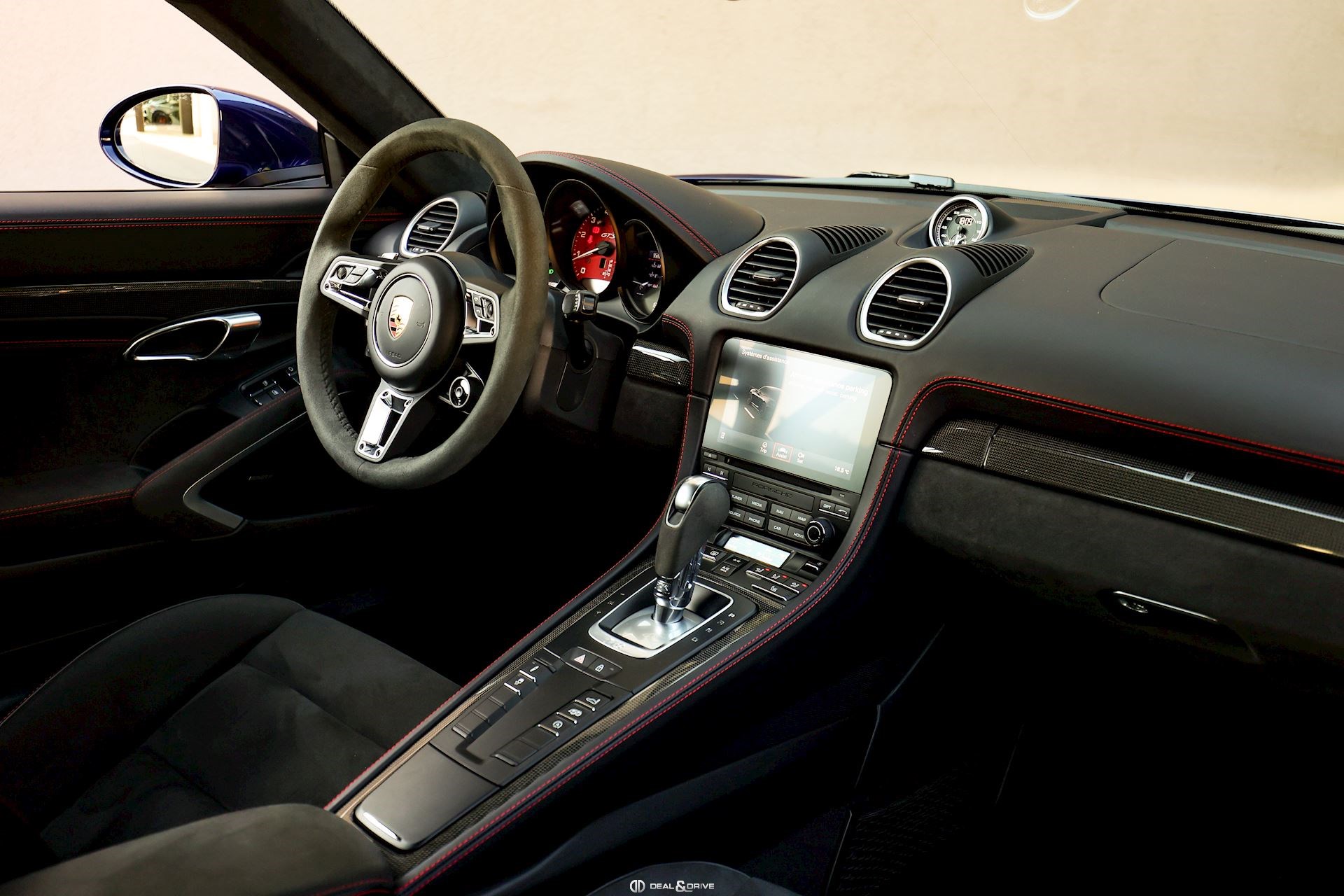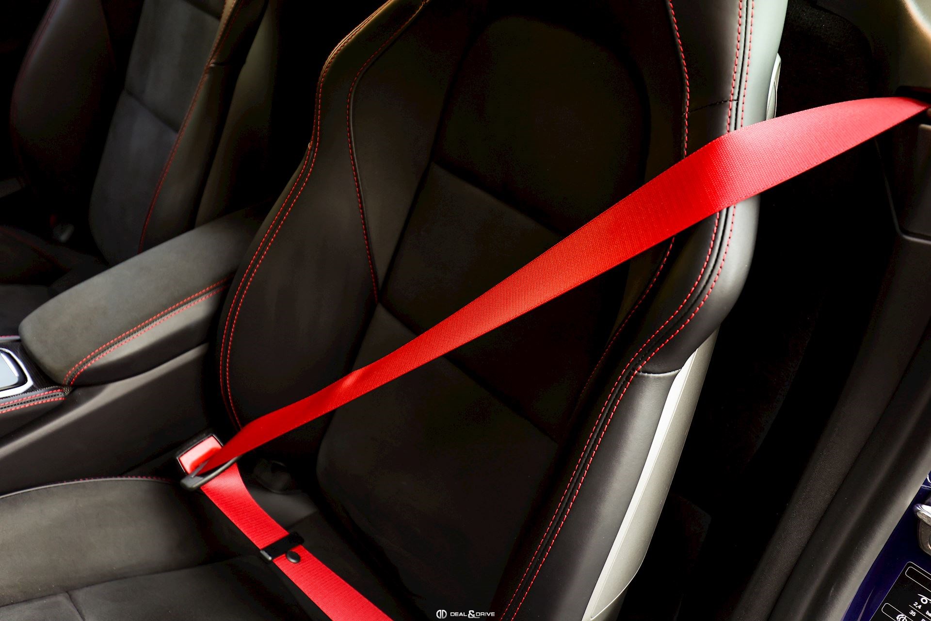 Couleur extérieure : Bleu Gentiane métallisé Intérieur : Sellerie en cuir et Alcantara Noir avec surpiqûres en Rouge