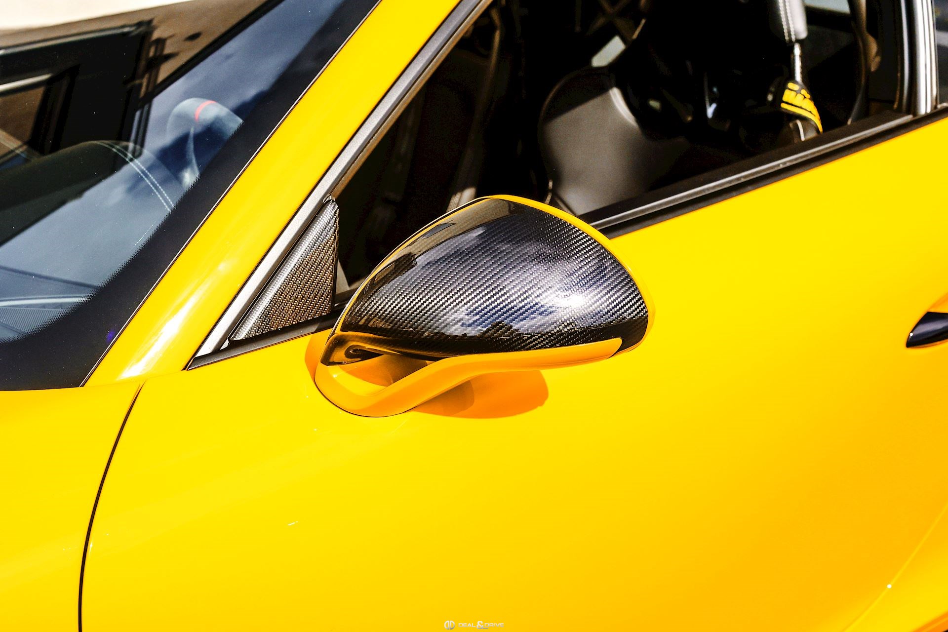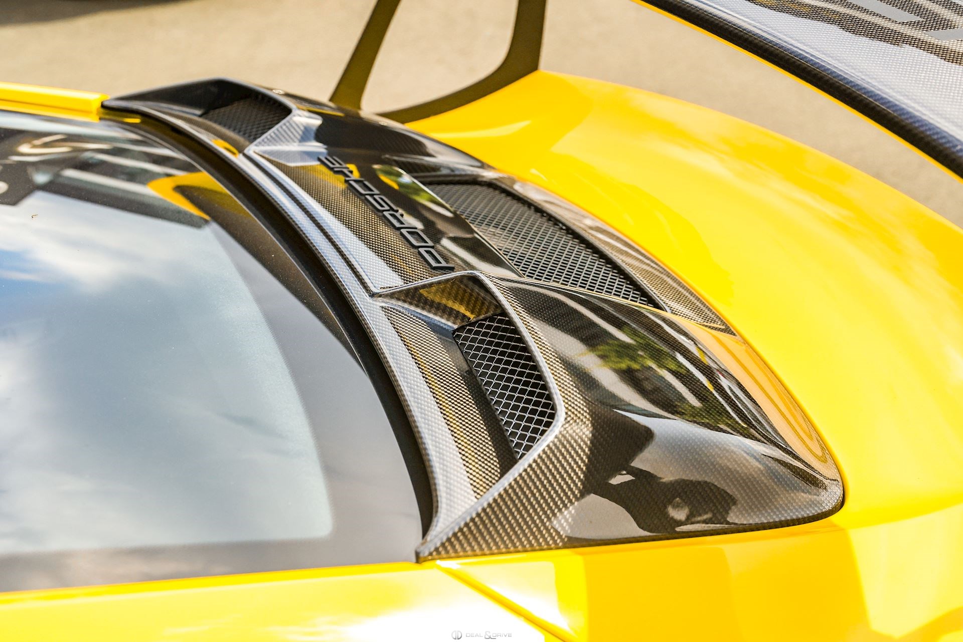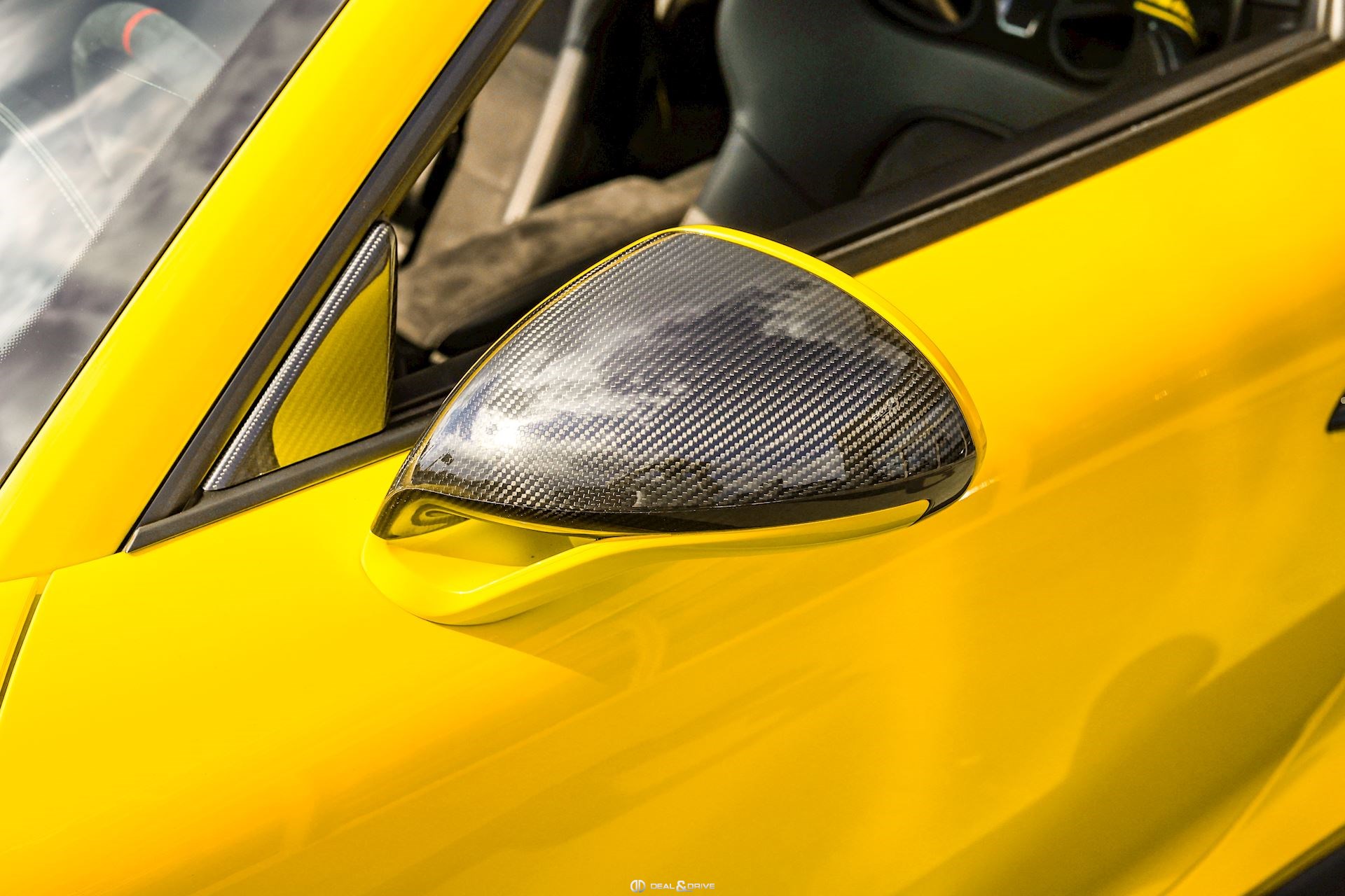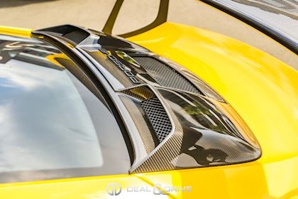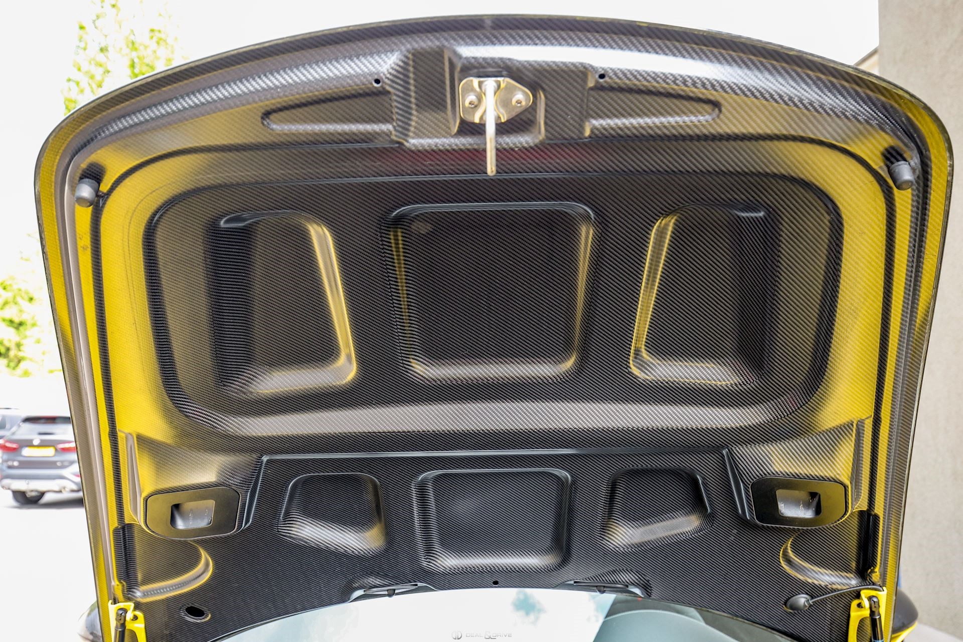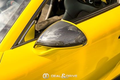 - Capot, toit, rétroviseurs, ailerons et prises d’air latérales en carbone apparent