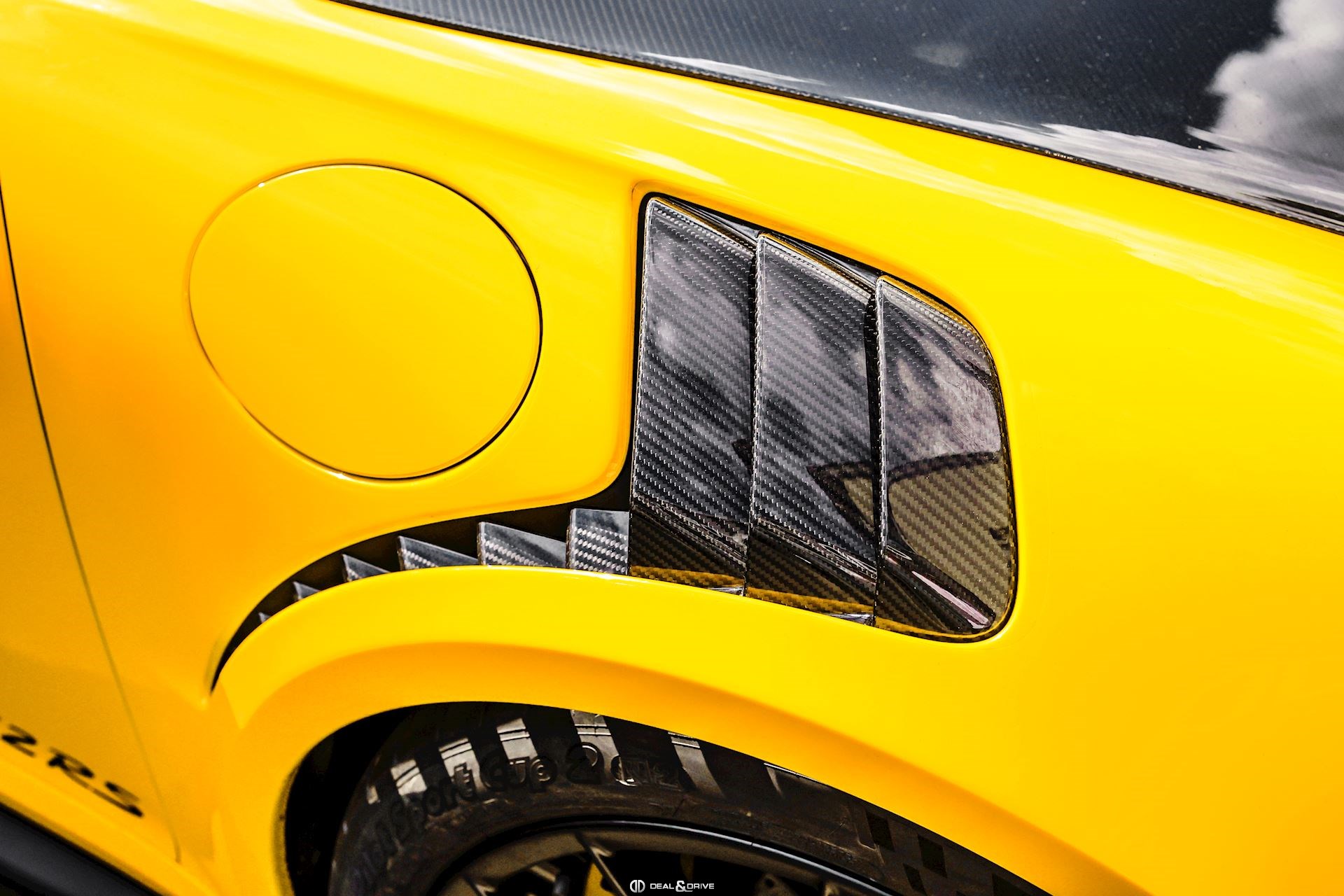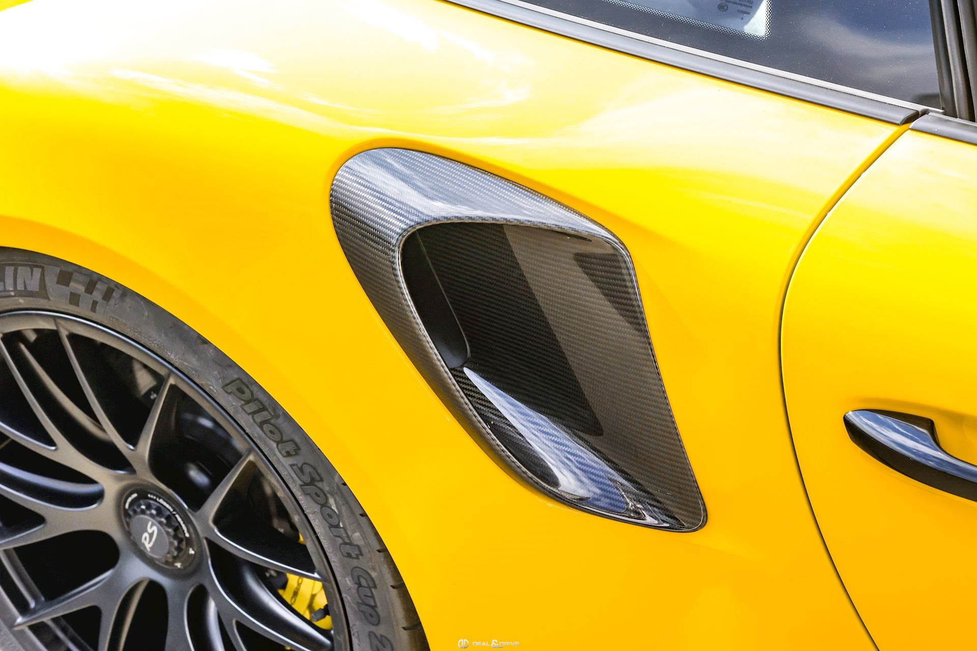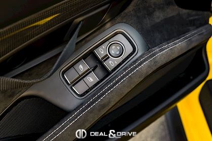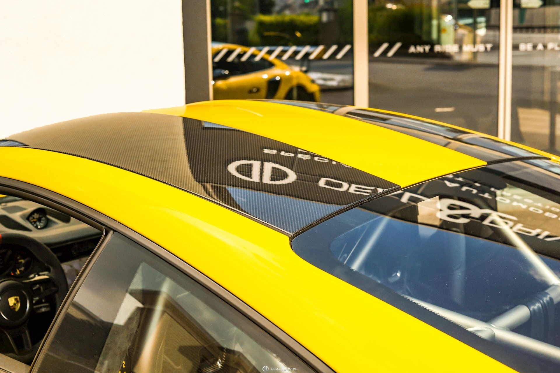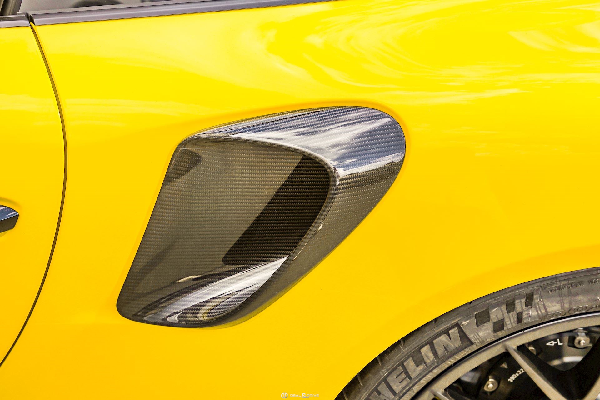 - Capot, toit, rétroviseurs, ailerons et prises d’air latérales en carbone apparent