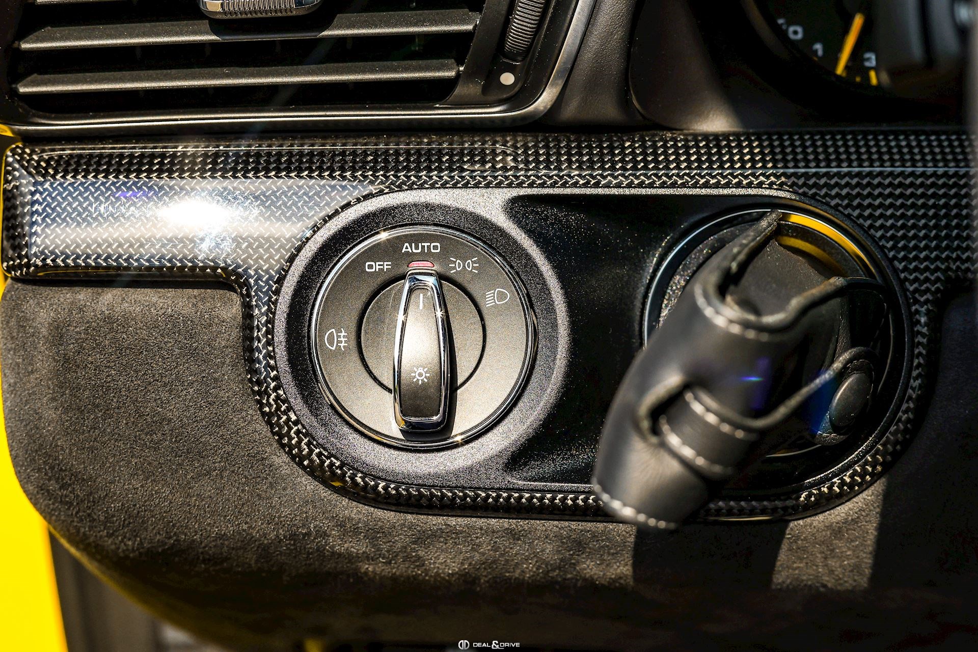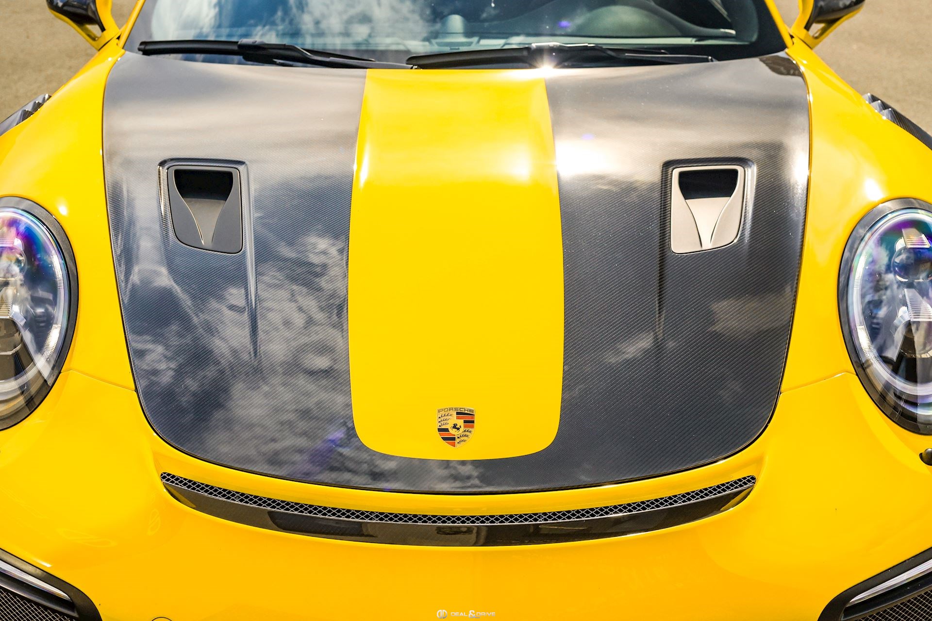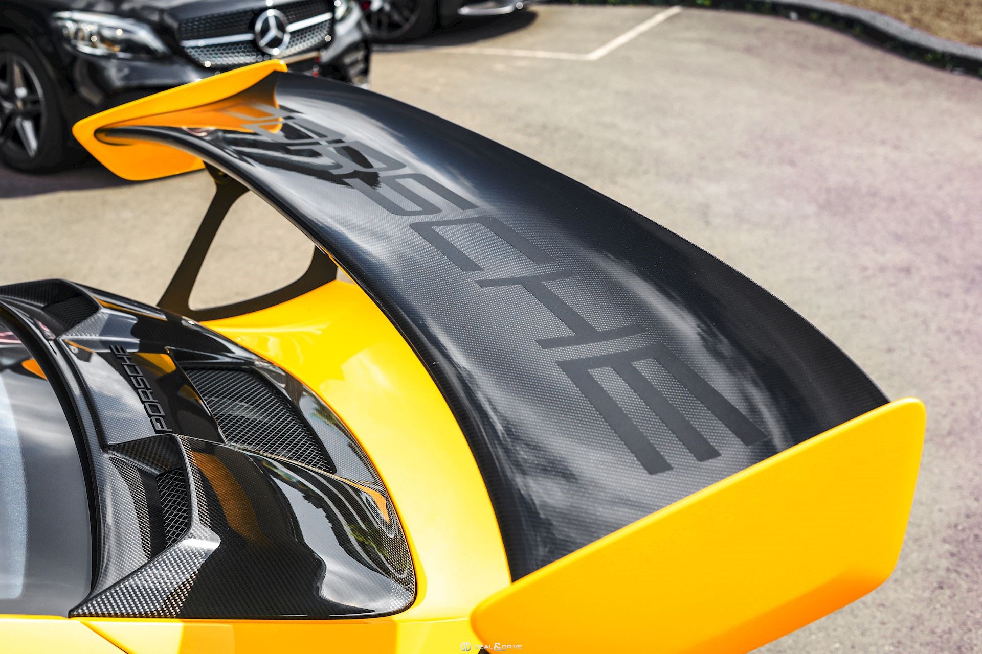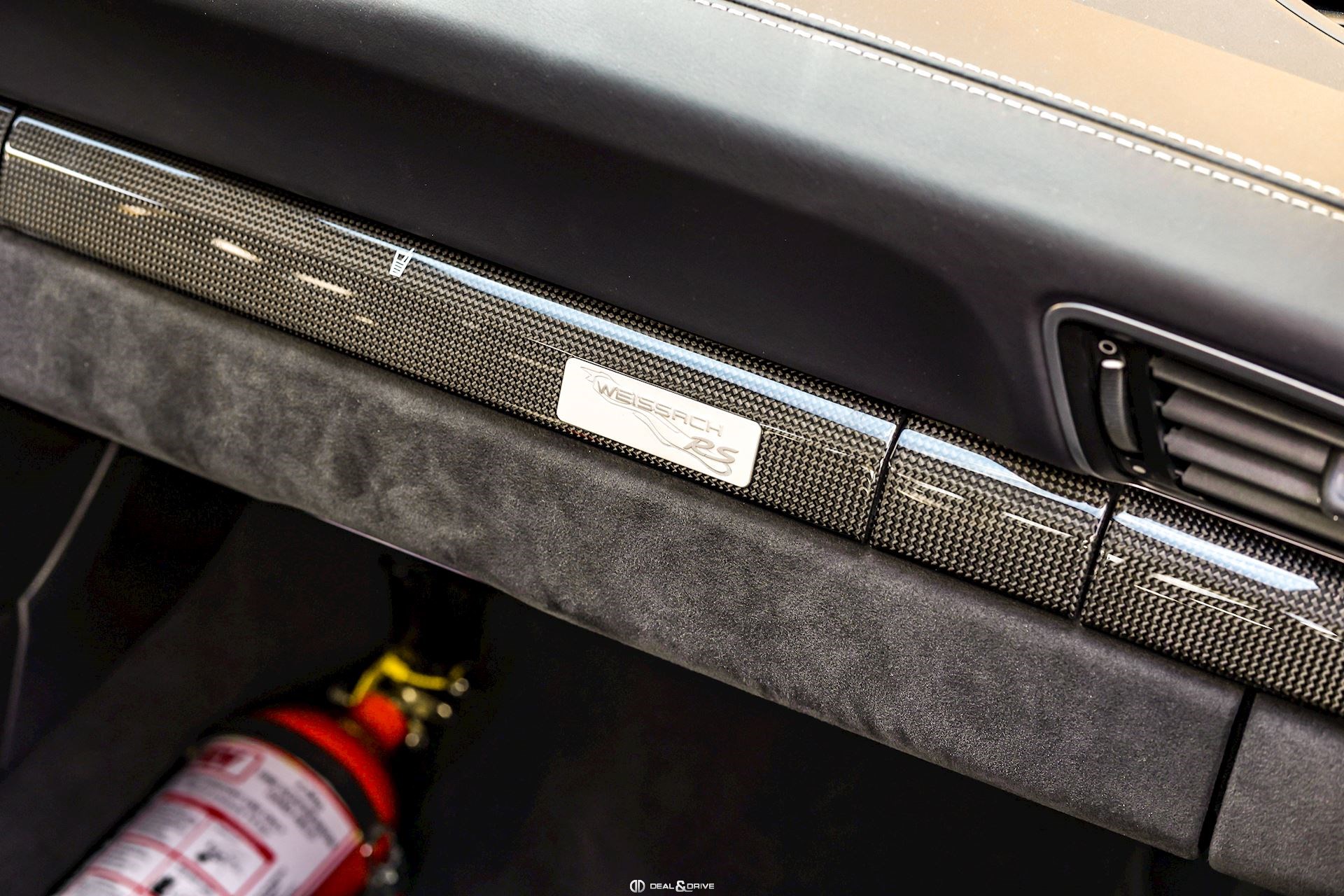 - Capot, toit, rétroviseurs, ailerons et prises d’air latérales en carbone apparent
