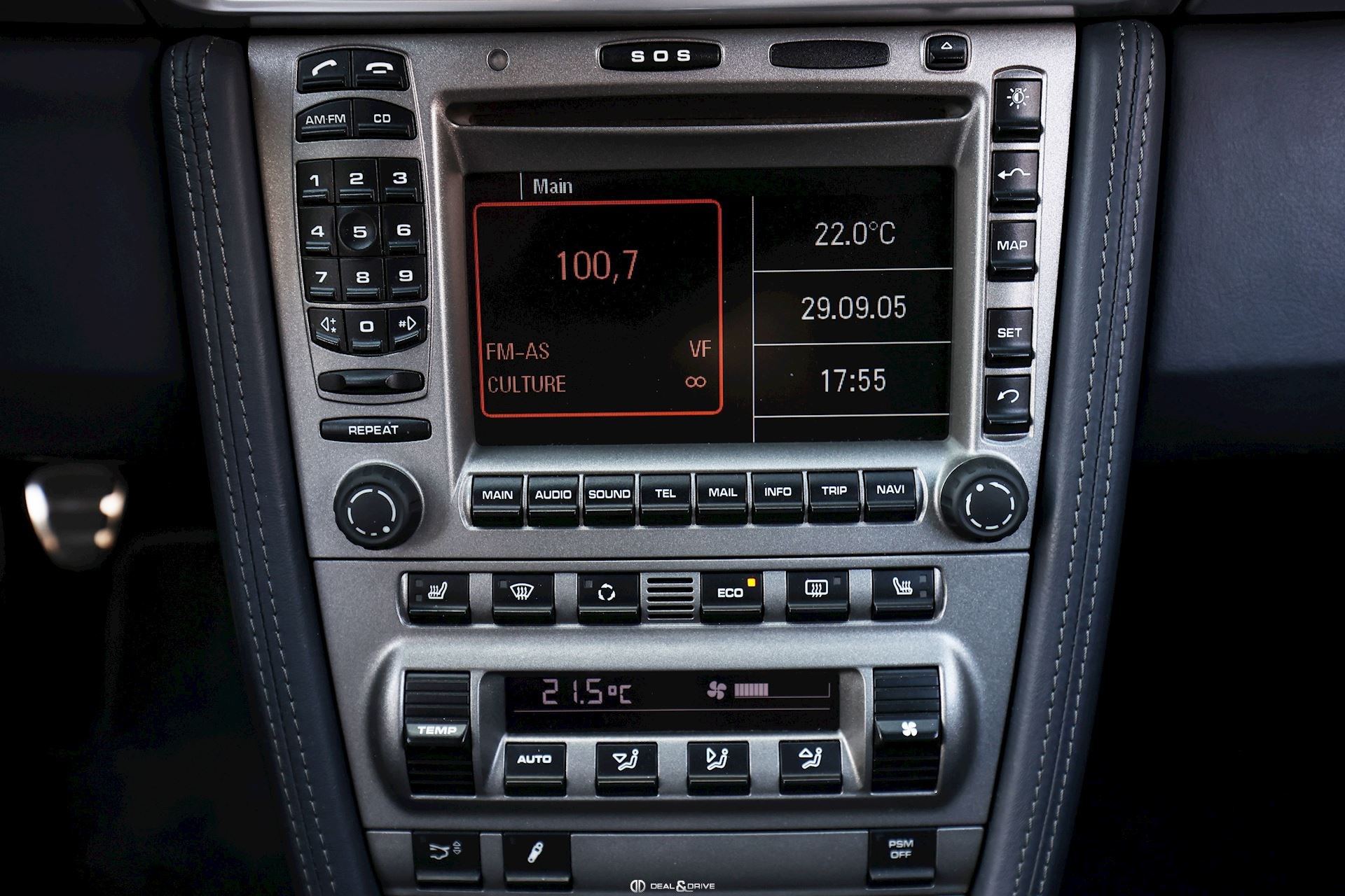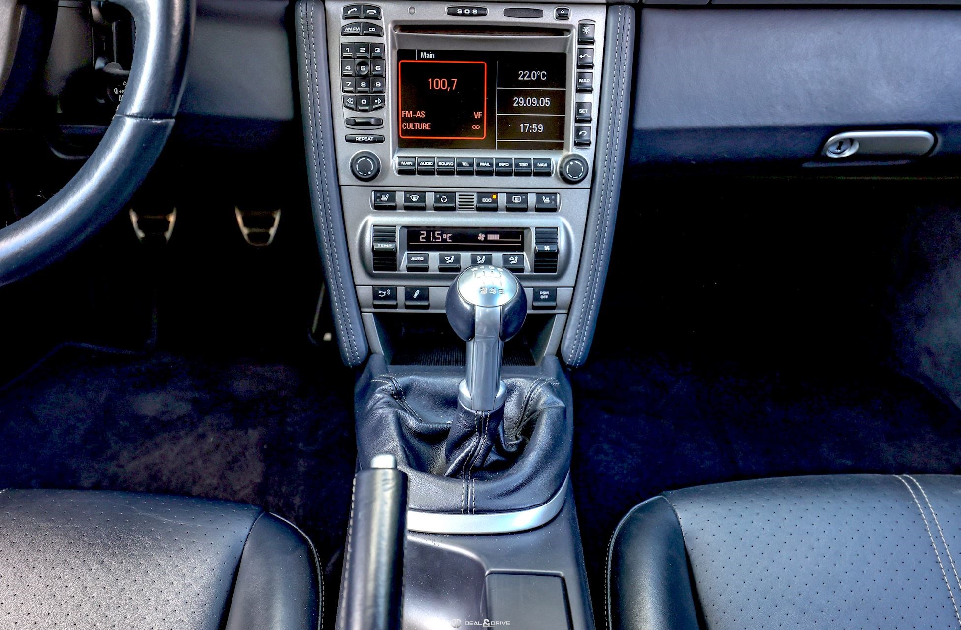 •Aide au stationnement arrière •Appuie-têtes avant avec écusson Porsche •Batterie 80 Ah •Essuie-glace arrière •Levier de vitesses raccourci pour BVM (Réducteur de course) •Régulateur de vitesse •Pré-équipement Vehicle Tracking System •Sièges avant chauffants •Porsche Communications Management (PCM) comprenant DVD - Module de navigation •Volant Sport en cuir lisse, 3 branches