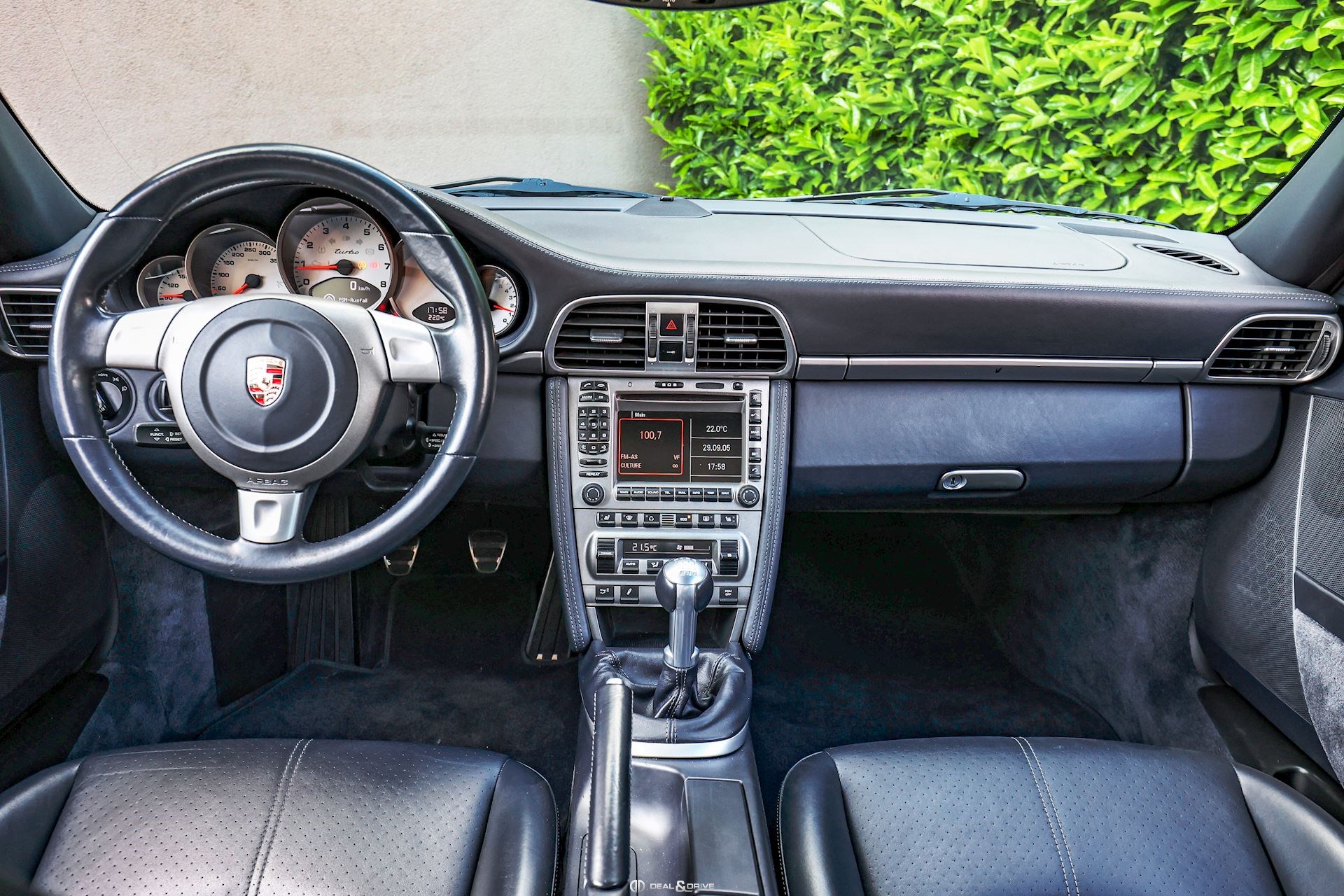 •Sièges avant électriques •Siège conducteur à mémoire •Appuie-lombaires électriques •Système audio BOSE •Fond du compteur en Blanc •Antidémarrage •Climatisation automatique •Contrôle de pression des pneumatiques •Direction assistée •Plafonnier en Alcantara •Jantes alliage léger 19” type Turbo •Étriers de frein en Rouge •Ordinateur de bord •Porsche Active Suspension Management PASM •Porsche Communications Management PCM •Porsche Stability Management PSM •Lecteur CD •Feux antibrouillards •Feux Bi-Xénon •Lave-phares •Protection volumétrique •Rétroviseurs extérieurs électriques •Rétroviseurs extérieurs et intérieur avec fonction anti-éblouissement •Capteur de pluie •Verrouillage centralisé avec télécommande