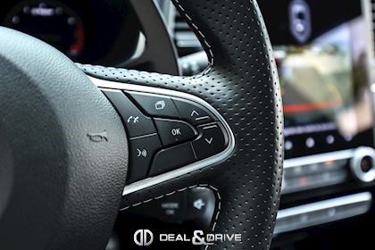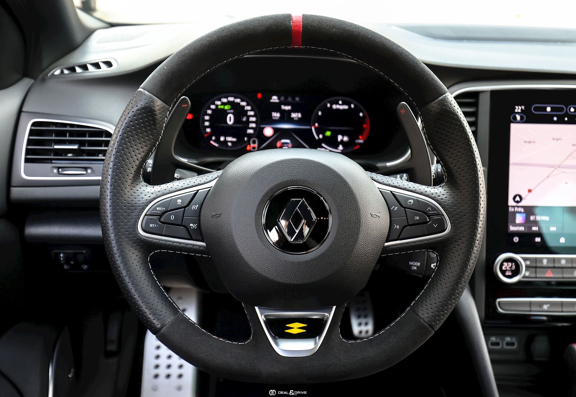 - Volant en Alcantara, multifonctions avec marqueur à midi en Rouge