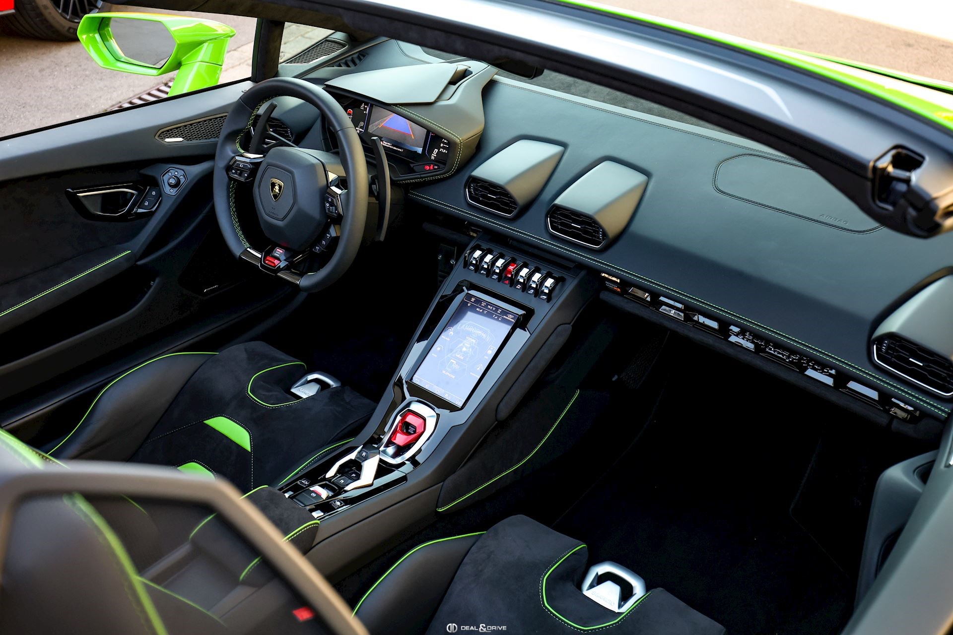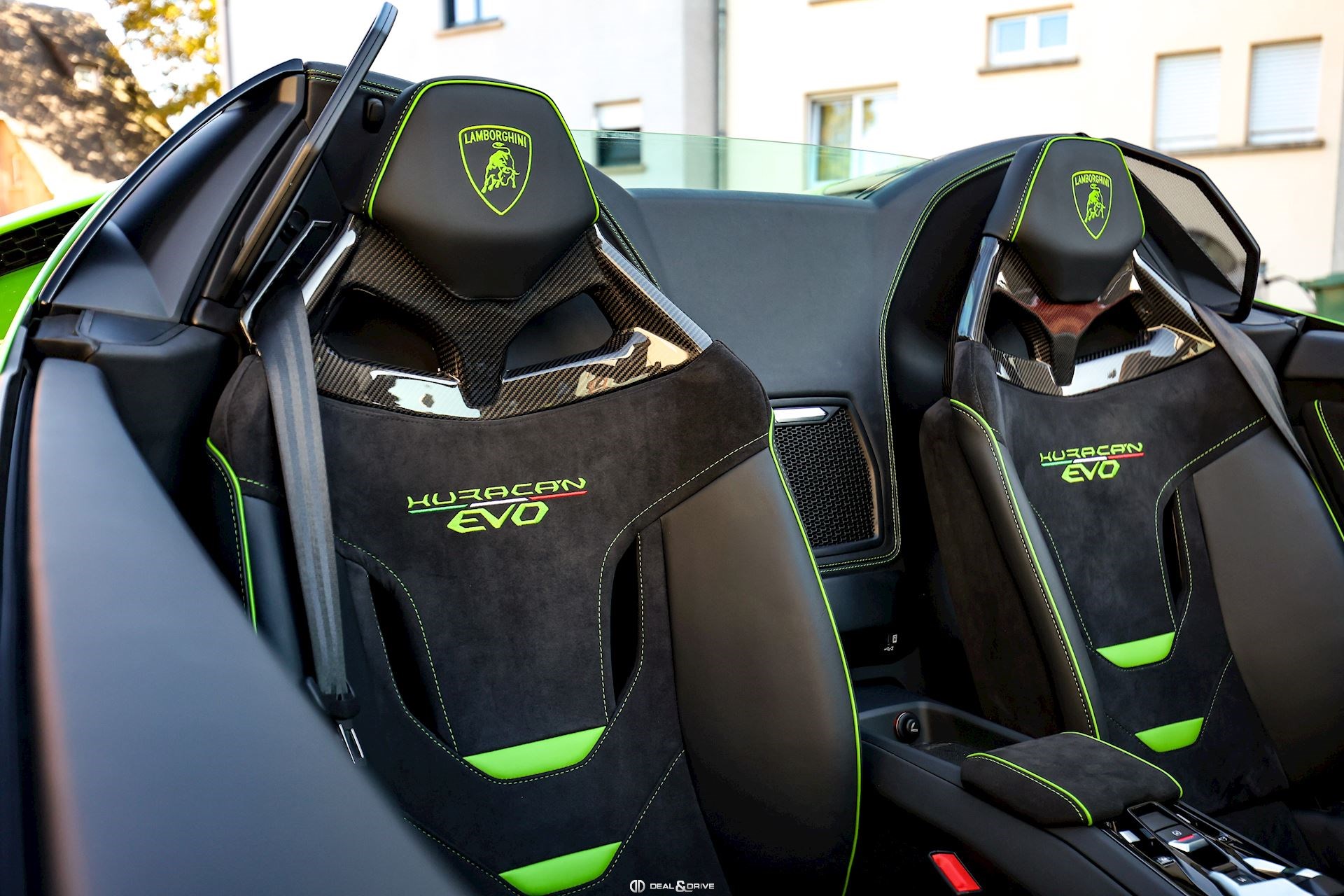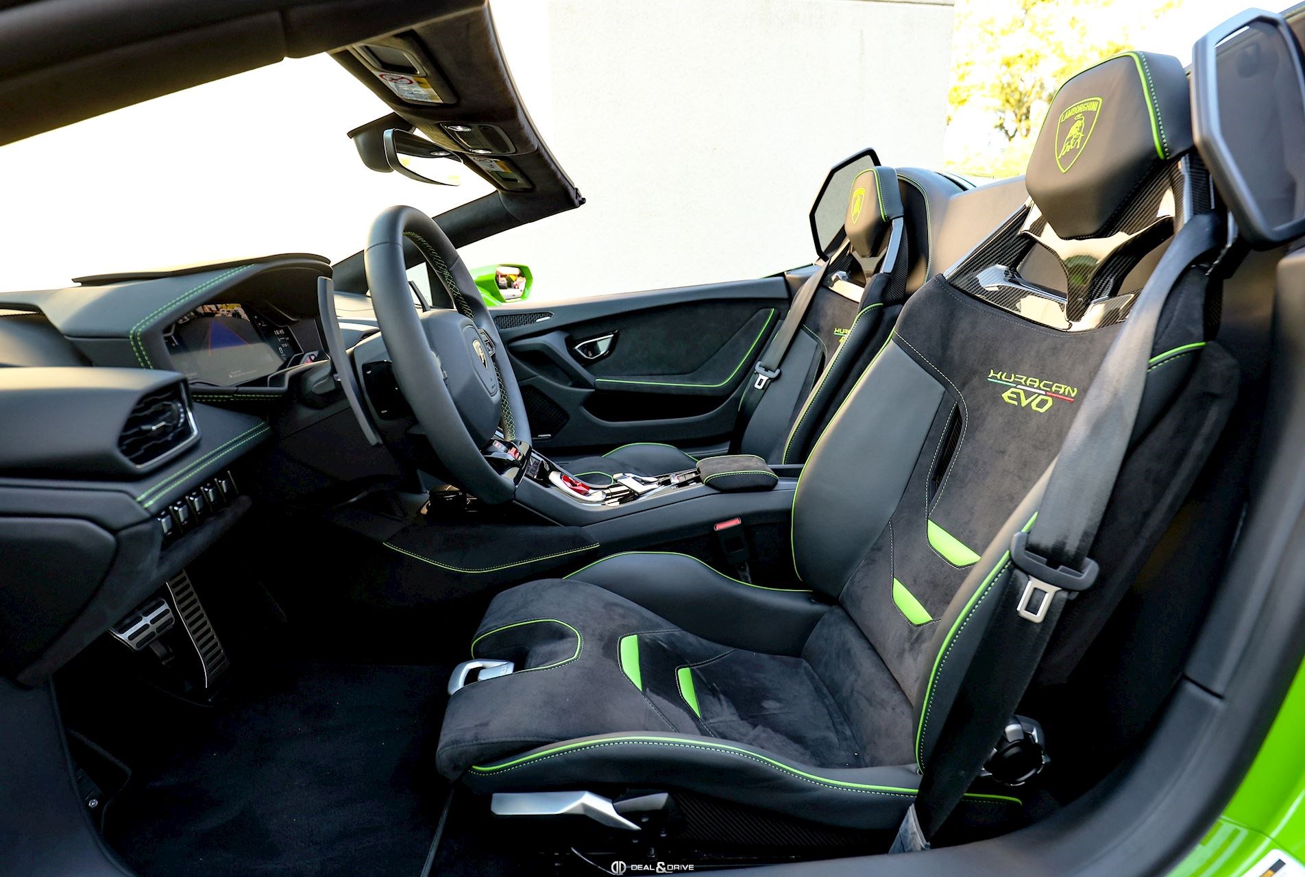 Intérieur : W0J EVO-Trim Sportivo Alcantara® Unicolor avec inserts en cuir Vert sur les sièges
