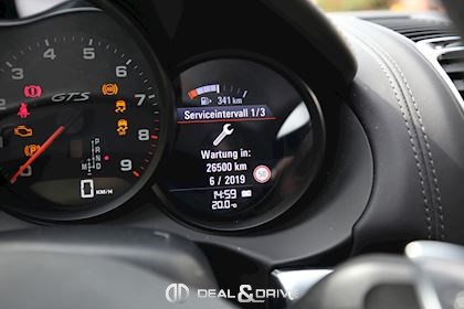 3. Bremsleuchte, Airbag Fahrer-/Beifahrerseite, Aktivkohlefilter (Geruchsfilter), Antischlupfregelung (ASR), Außenspiegel asphärisch, links, Außenspiegel elektr. verstell- und heizbar, beide, Automatisches Bremsen Differential (ABD), Bordcomputer, Bremssättel Rot lackiert, Dachhimmel Alcantara, Einschaltautomatik für Fahrlicht, Heckleuchten abgedunkelt, Innenausstattung: Alcantara, Karosserie: 2-türig, Kopf-Airbag-System Porsche Side Impact Protection System (POSIP), Lenkrad (Sport / Alcantara, 3-Speichen), Lenksäule (Lenkrad) verstellbar, Modellbezeichnung auf den Türen, Motor 3,4 Ltr. - 250 kW KAT, Motor-Schleppmoment-Regulator (MSR), Parkbremse elektrisch, Reifen-Reparaturkit, Reifendruck-Kontrollsystem, Schadstoffarm nach Abgasnorm Euro 6, Schalt-/Wählhebelgriff Alcantara, Seitenairbag vorn, Sitzbezug / Polsterung: Leder / Alcantara, Sport-Auspuffanlage, Sport-Chrono-Paket, Sportsitze Plus (elektr. verstellbar, 2-Wege), Start/Stop-Anlage, Universal-Schnittstelle Audio, Verglasung getönt, Zier-/Schutzleisten glänzend