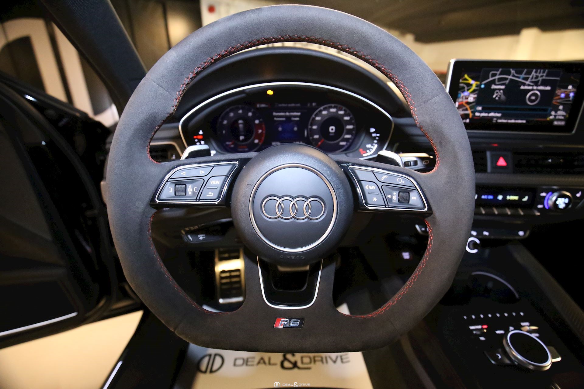 Volant, intérieur de porte et levier de vitesse en alcantara