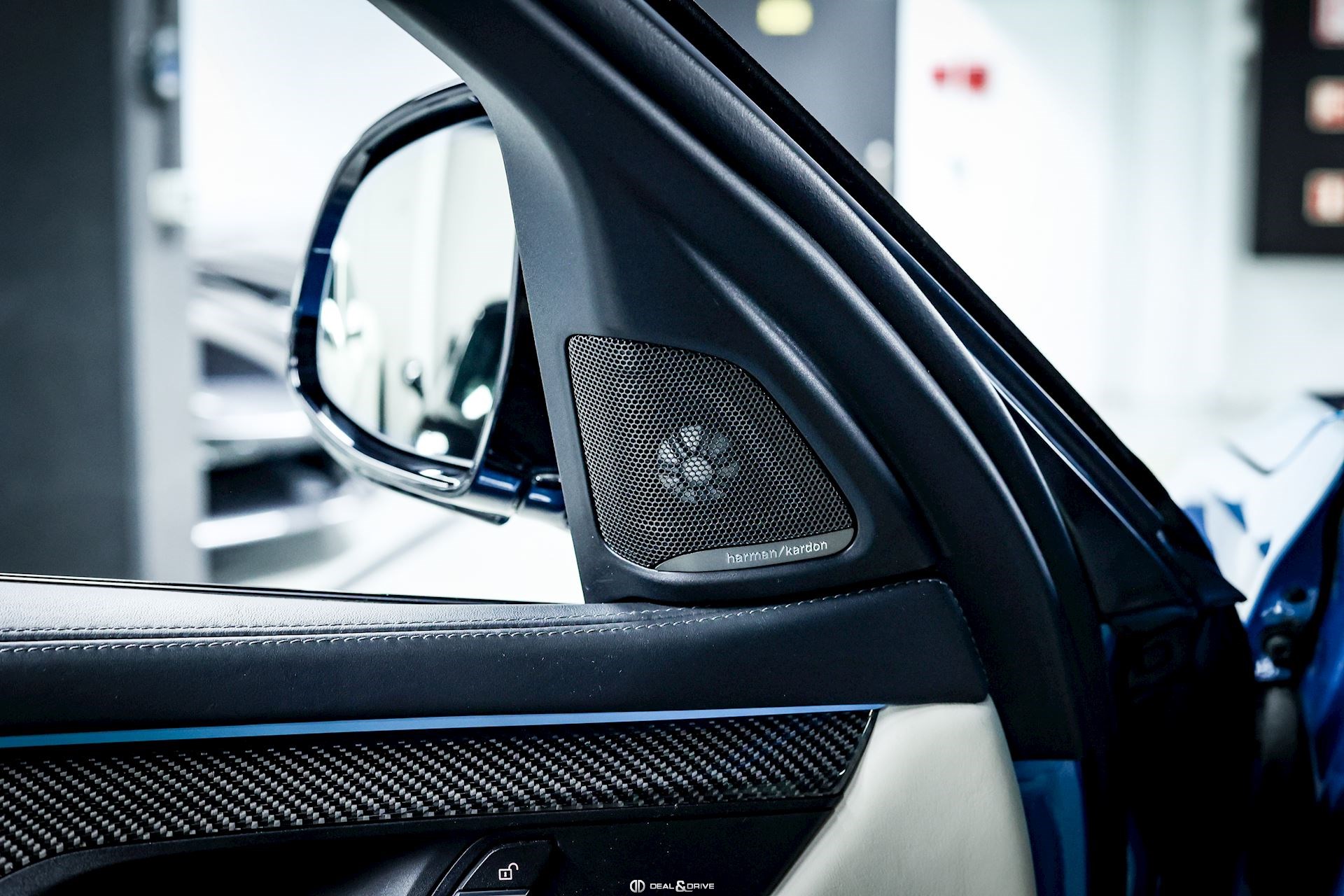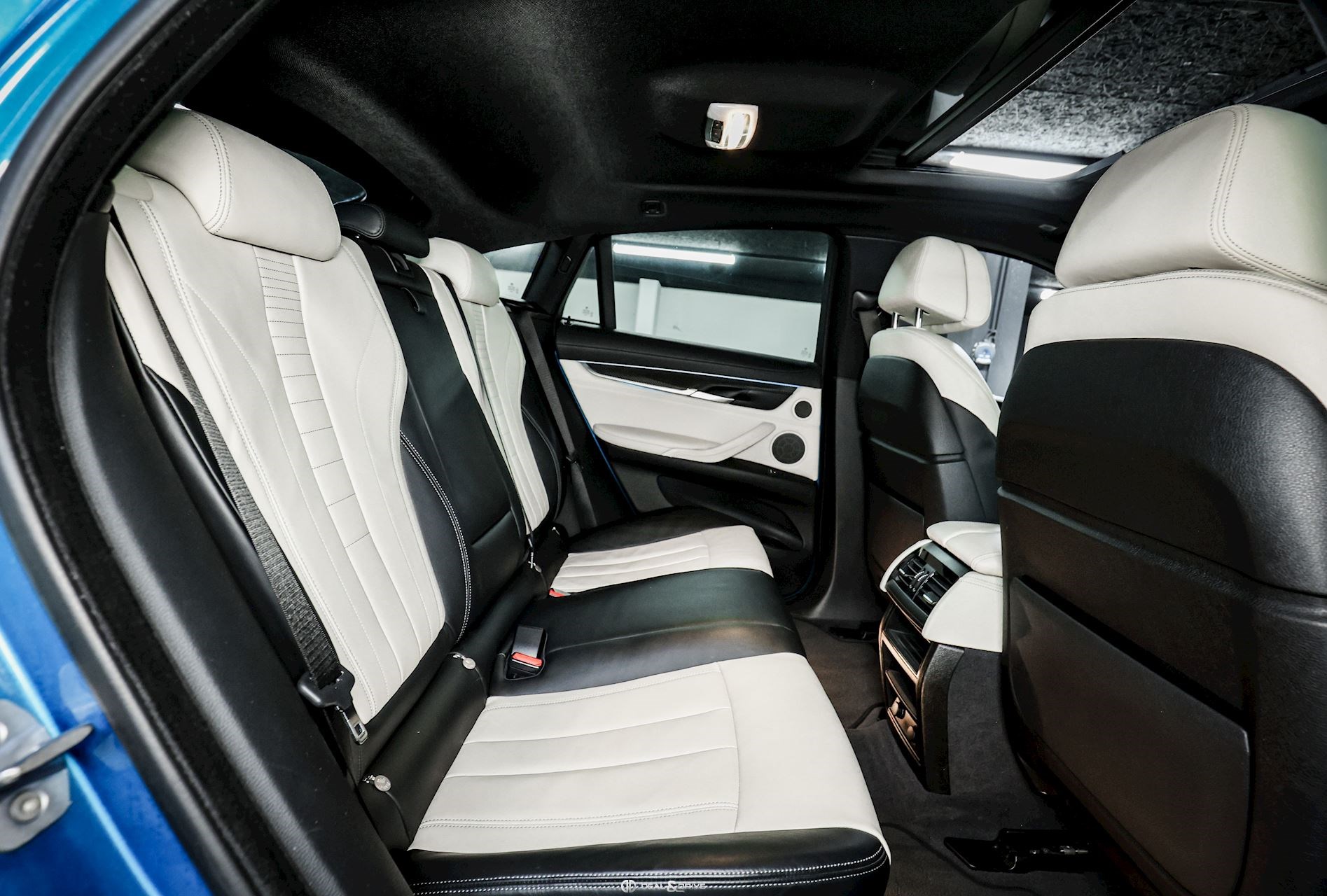 Couleur extérieure : Long Beach Blue métallisé Intérieur : Sellerie en cuir Nappa Exclusif Noir et Blanc