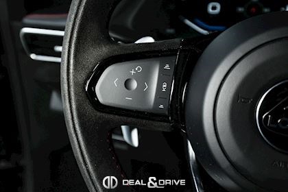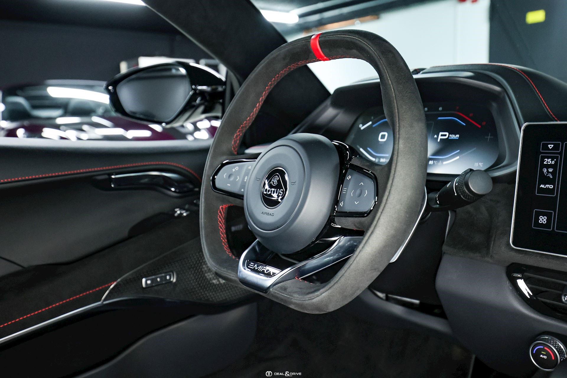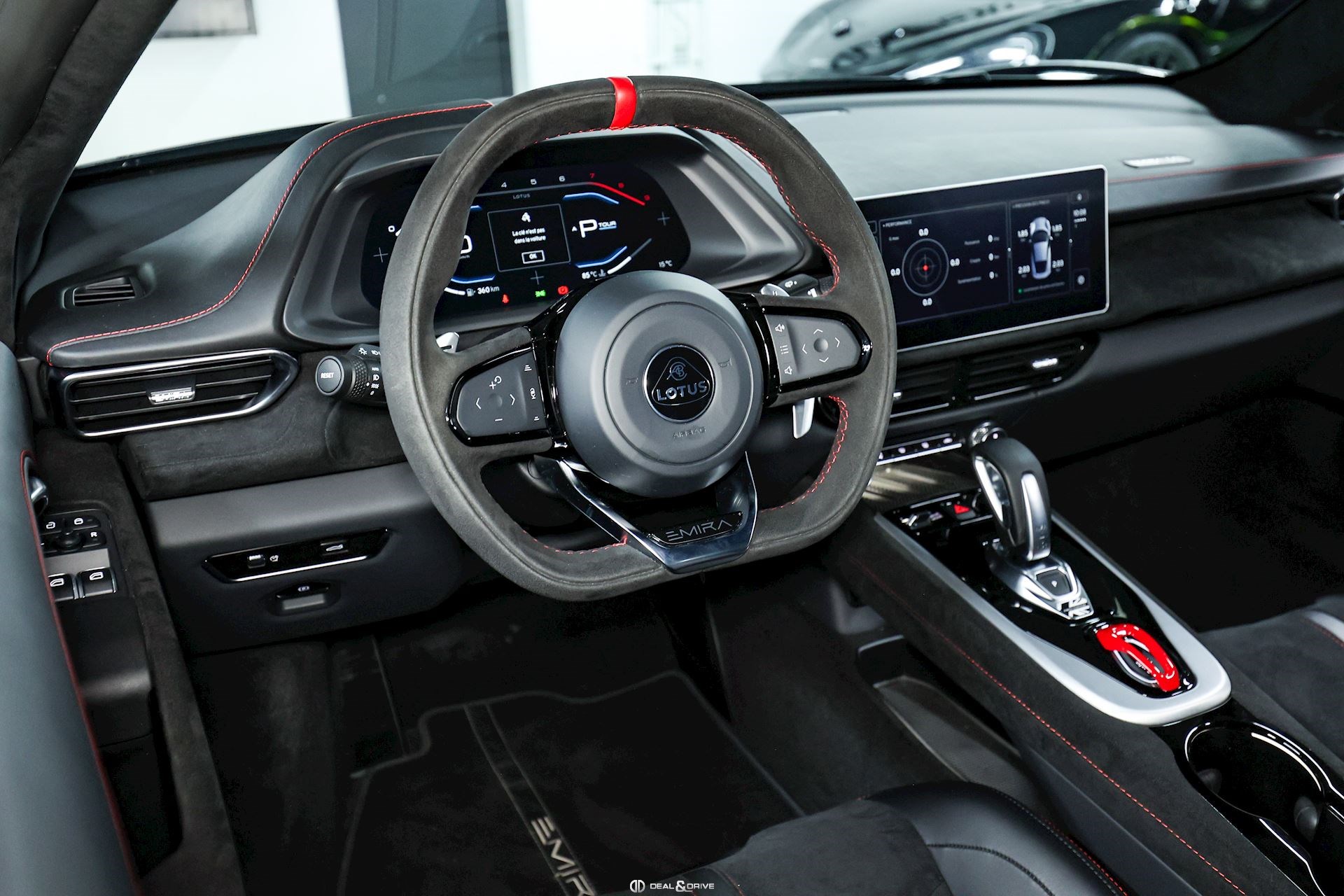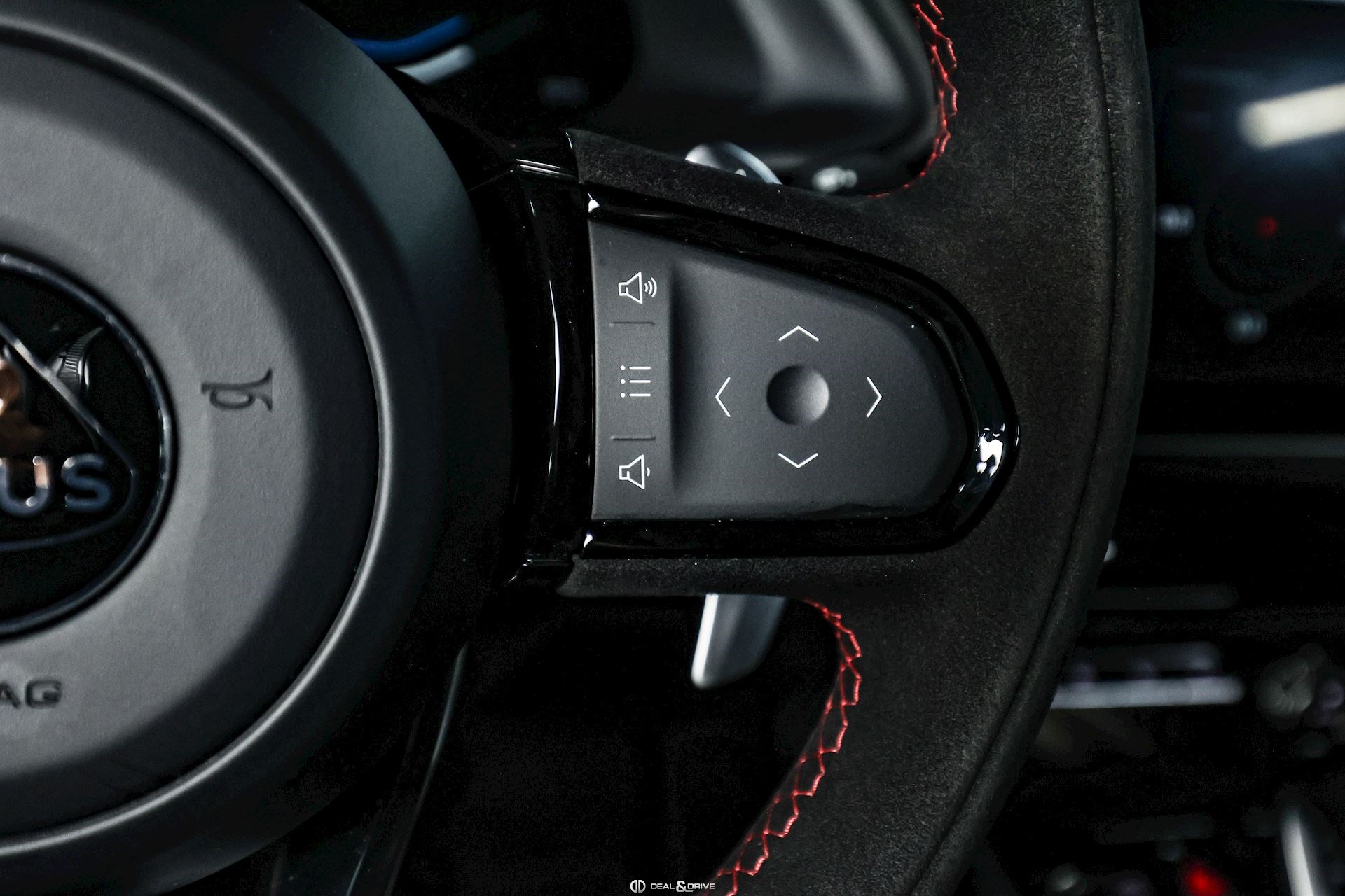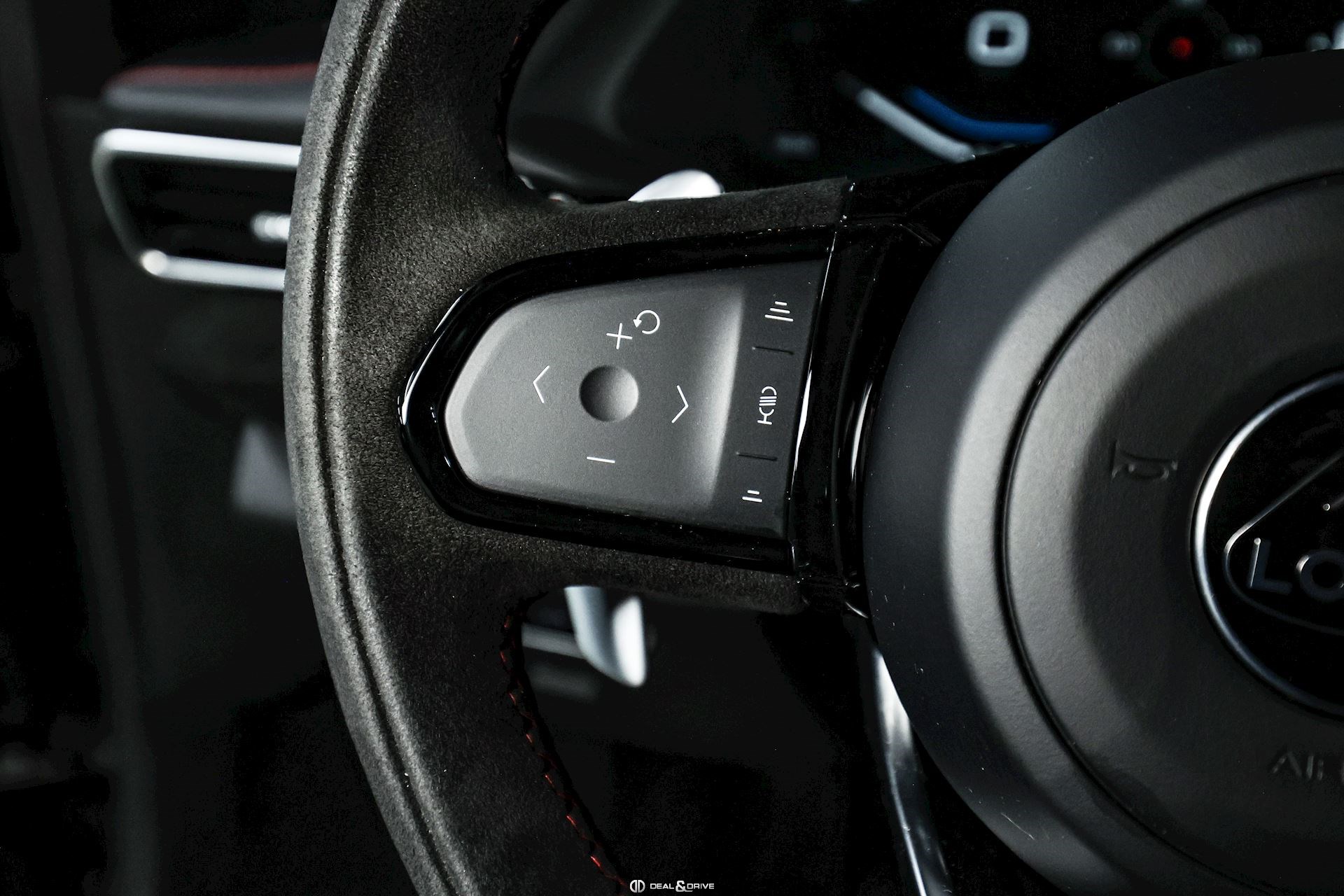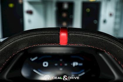 Volant en Alcantara Noir avec repère à 12 heures en Rouge et surpiqûres en Rouge
