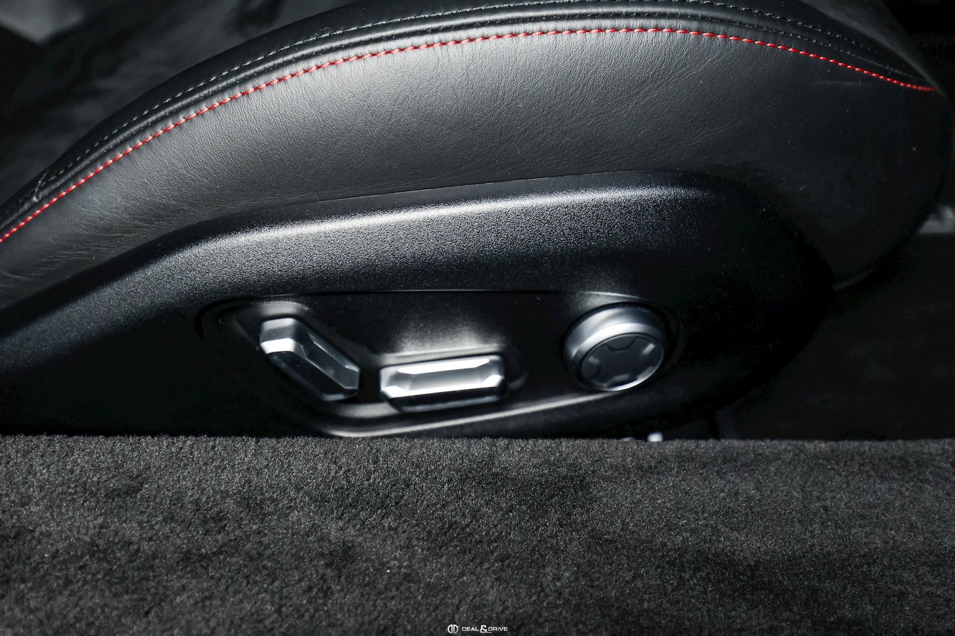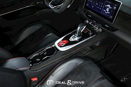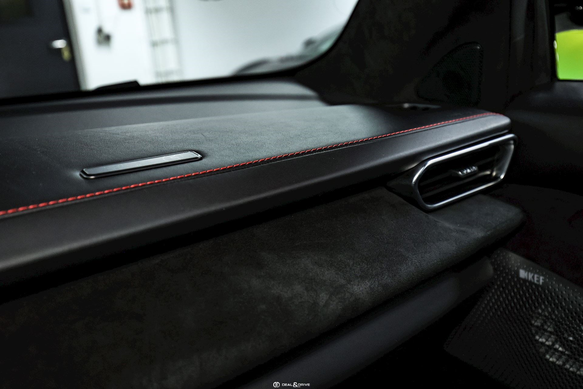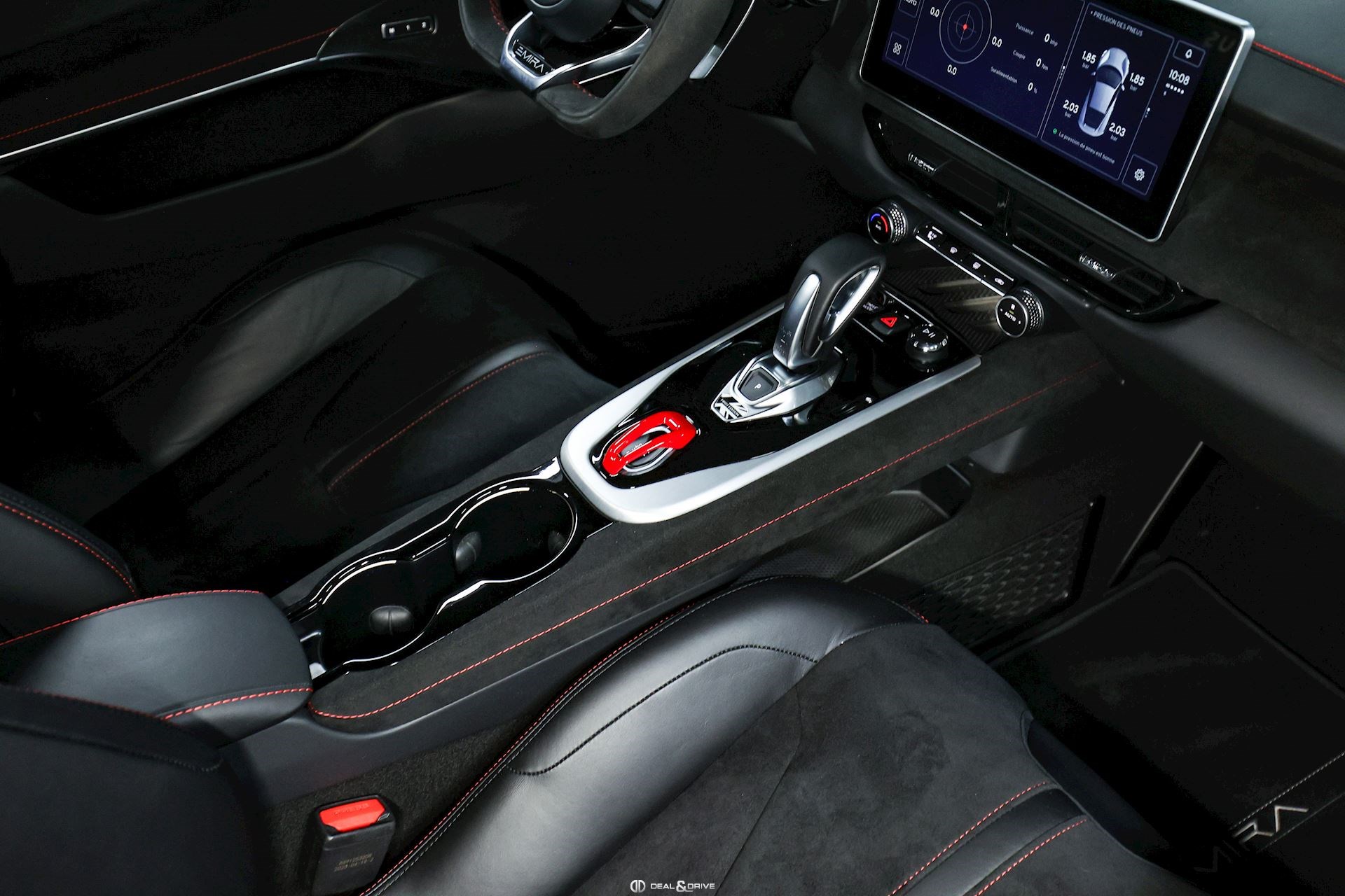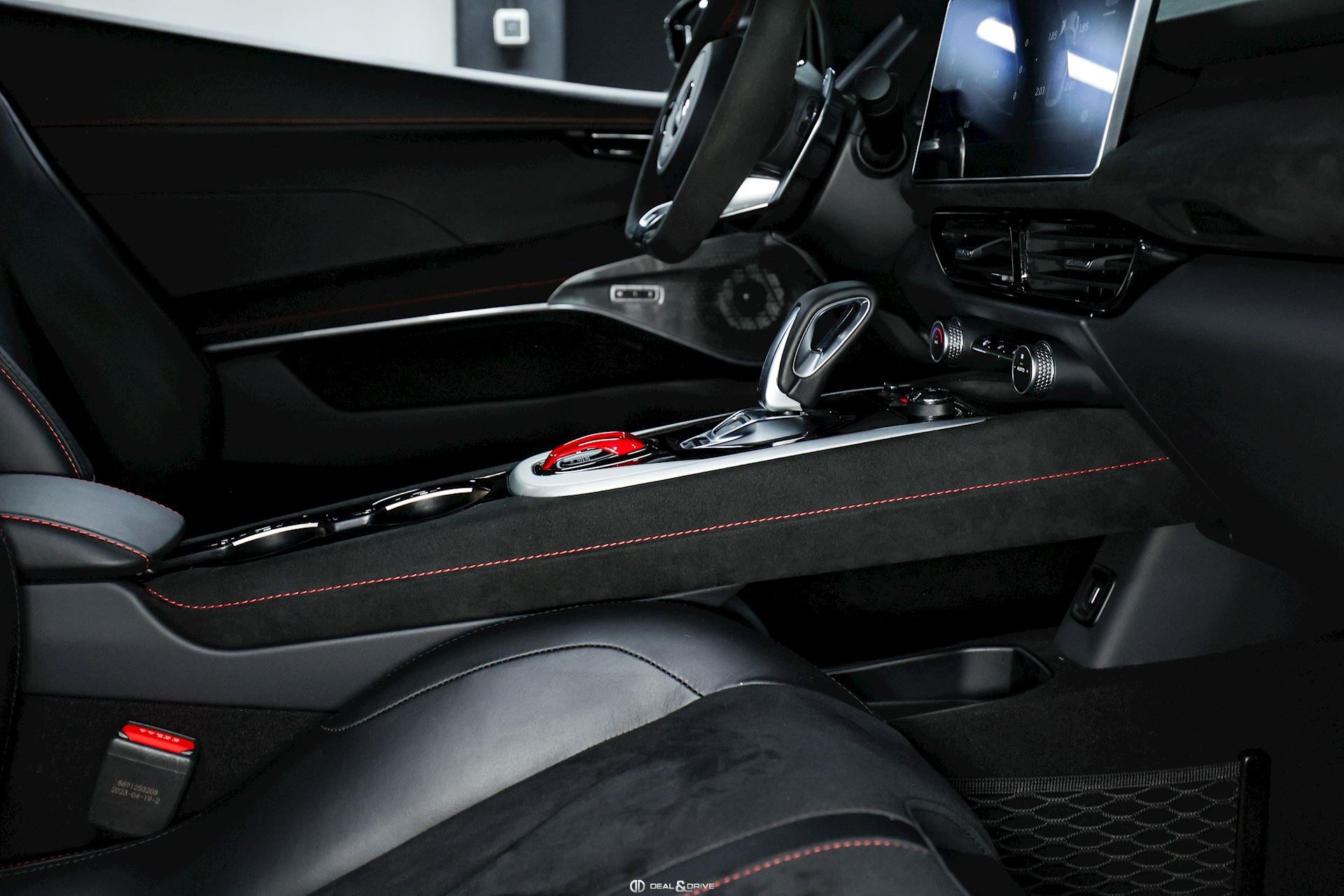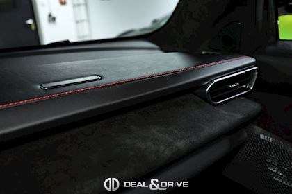 Intérieur : Sellerie en cuir et Alcantara Noir avec surpiqûres en Rouge