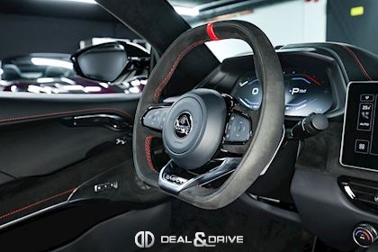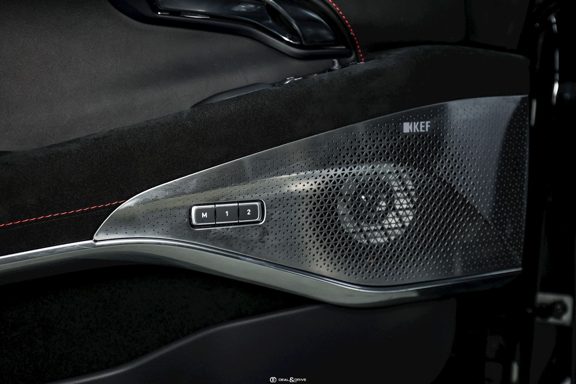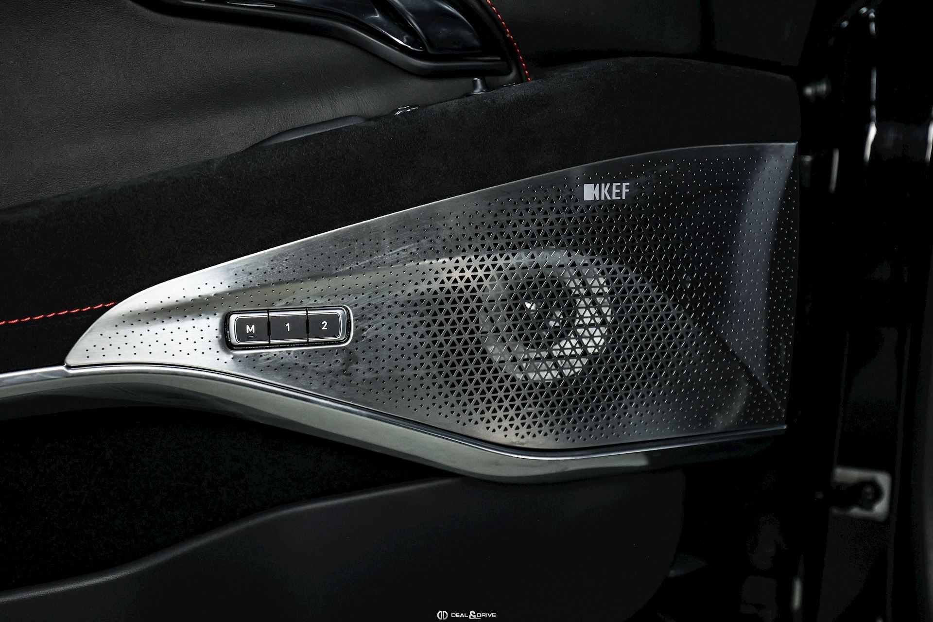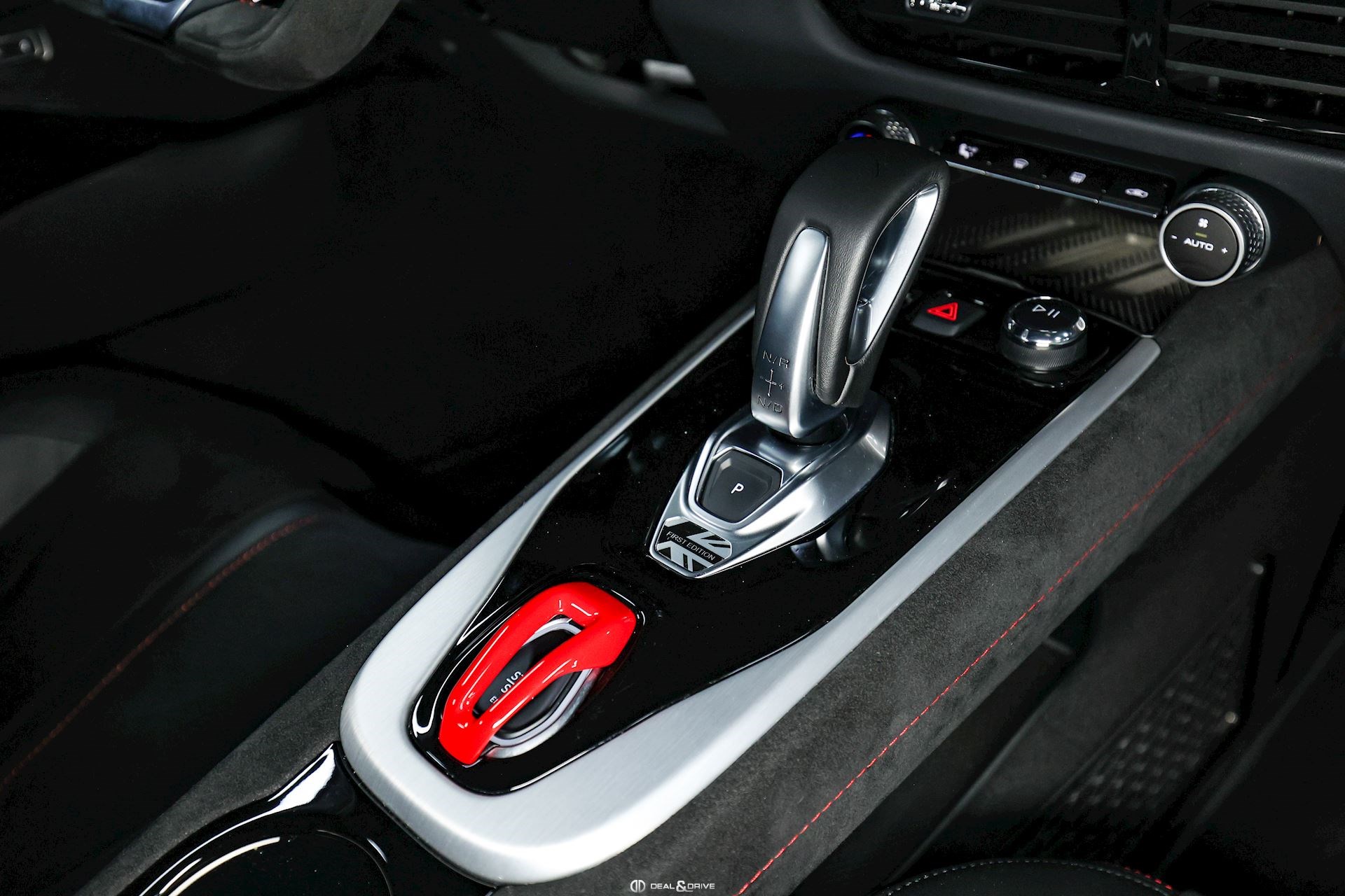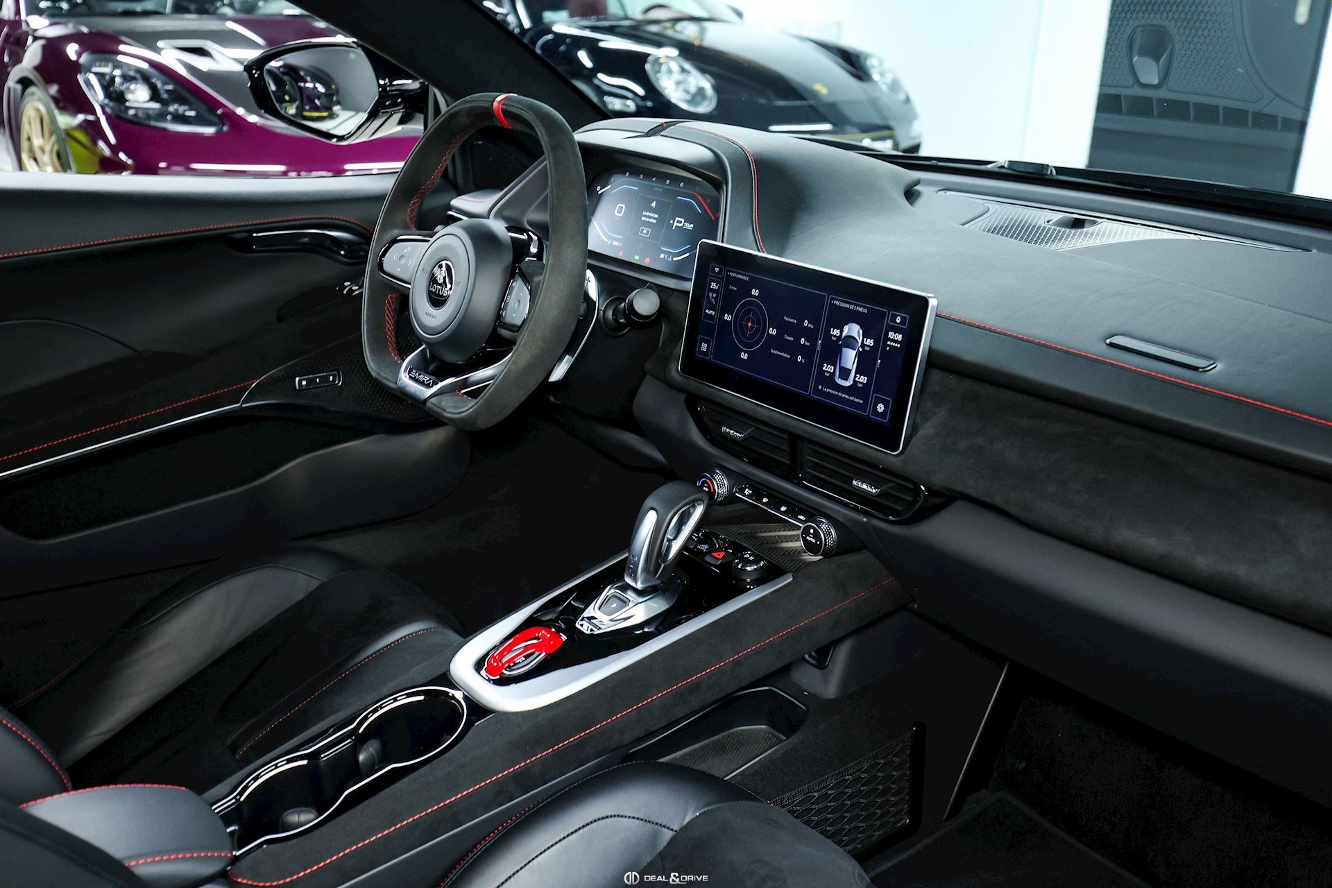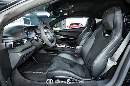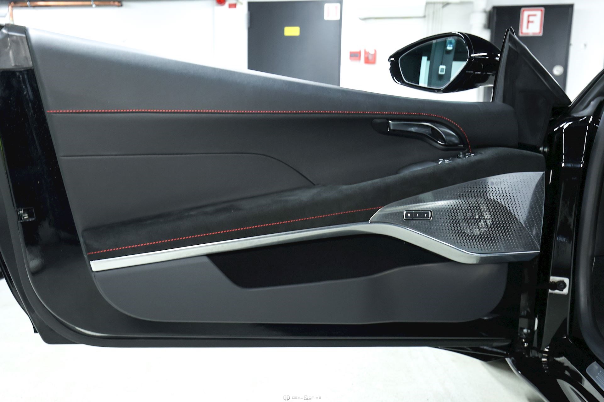 Intérieur : Sellerie en cuir et Alcantara Noir avec surpiqûres en Rouge