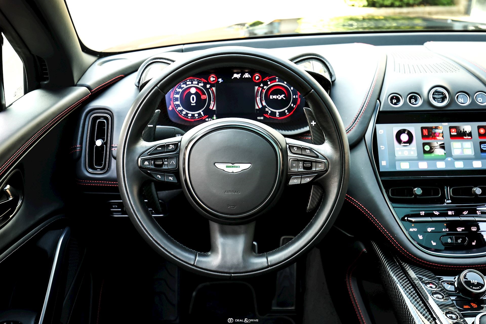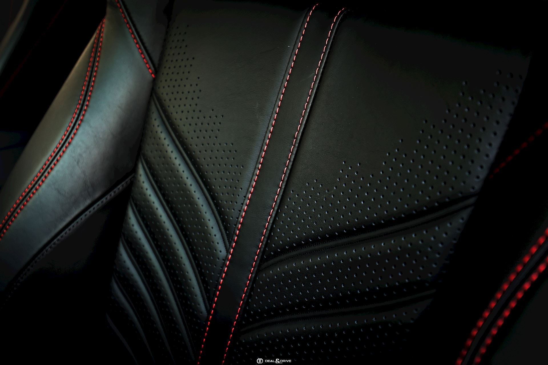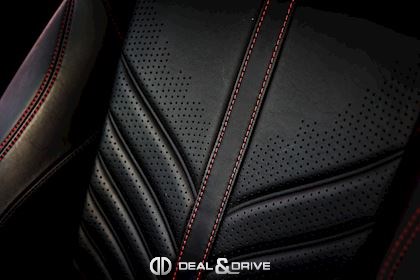 Intérieur : Sellerie en cuir Semi-Aniline Onyx Black avec surpiqûres en Spicy Red