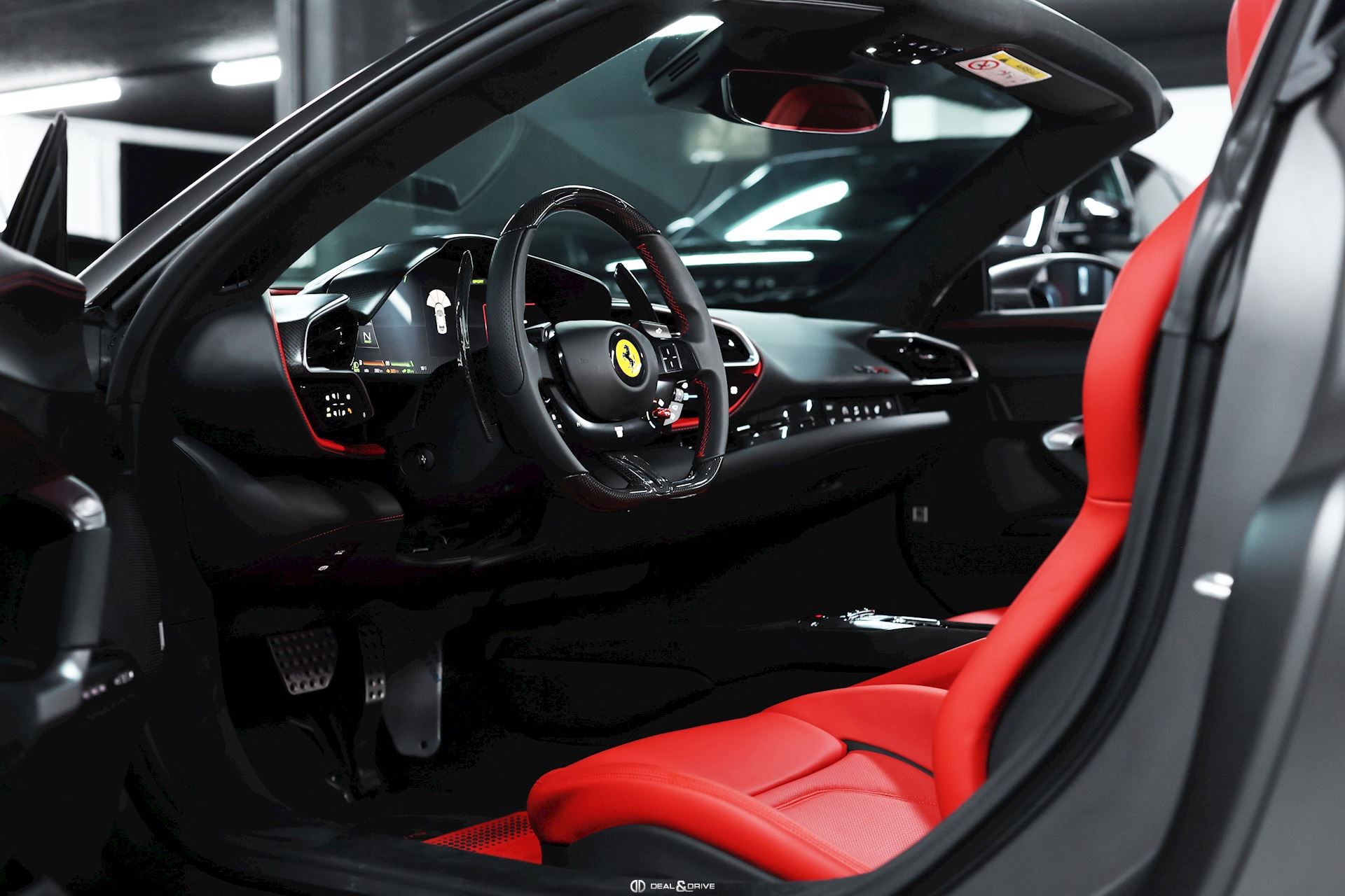 INTÉRIEUR AIRS Chauffage de nuque CIIP Encadrement du compteur en Carbone CIPZ Panneaux de port en Carbone CIZB Encadrement du compartiment à bagages avant en Carbone CLDT Détails à l’intérieur en Nero 8500 CRPC Tapis de sol en cuir et Alcantara Nero 9440 FLMA Tapis de couleur supplémentaire avec Logo DATR Inserts sur le tableau de bord en Carbone LEDS Volant en Carbone + LEDS PIP0 Sangle du tableau de bord en cuir en couleur Rosso Ferrari 130421 PIP7 Inserts de l'habitacle en cuir Nero 8500 RSFV Sièges électriques, ventilés STC2 Surpiqûres spéciales colorées O.R. en Rosso 0504 STYL Sièges avec Design spécial