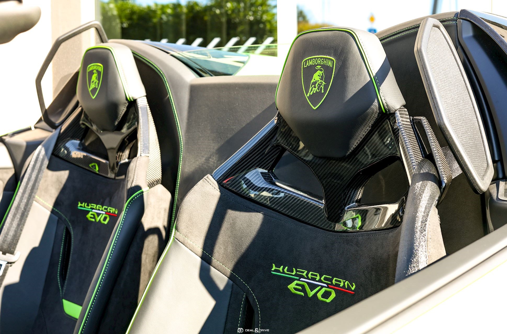 Intérieur : W0J EVO-Trim Sportivo Alcantara® Unicolor avec inserts en cuir Vert sur les sièges