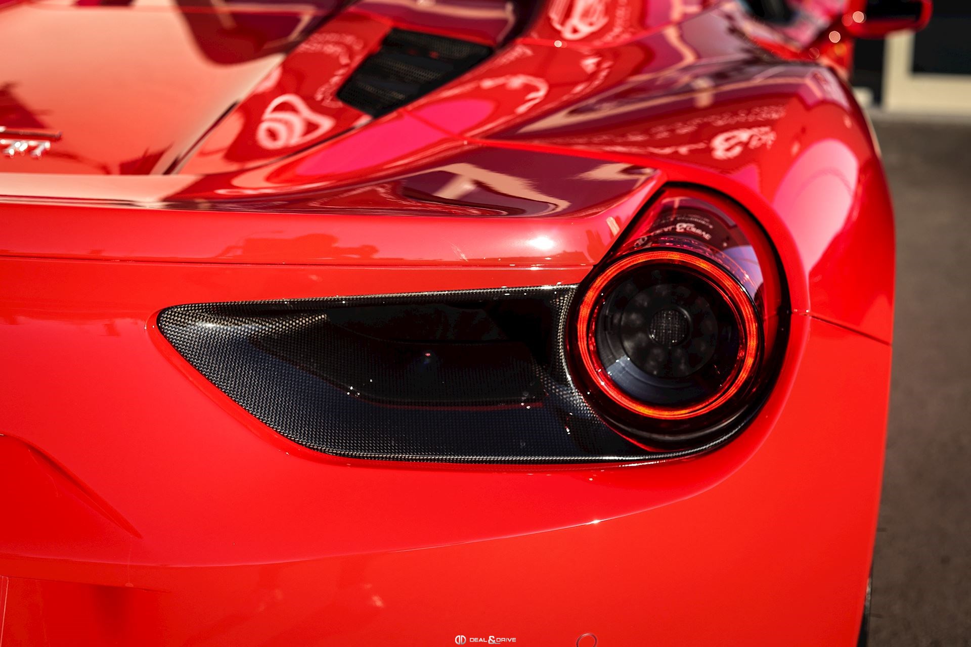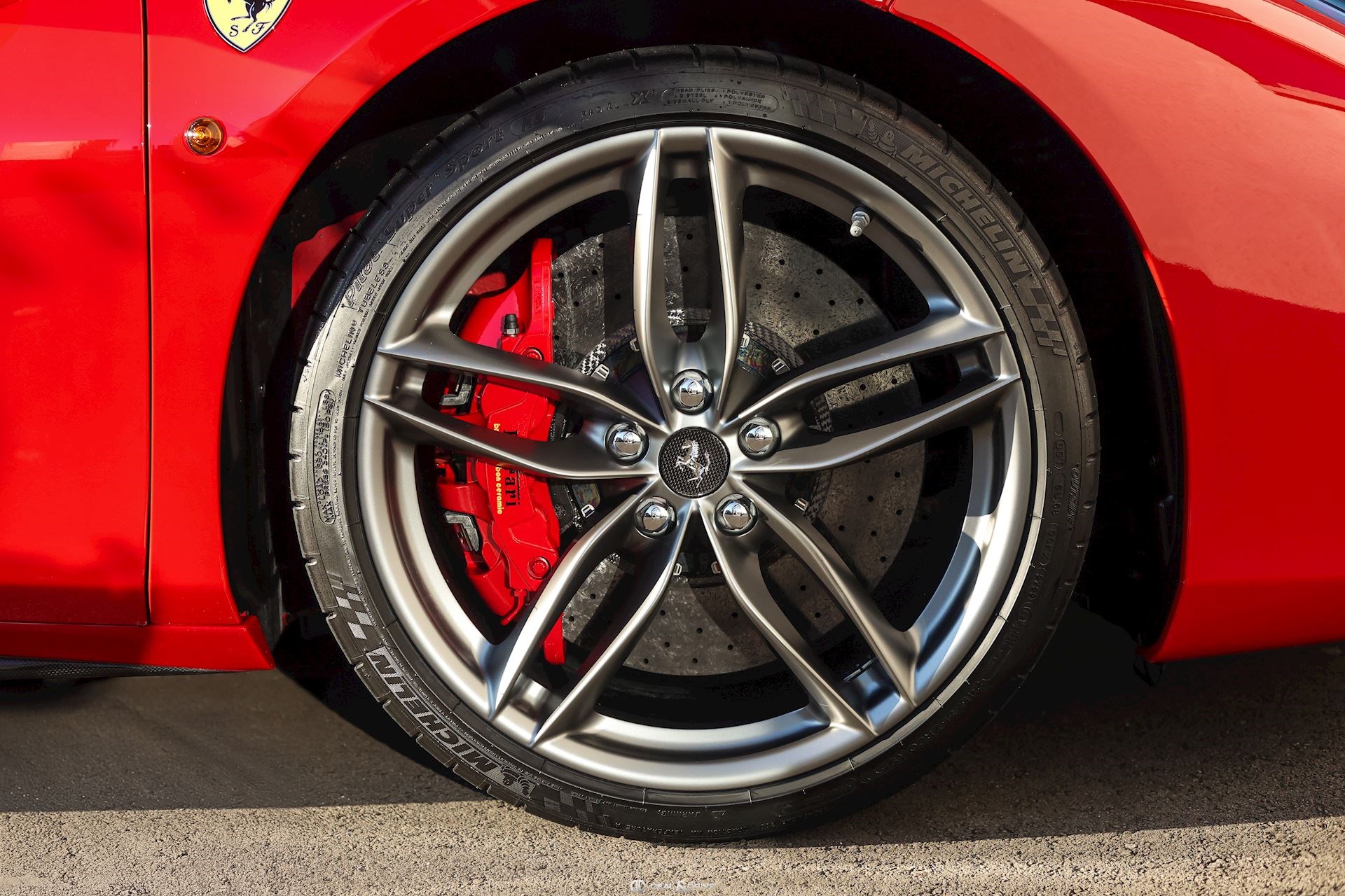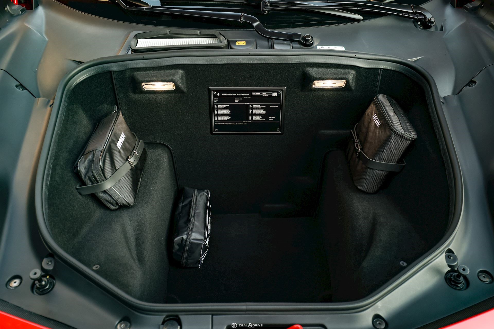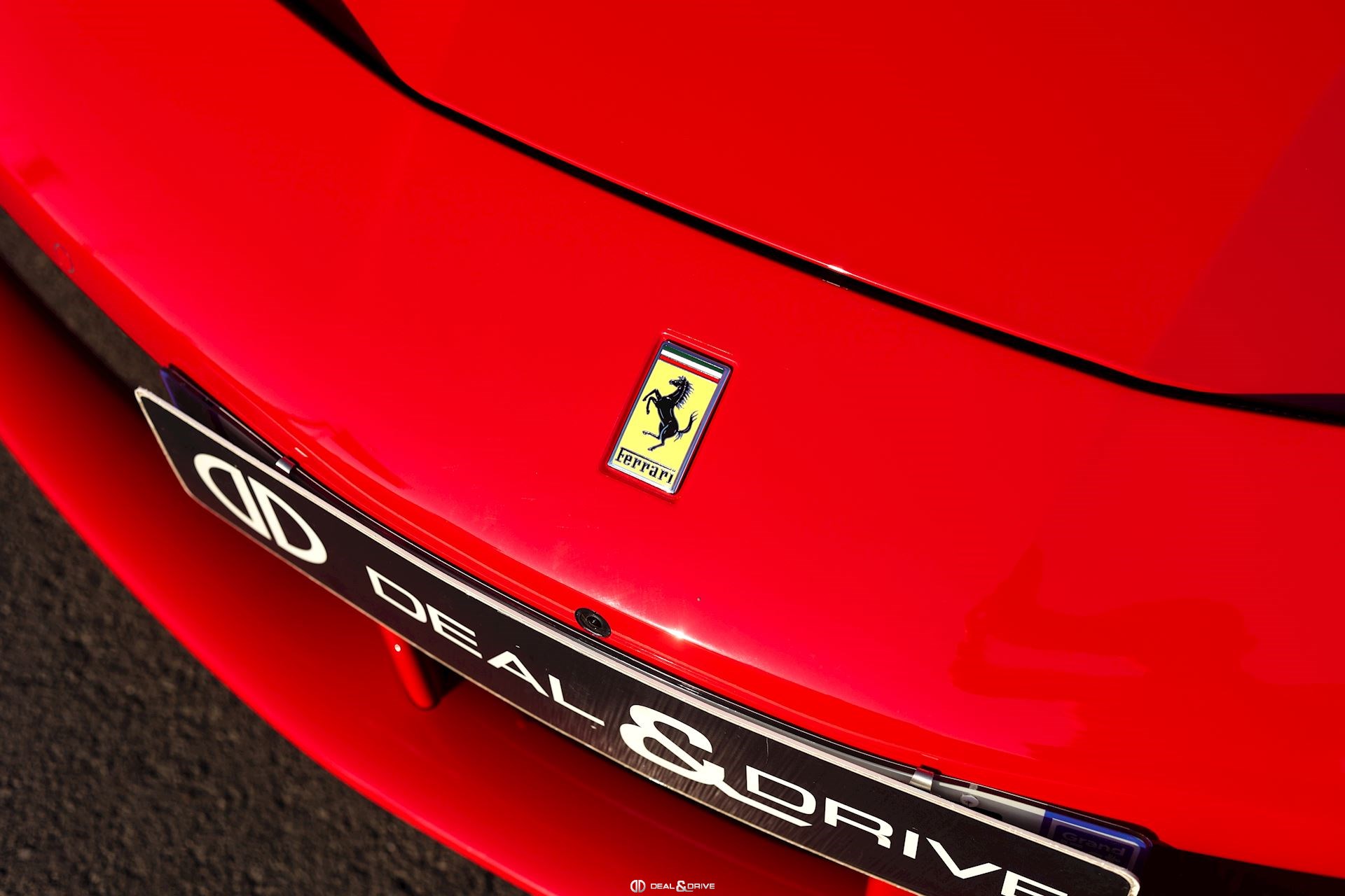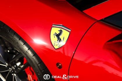 SPEC – Équipement spécial : motif drapeau italien métallique long et étroit sur le capot arrière, placé au-dessus du logo Ferrari